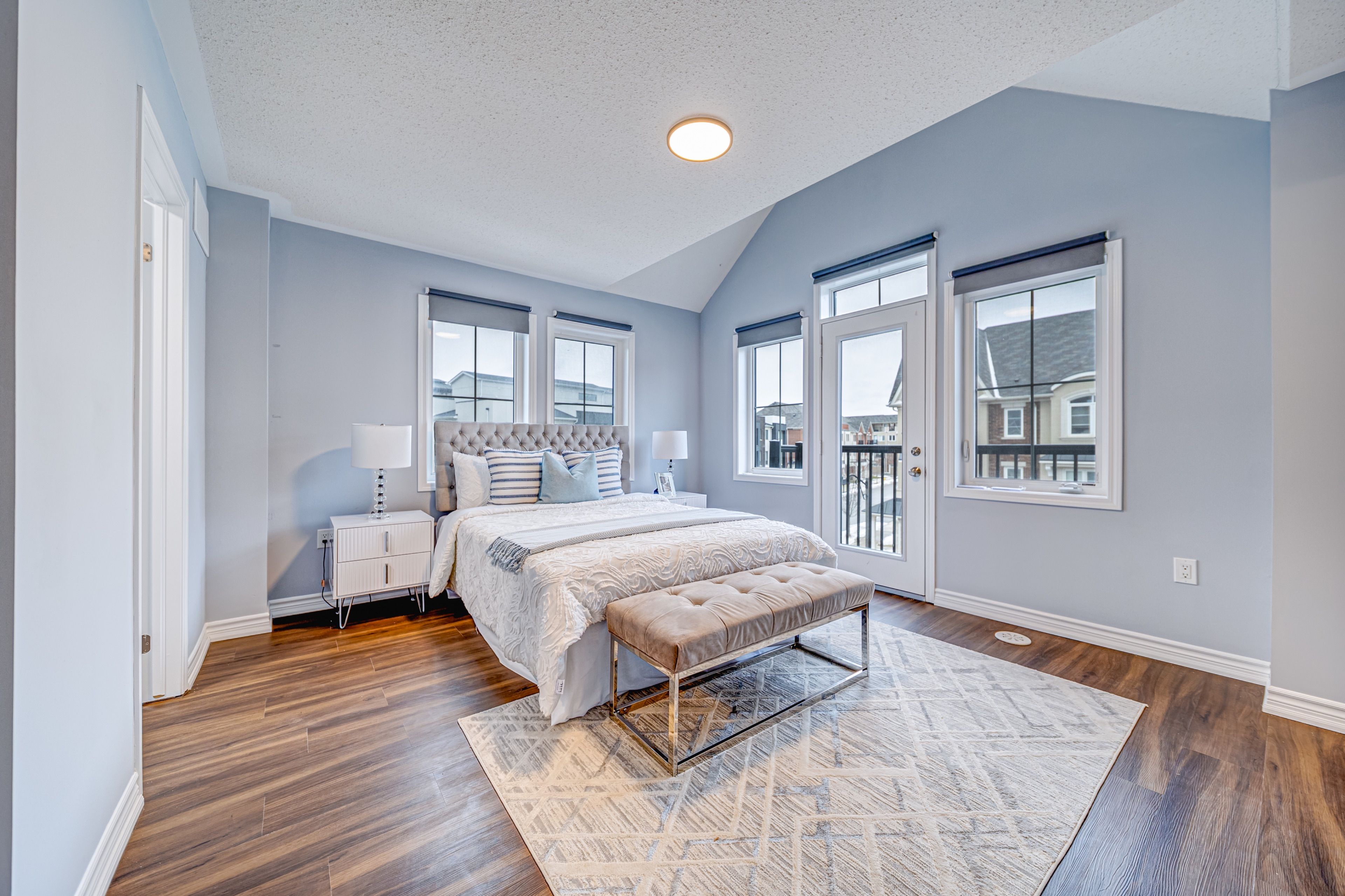 Enjoy modern living at this sun-filled end-unit townhouse on a desirable corner lot with a rare double car garage and over 2000 sq ft of thoughtfully designed space. This 4-bedroom home features a bright, functional layout enhanced by fresh paint and upgraded light fixtures. The spacious kitchen offers an upgraded countertop and backsplash, a center island, and extra cabinetry, flowing seamlessly into the dining area with a walk-out to the balcony. The upper level hosts 3 bedrooms, including a primary suite with a 3-piece ensuite and charming juliet balcony. The ground level provides a private ensuite bedroom ideal for guests or extended family. Direct access to the double garage adds everyday convenience. Outdoor living shines with a generous balcony and an impressive rooftop terrace, perfect for relaxing or entertaining. Top ranking schools. Minutes to markham stouffville hospital, cornell community centre, cornell library and cornell bus terminal. Quick access to grocery stores, restaurants, and daily conveniences.
