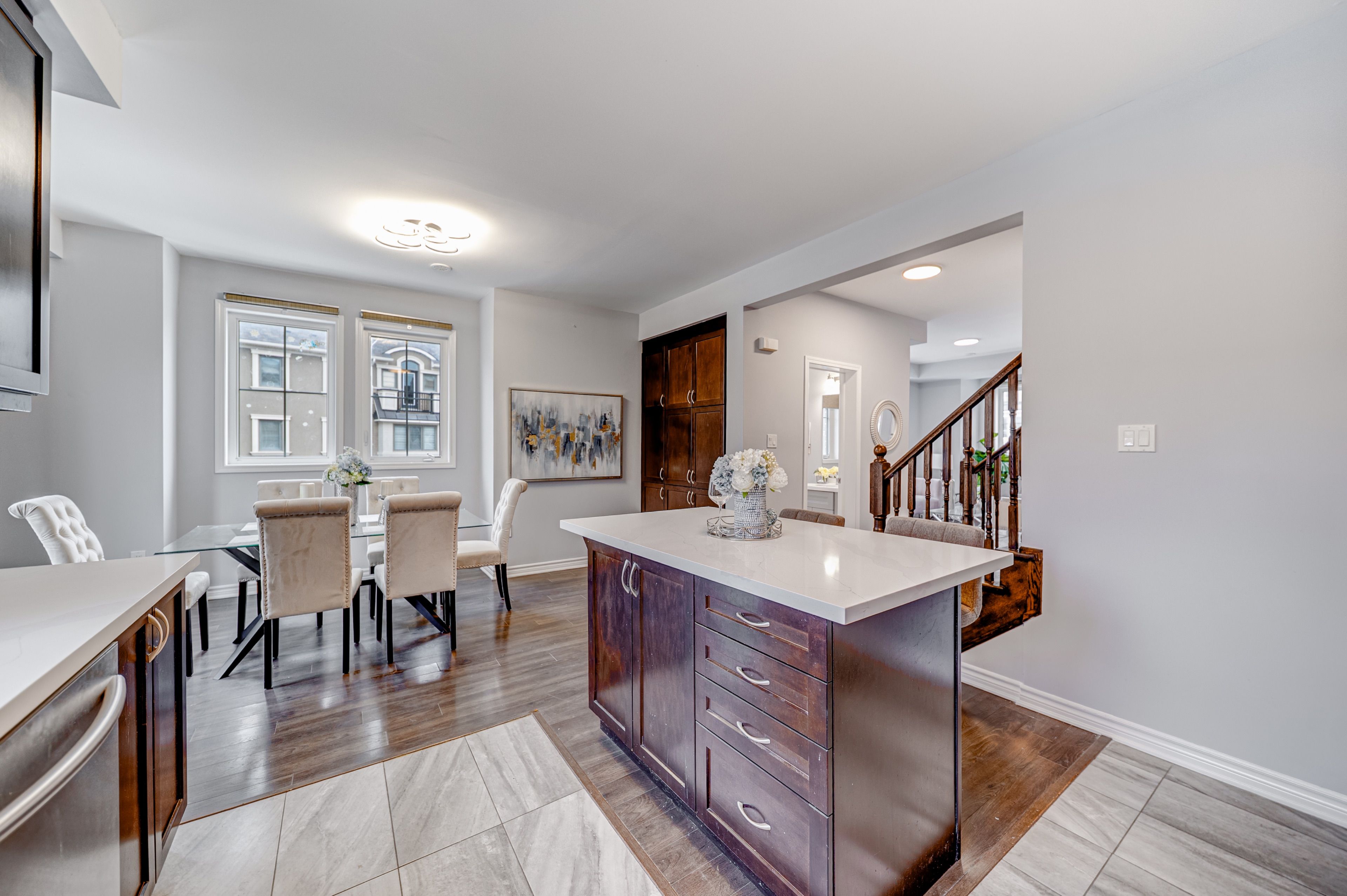 • Spacious kitchen with upgraded countertops and a center island.