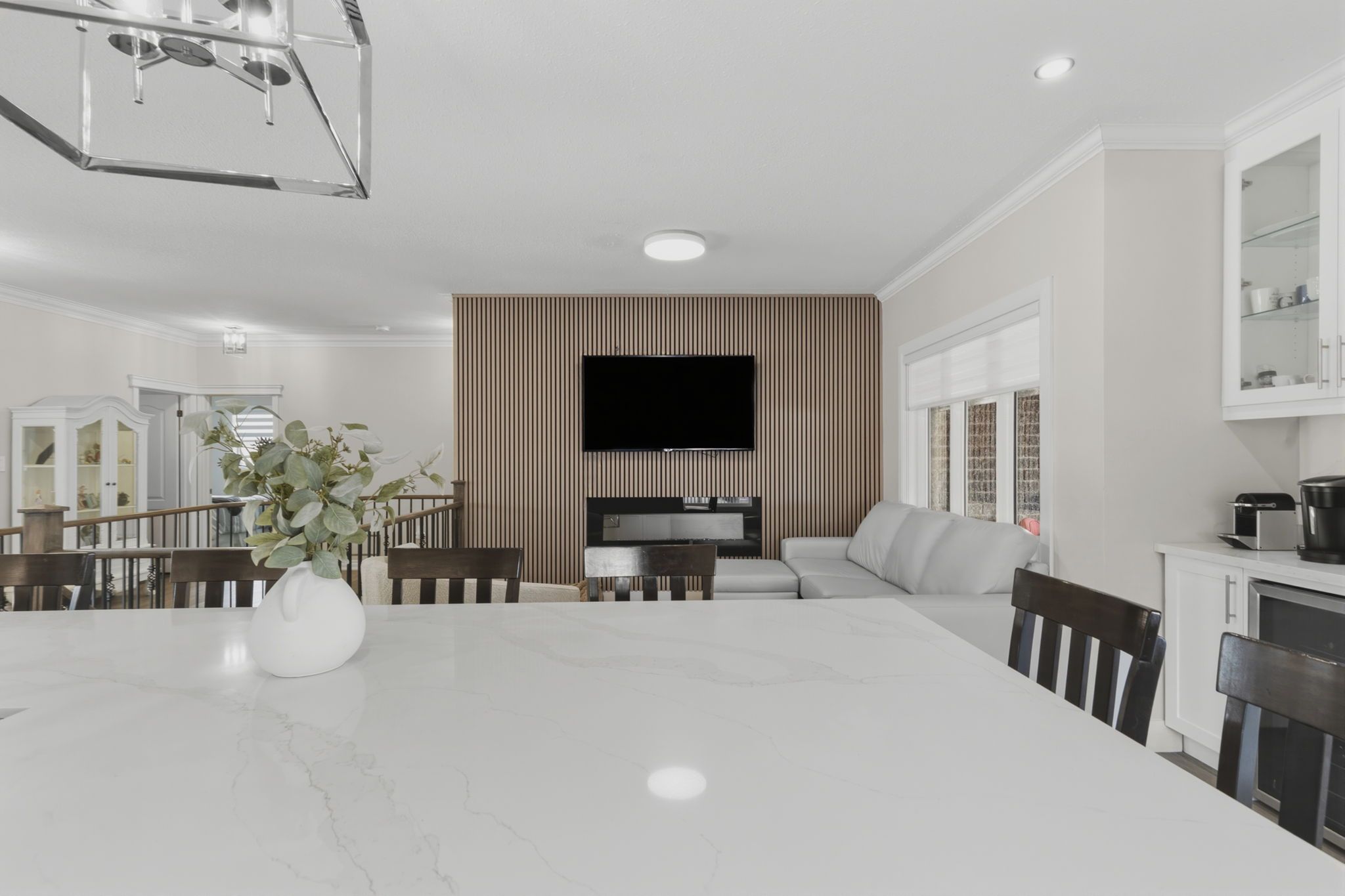 Welcome to 18 todd dr, a beautifully updated all-brick bungalow in sought-after bayshore. The expansive main level features 9' ceilings, engineered hardwood flooring, updated lighting, and a bright, open layout designed for modern living. The standout brand new custom kitchen showcases quartz countertops, premium finishes, and thoughtful design, creating a stunning focal point for both everyday living and entertaining. Additional living space has been thoughtfully created by building over the previous open area above the basement, enhancing functionality and overall square footage. Two spacious main-level bedrooms include a primary retreat complete with a custom walk-in closet and a large, spa-inspired ensuite bathroom. The fully finished walkout basement offers a generous recreation room with a striking floor-to-ceiling stone fireplace, an oversized bedroom, and a beautifully finished 4-piece bathroom, ideal for guests or extended family. Set on a pie-shaped lot with a large elevated deck and a heated, insulated two-car garage, all within close proximity to walking trails, the beach, parks, schools, and amenities.