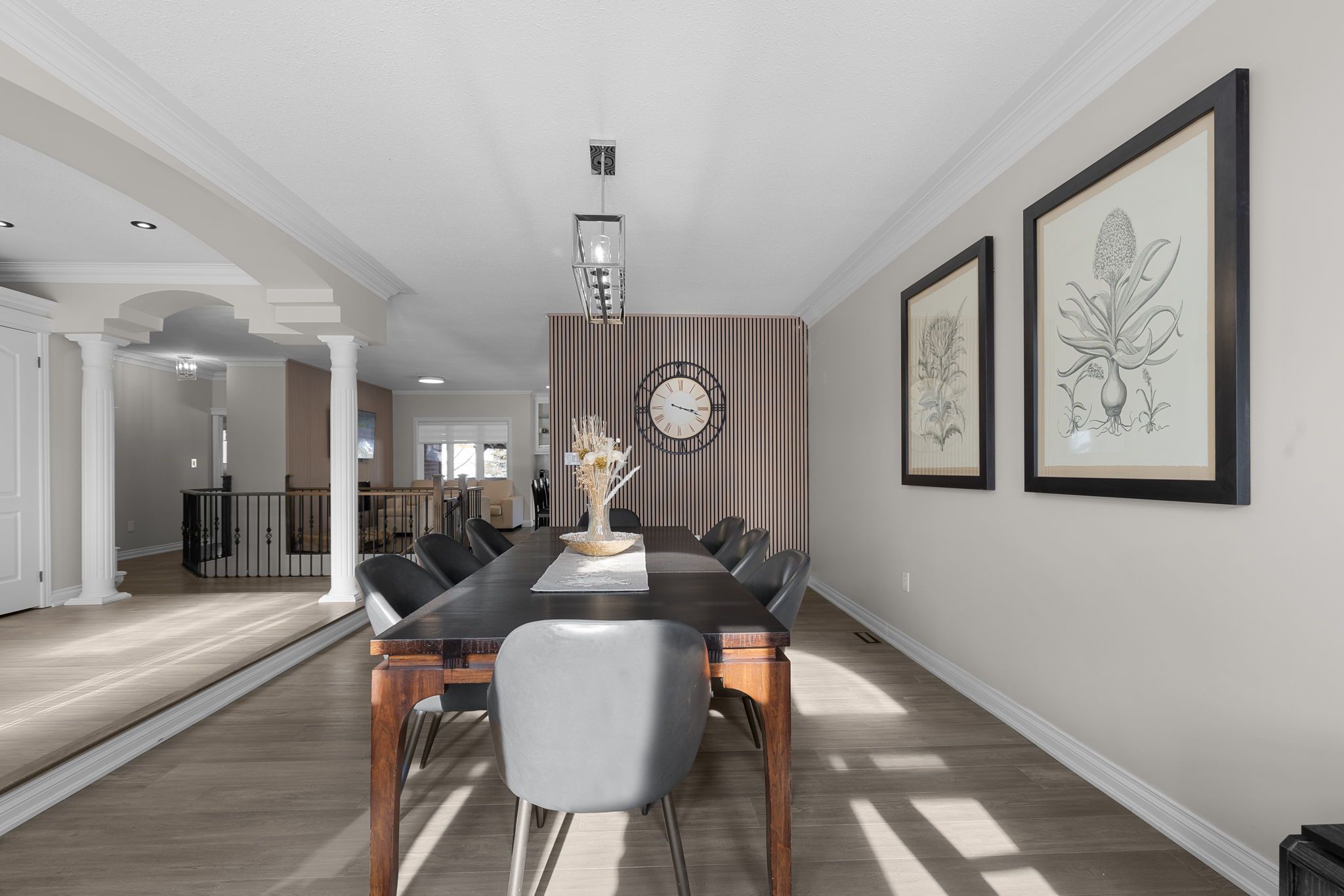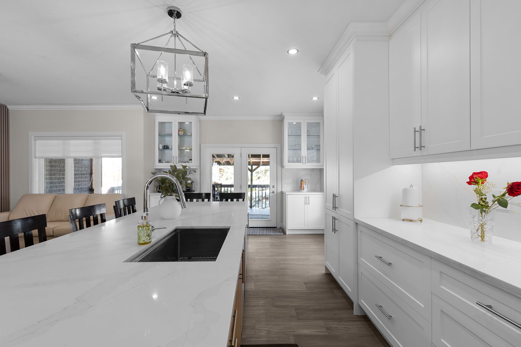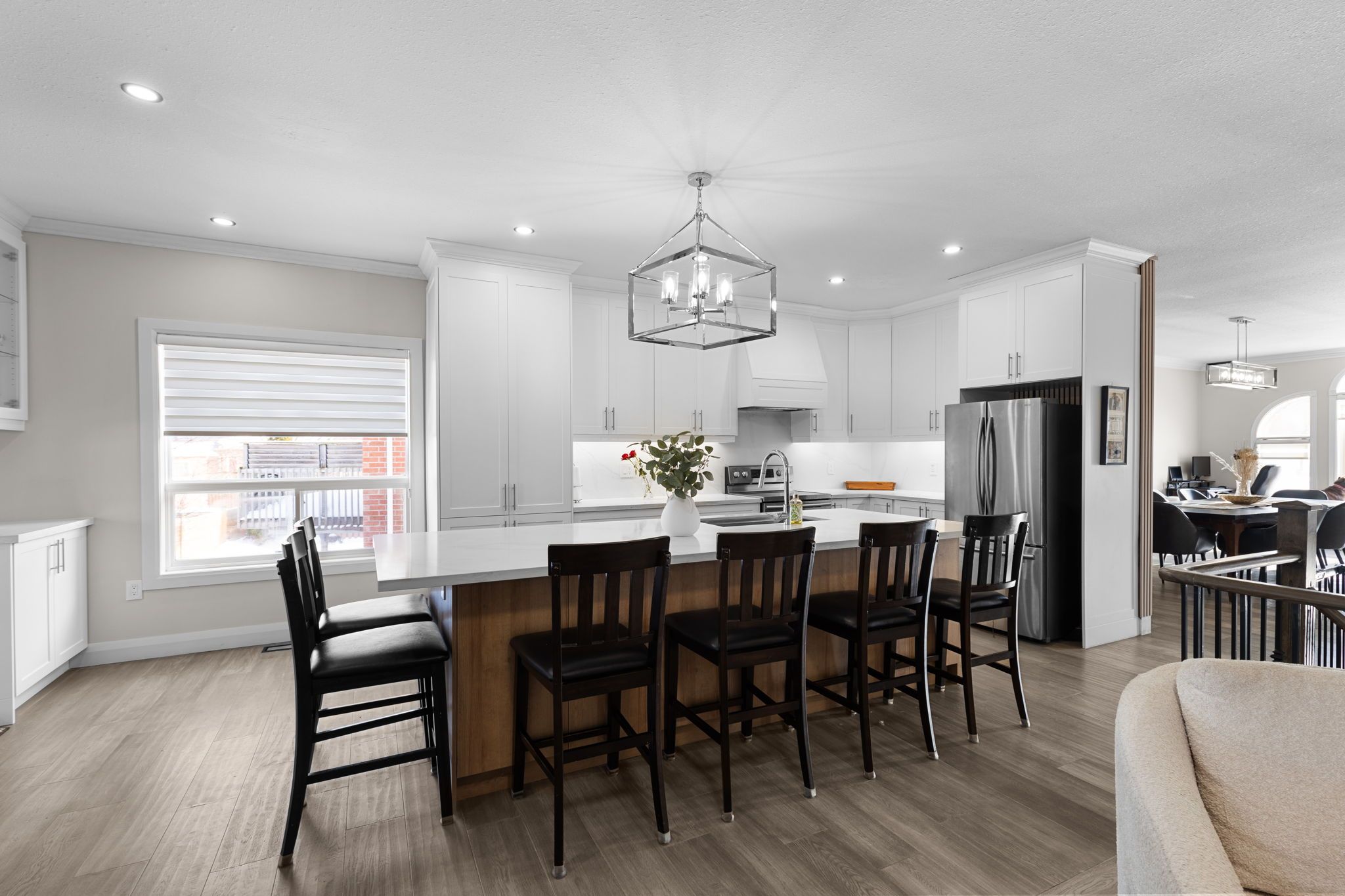Welcome to 18 todd dr, a beautifully updated all-brick bungalow in sought-after bayshore. The expansive main level features 9' ceilings, engineered hardwood flooring, updated lighting, and a bright, open layout designed for modern living. The standout brand new custom kitchen showcases quartz countertops, premium finishes, and thoughtful design, creating a stunning focal point for both everyday living and entertaining. Additional living space has been thoughtfully created by building over the previous open area above the basement, enhancing functionality and overall square footage. Two spacious main-level bedrooms include a primary retreat complete with a custom walk-in closet and a large, spa-inspired ensuite bathroom. The fully finished walkout basement offers a generous recreation room with a striking floor-to-ceiling stone fireplace, an oversized bedroom, and a beautifully finished 4-piece bathroom, ideal for guests or extended family. Set on a pie-shaped lot with a large elevated deck and a heated, insulated two-car garage, all within close proximity to walking trails, the beach, parks, schools, and amenities.