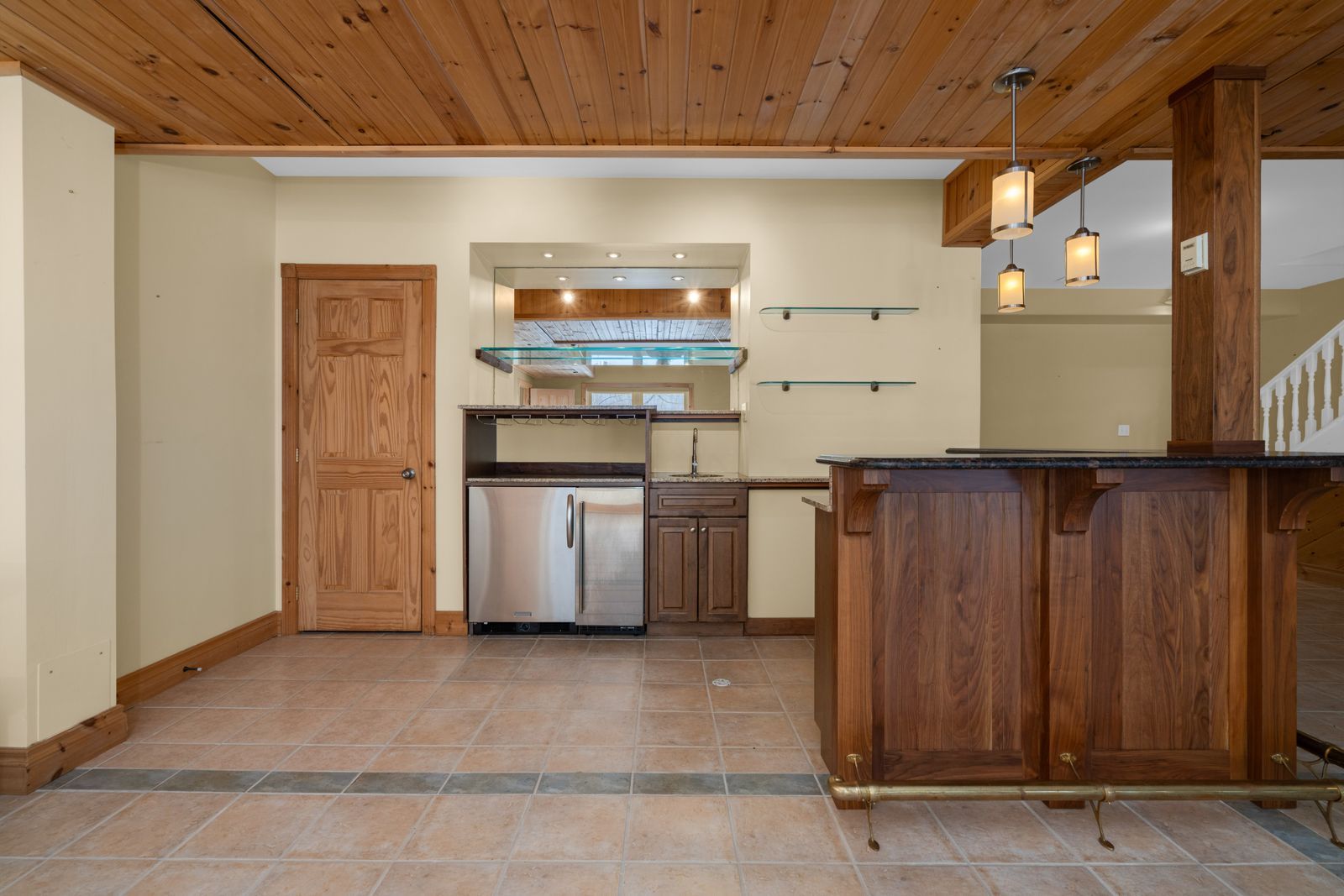 • Beautiful kitchen with quartz counters and built-in stainless steel appliances.