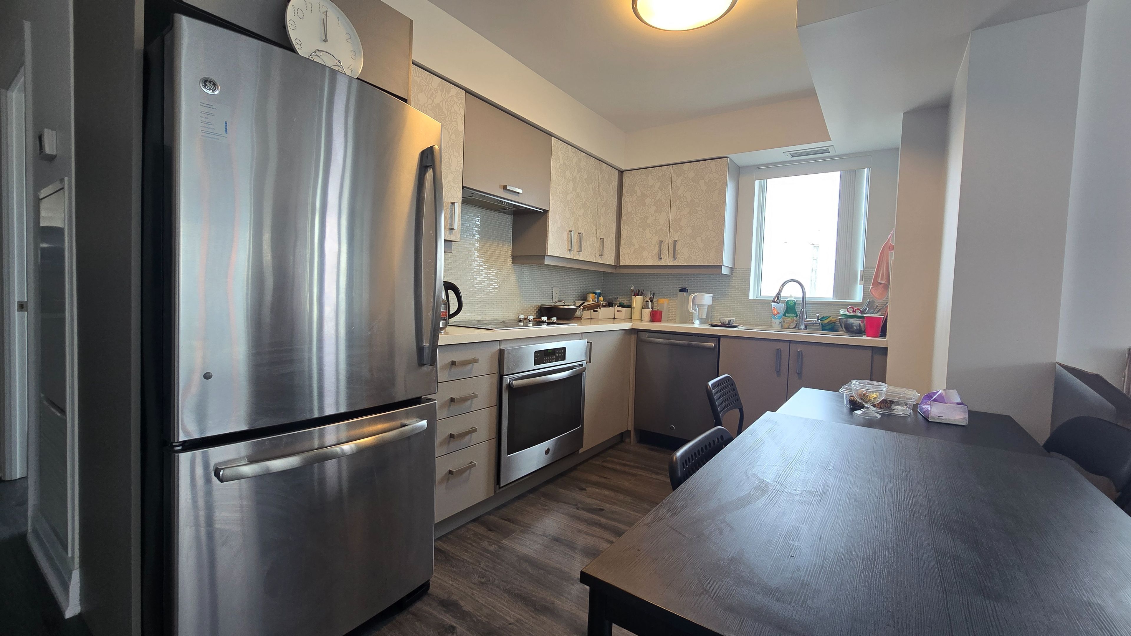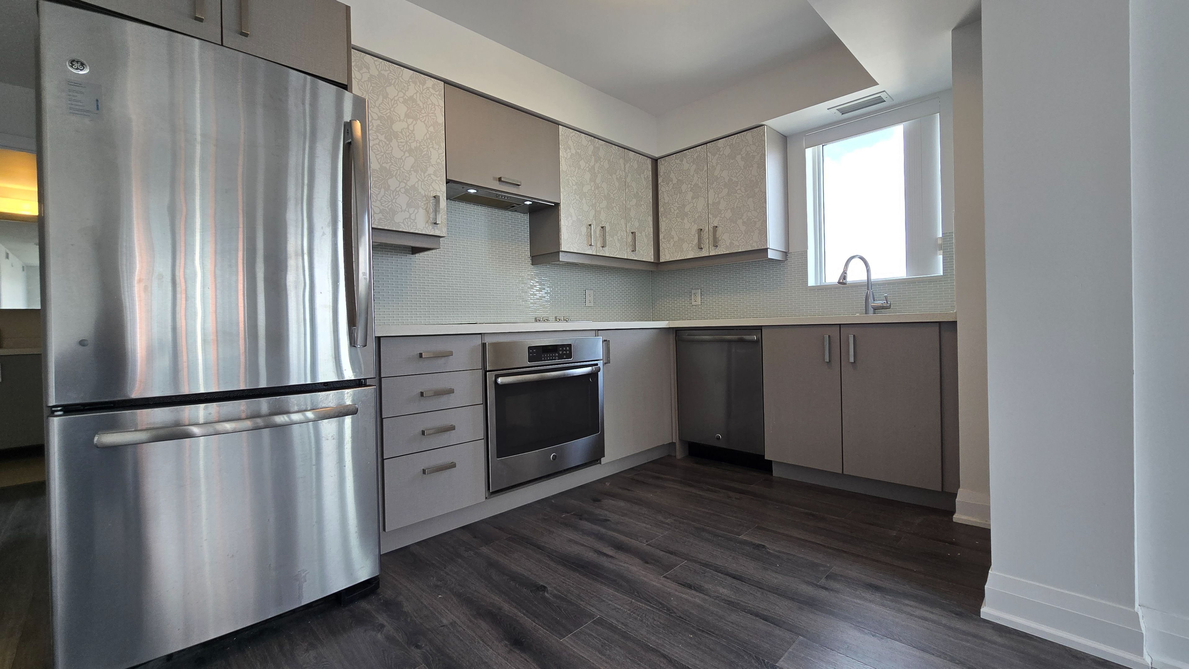 • Modern kitchen features upgraded counters and stainless steel appliances.