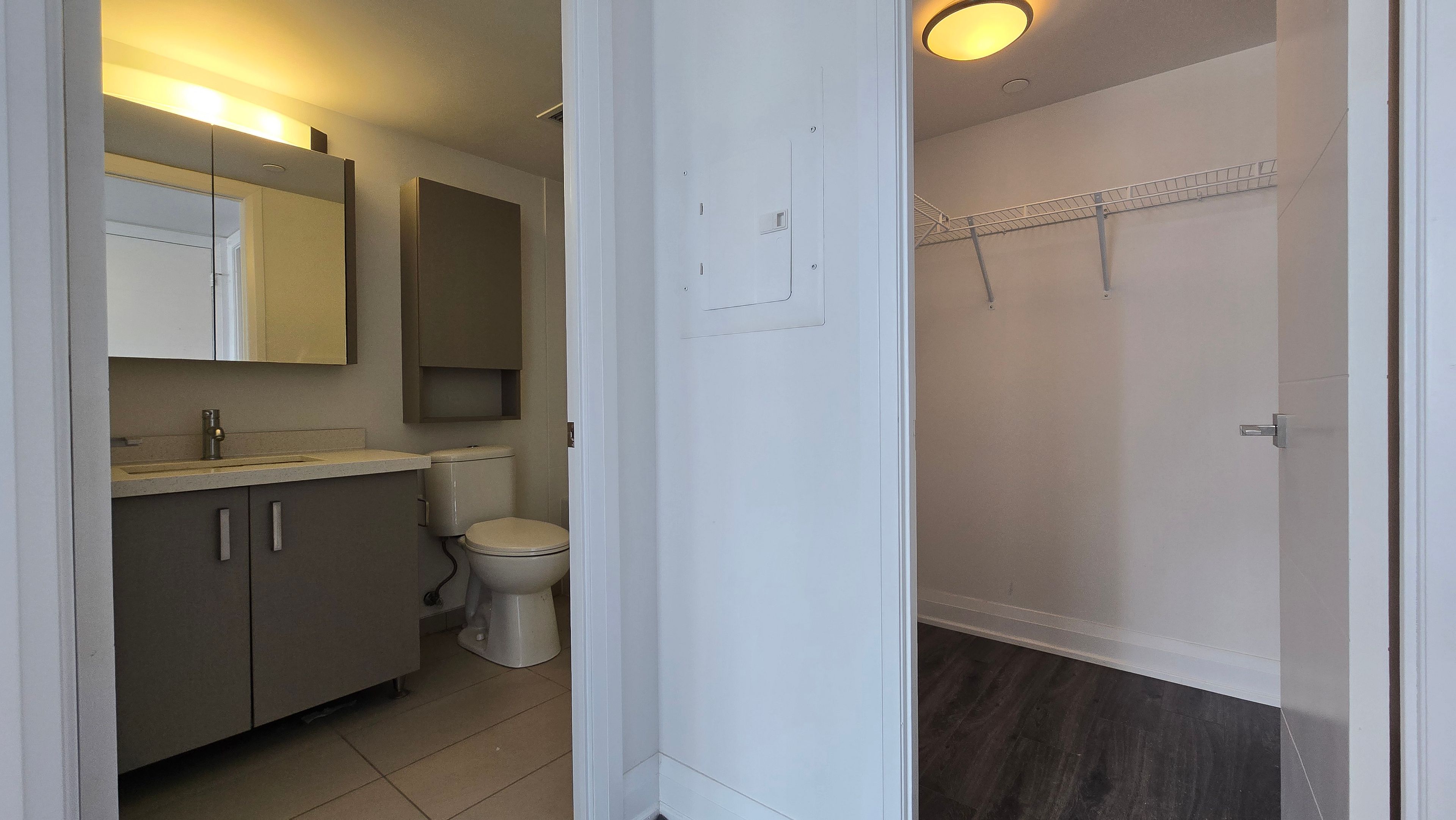 Bright and spacious 2-bedroom corner unit. Unobstructed ne view. 854 sq. Ft. Plus 50 sq. Ft. Balcony. Modern kitchen with upgraded counter and black splash, stainless steel appliances. Master bedroom with upgraded ensuite bathroom & walk-in closet. Includes 1 parking and 1locker. Superb amenities with with 24 hours concierge, gym, pool, guest suites, party room. Close to highway, public transit, shops, banks, school, theatre, no smoking & no pets.