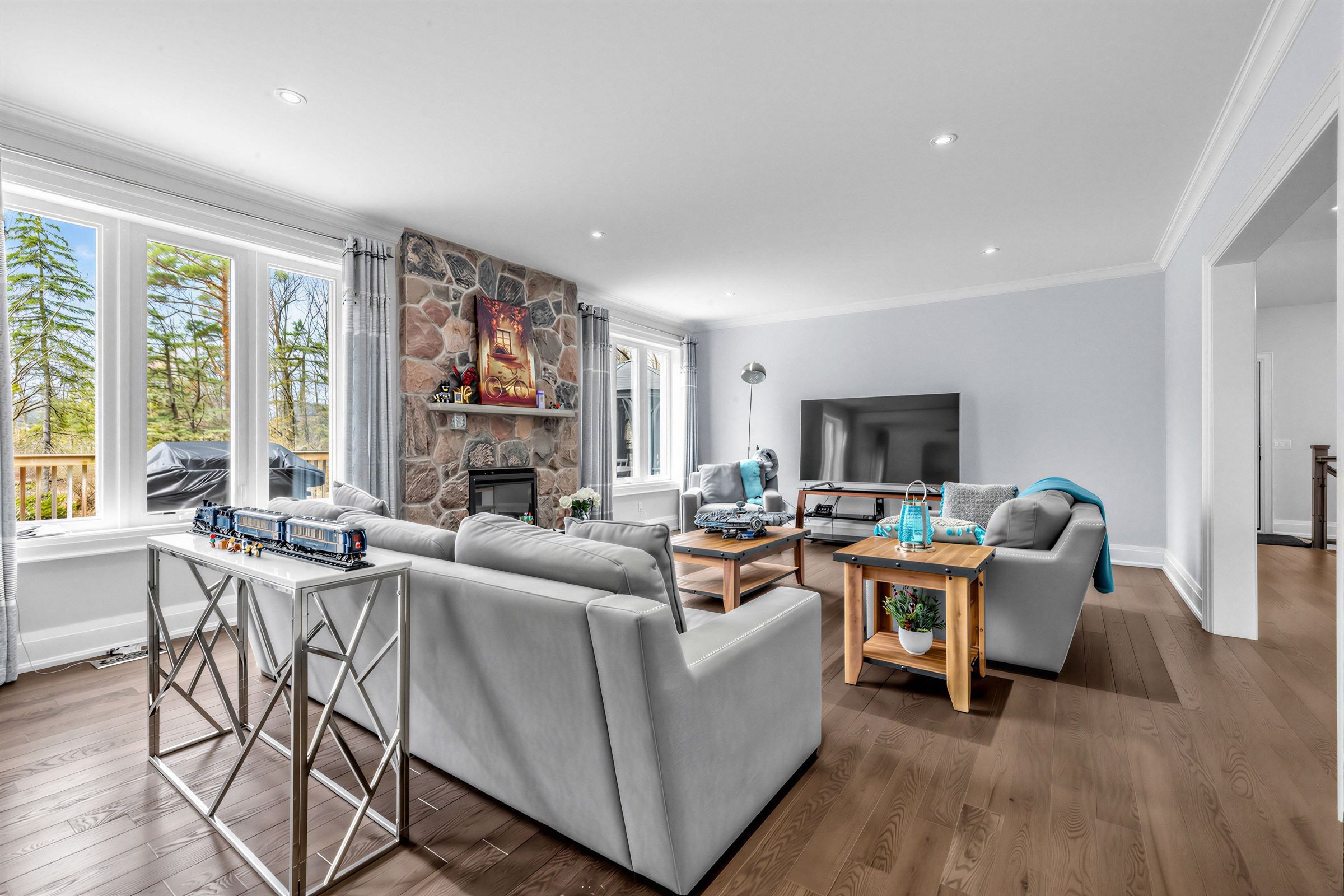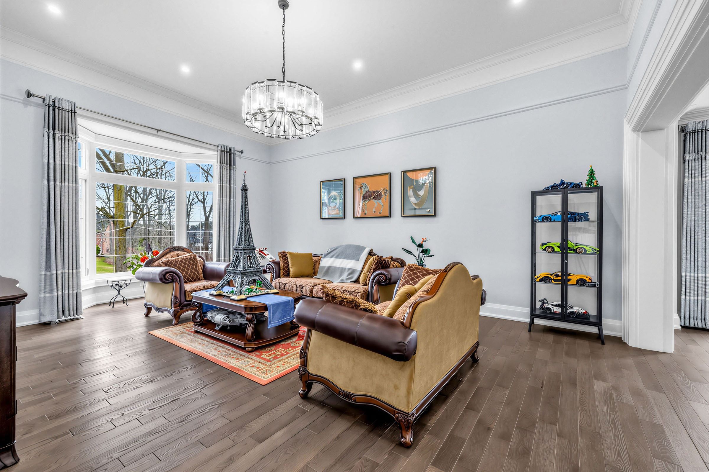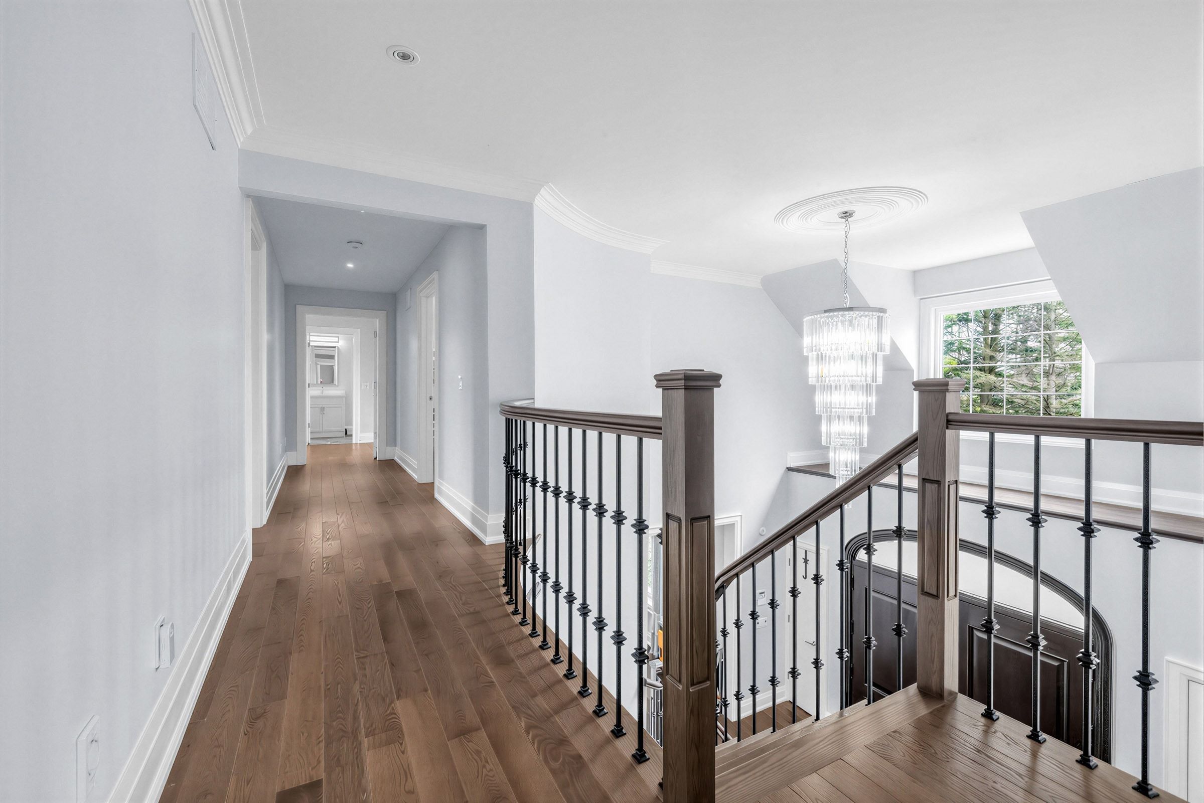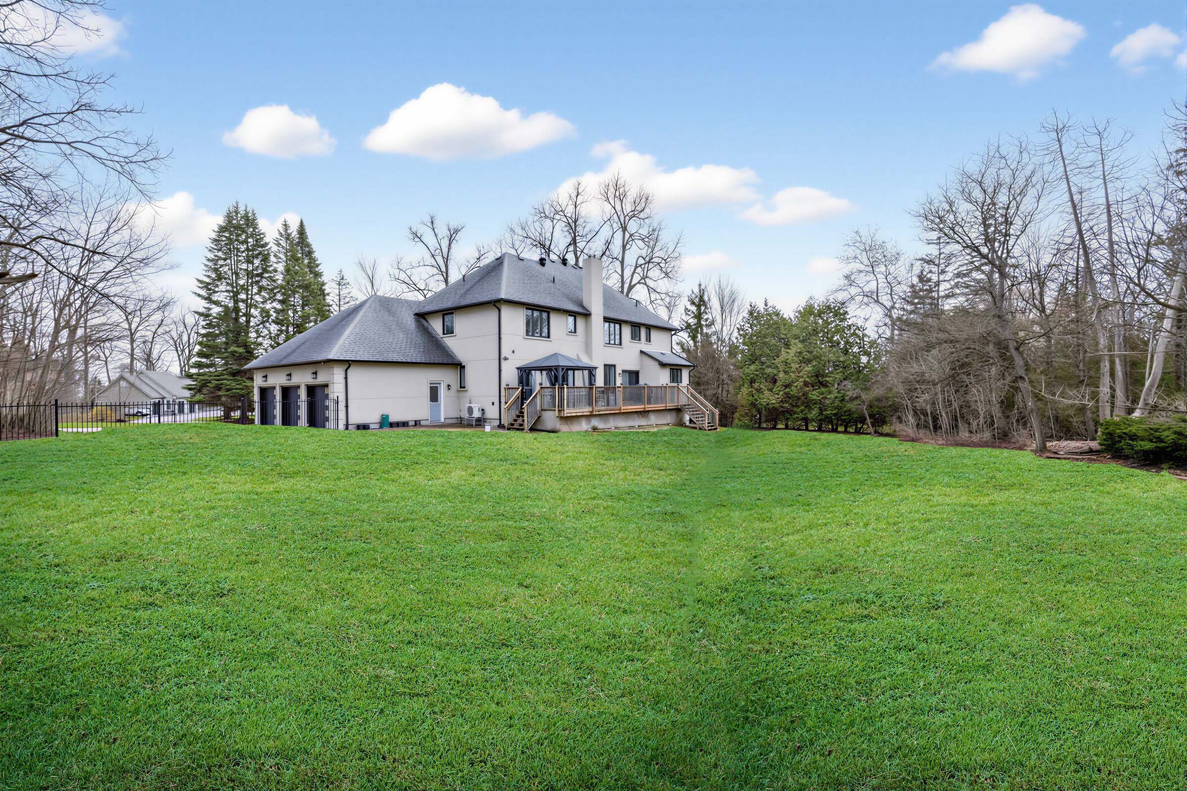 Nestled within the exclusive glenridge executive estate. This sophisticated residence welcomes you with soaring 3. 6m ceilings in the living room, creating an airy and grand atmosphere complemented by gleaming hardwood floors and pot lighting. The main floor is designed for both high-end entertaining and professional productivity, featuring an open-concept office with built-in cabinetry and a formal dining room that captures serene south-facing views. At the heart of the home, the gourmet chef's kitchen-complete with a centre island and stainless steel appliances-flows effortlessly into a sun-drenched breakfast area with a walk-out to the private deck, while connecting seamlessly to a large family room anchored by a cozy fireplace. The second level is dedicated to ultimate privacy and comfort, offering four expansive bedrooms that each feature a private ensuite bathroom. The primary sanctuary serves as a true retreat, boasting a dedicated sitting area, a spacious walk-in closet, and a 6 piece ensuite. Two staircases lead the way to the finished basement, further expanding the home's versatility with a massive recreation room equipped with a wet bar. This level also includes a dedicated home gym and two additional bedrooms for guests or a growing family, all serviced by a convenient 4 piece bath. Experience the pinnacle of sophisticated living in one of the region's most coveted enclaves where every detail of 18 walnut reflects a commitment to refined taste and quality.