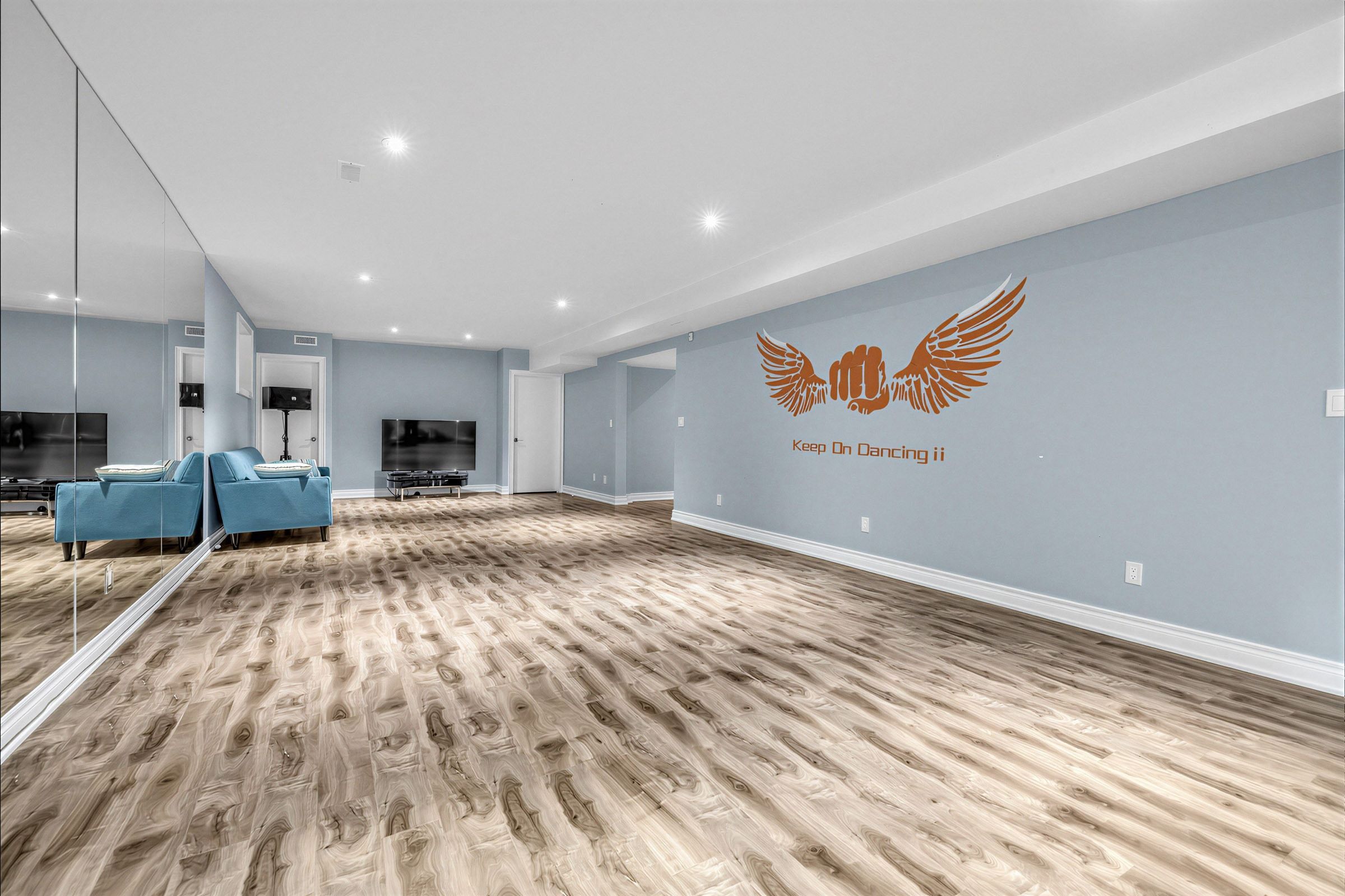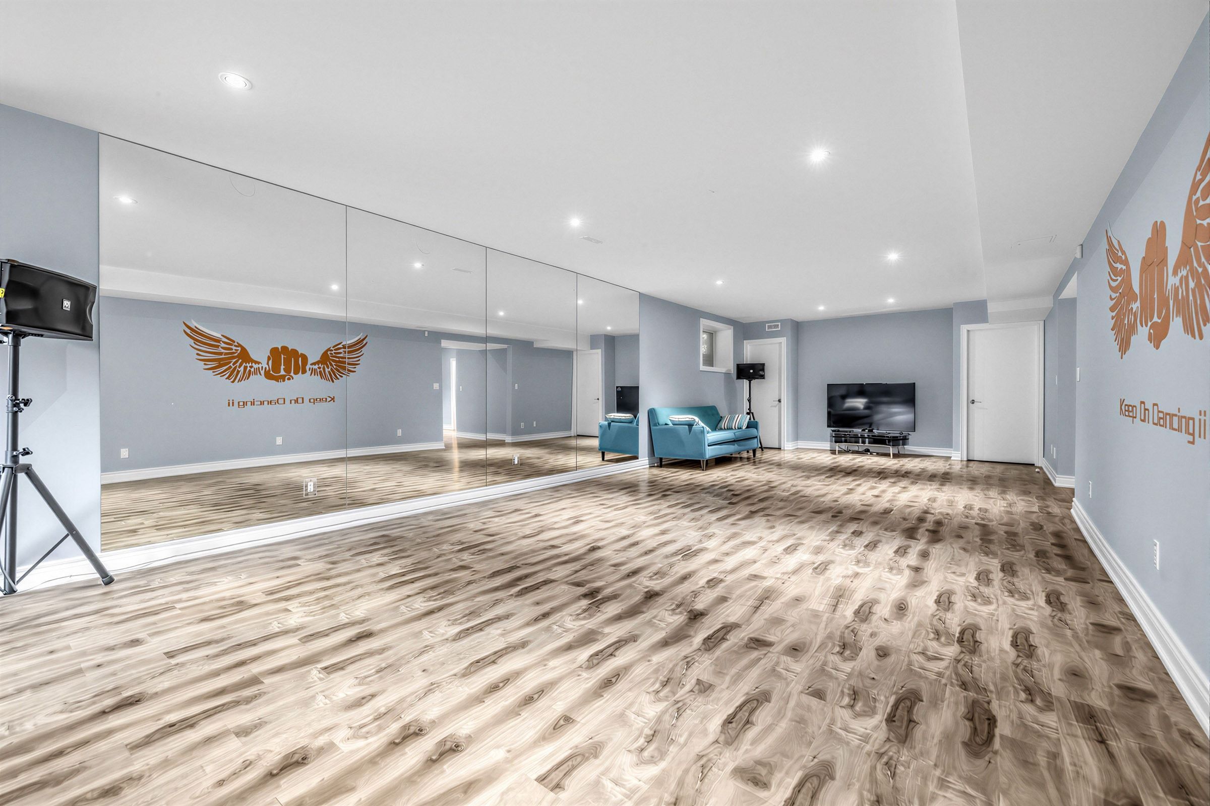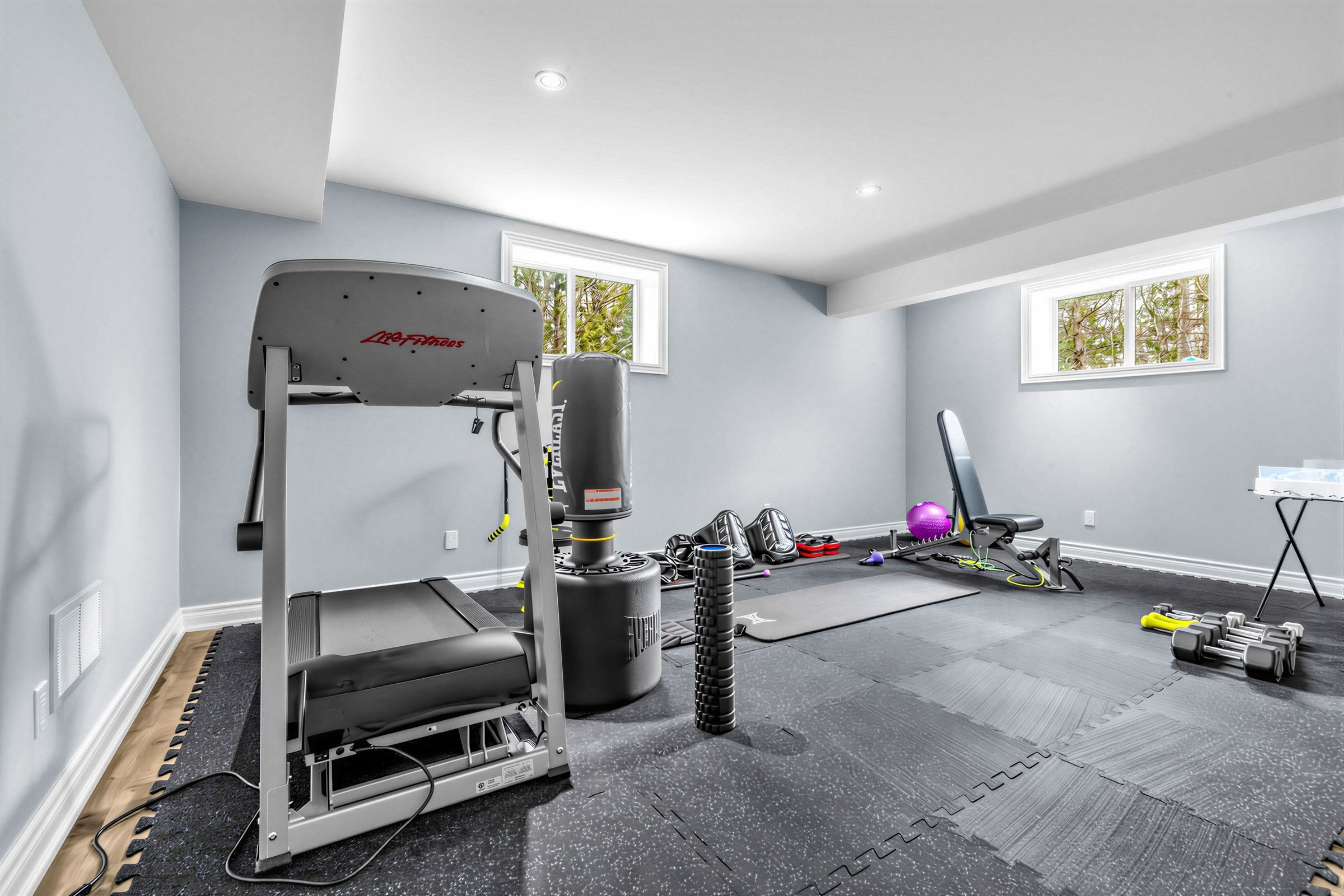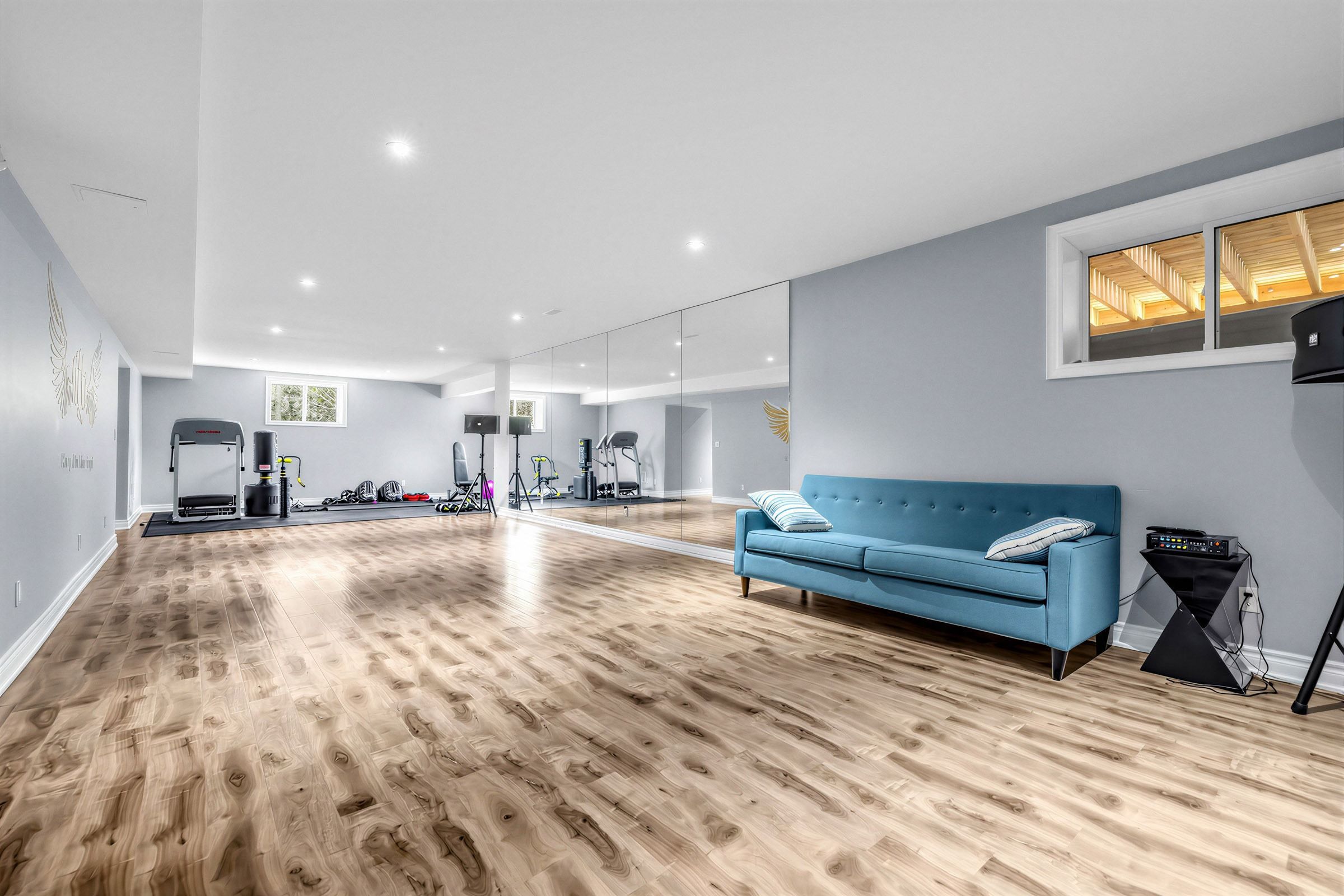 • Finished basement with recreation room, gym, and extra bedrooms for guests.