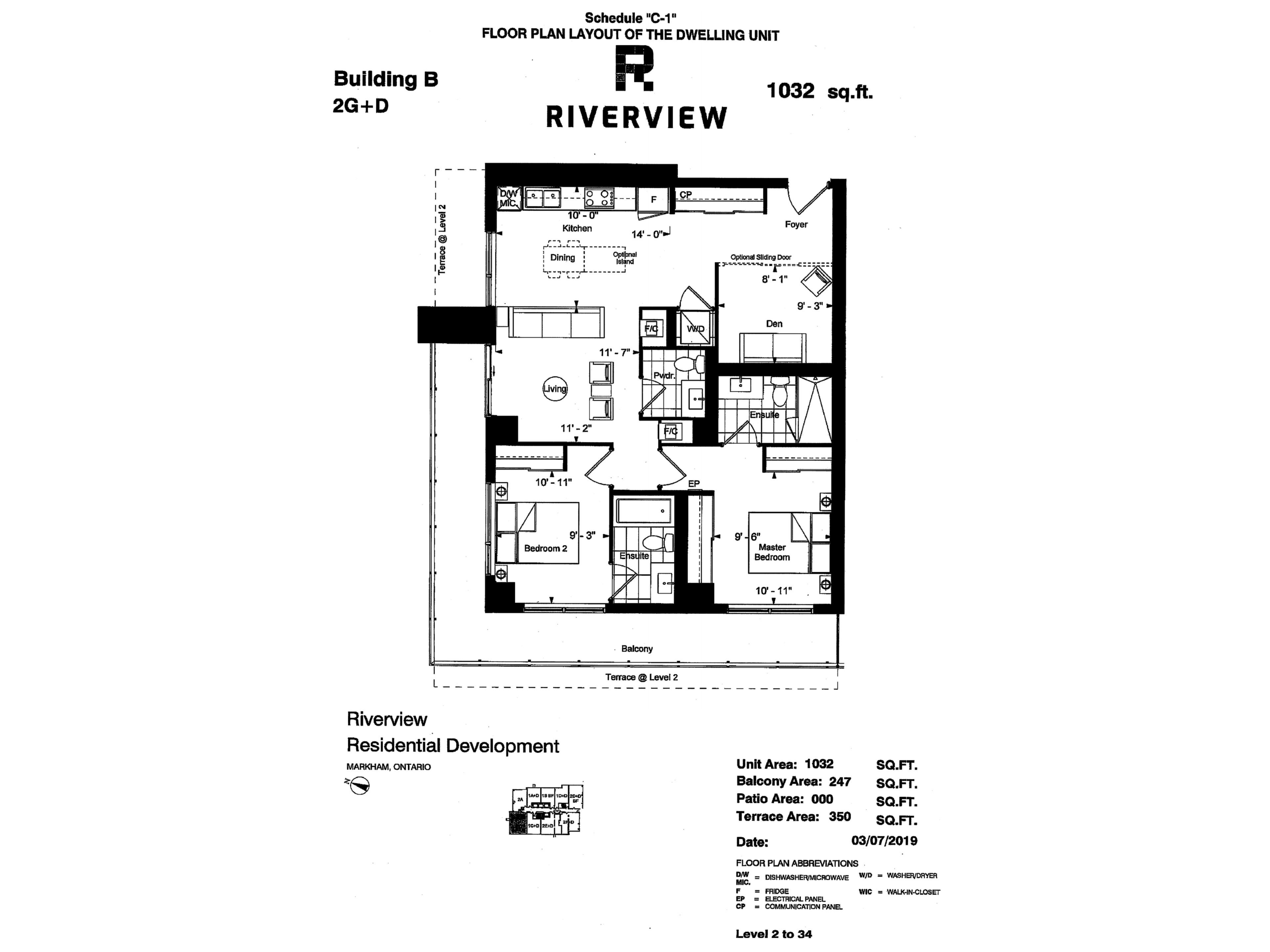 • Spacious unit with two bedrooms, two and a half baths, and a den.