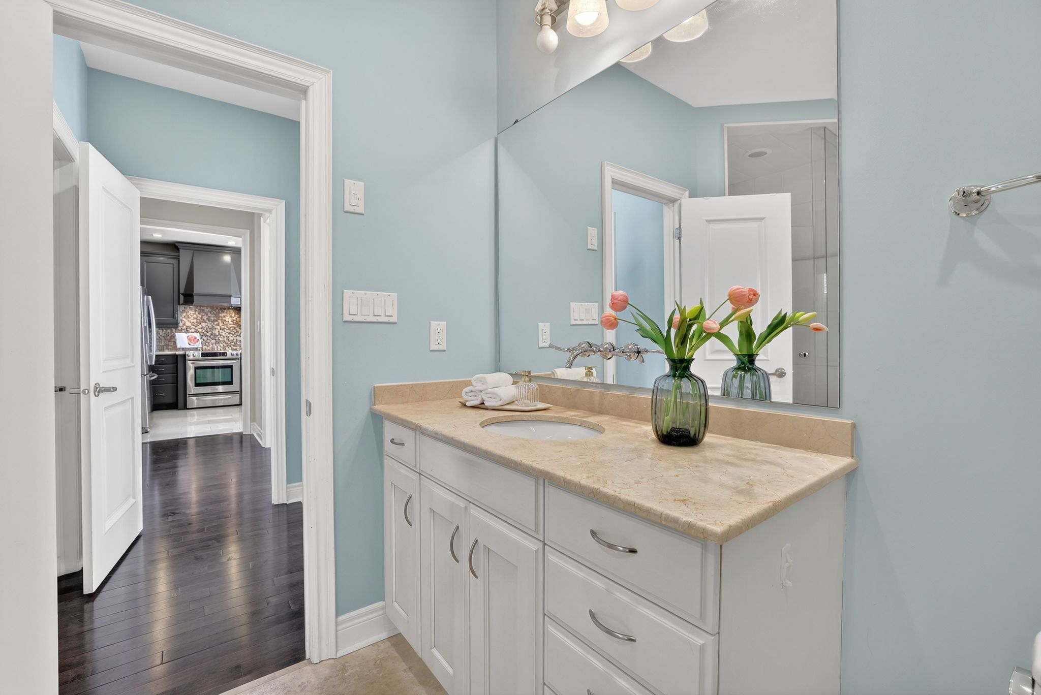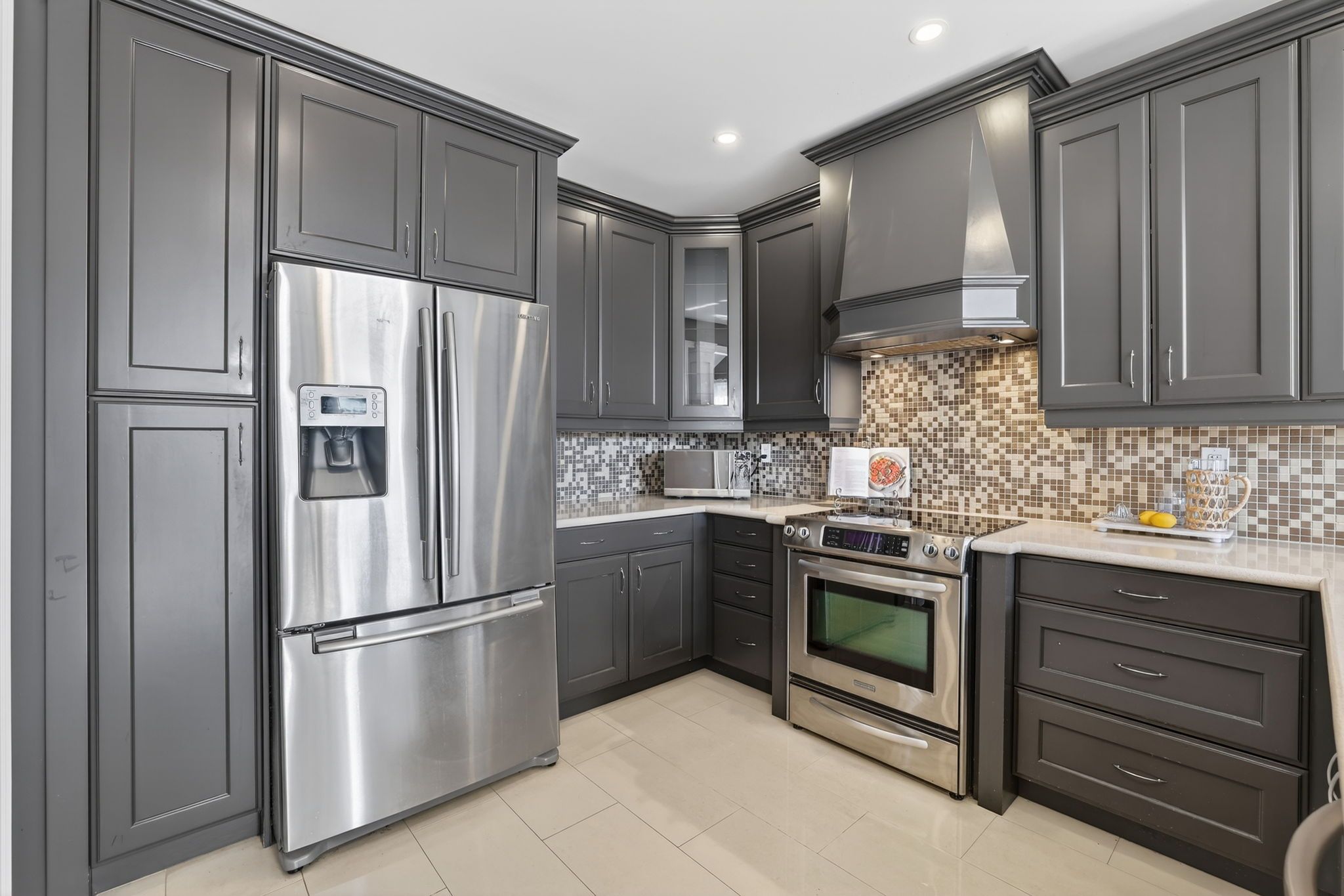 • Chef's kitchen featuring quartz counters and stainless appliances.