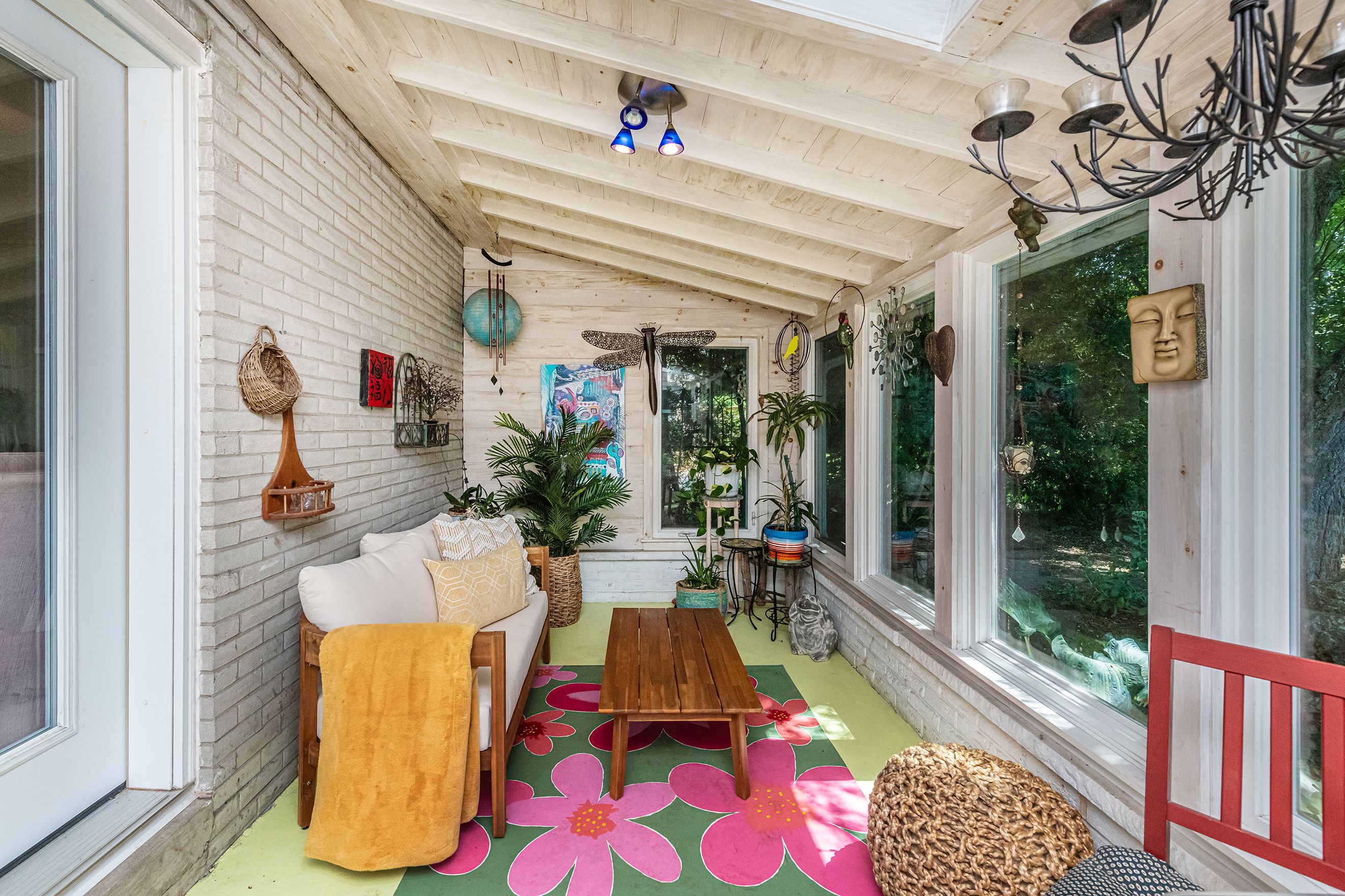 • Cozy family room with fireplace and access to a three-season sunroom.