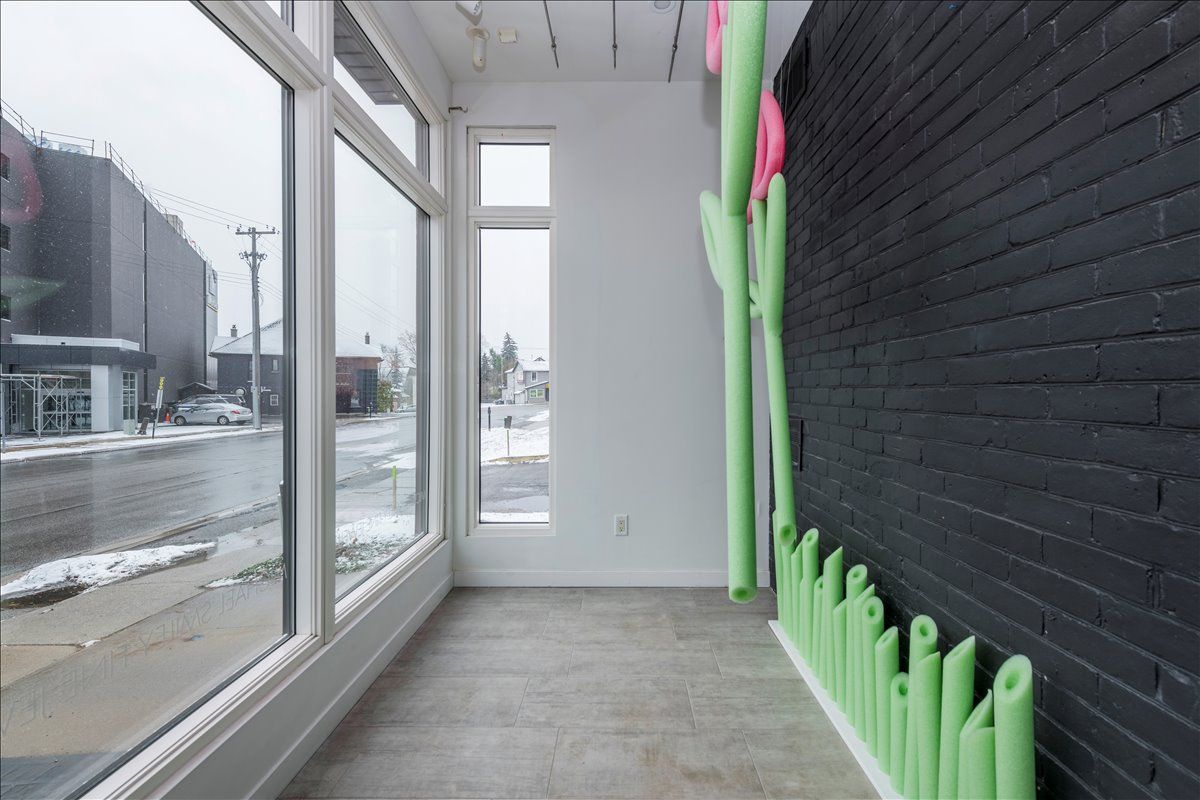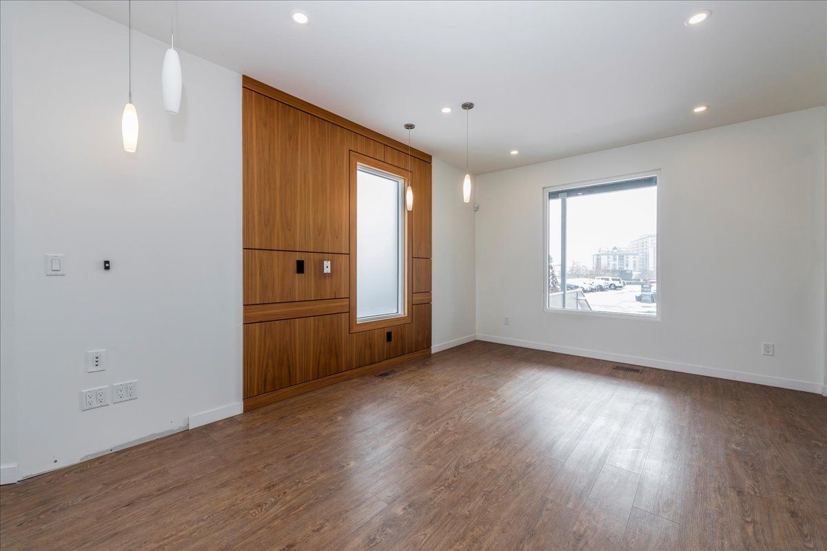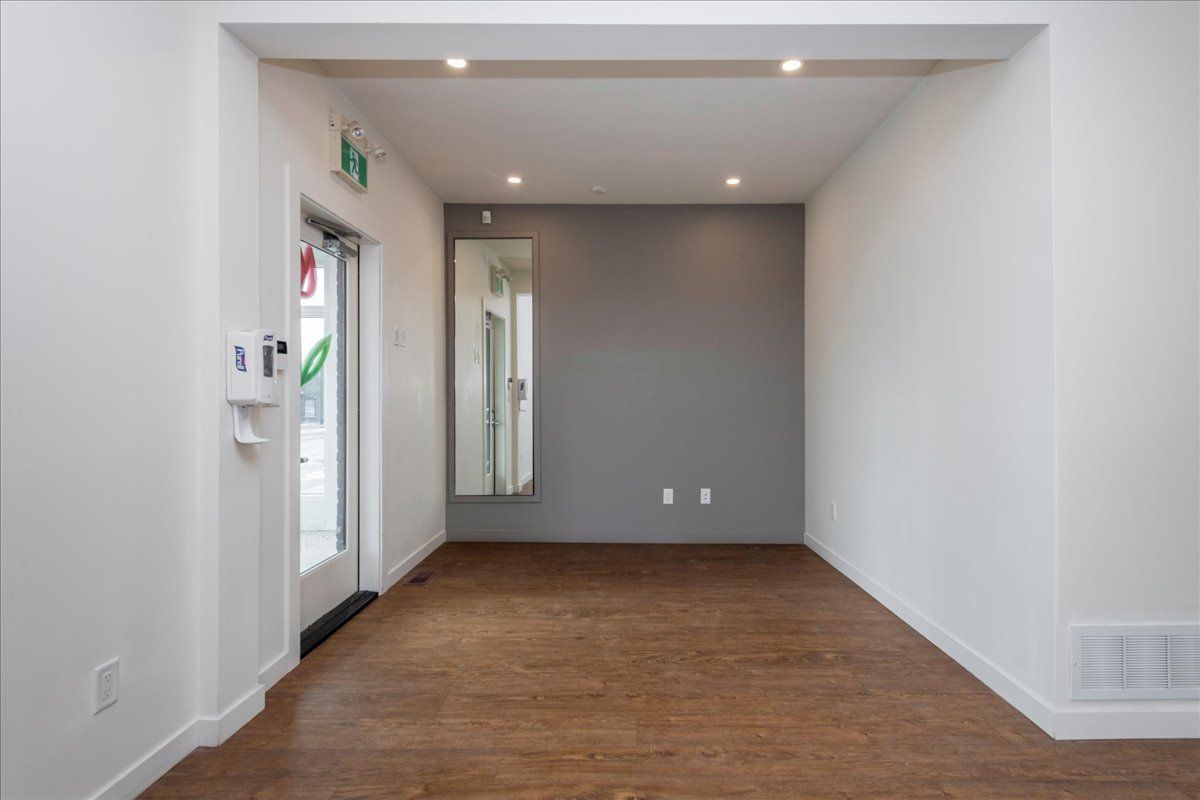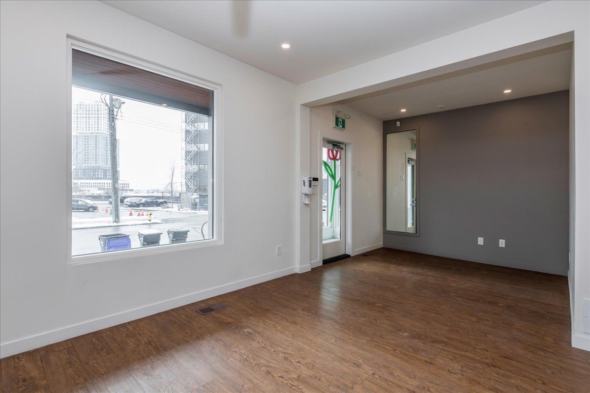 • Bright storefront with large windows and modern finishes on the main level.