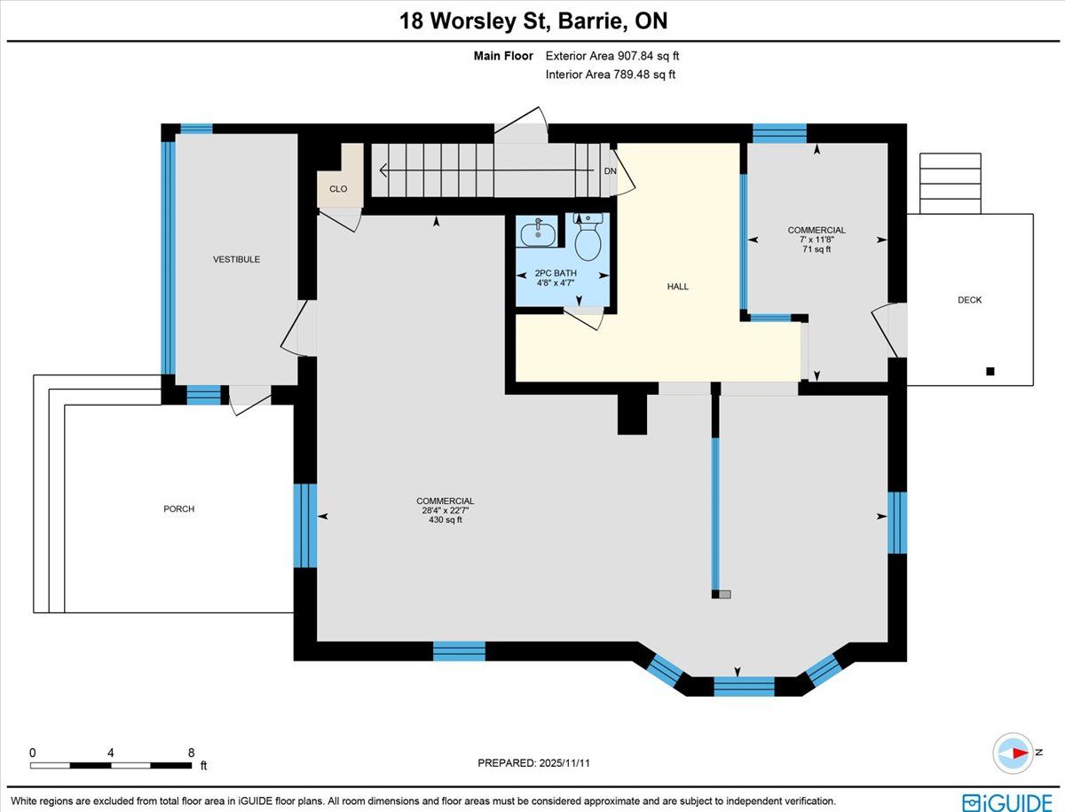 Renovated mixed-use building with over 2,200 sf across three levels in downtown barrie, featuring street-level commercial space, lower level workspace, and a separate 2 bdrm+den residential apartment above. Main level - 907. 84 sf - bright storefront with large display windows, modern finishes, vestibule entry, private washroom, and access to the lower level. Lower level - 761. 54 sf - workspace suitable for studio, workshop, storage, or operational support. Features exposed brick chimney and open work area. Residential apartment - 1,072. 42 sf - 1. 5-storey two-bedroom apartment plus den offering live-work flexibility or rental income. Commercial and residential spaces are separately metered. Highlights: renovated to the studs in 2015 | roof re-shingled 2021 | 10 rear parking spaces (rare downtown) | 20' insulated sea-can included. Steps to waterfront, downtown amenities, and transit. Original renovation floor plans available.