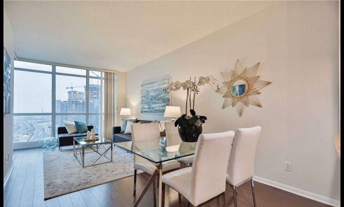 • 1+1 unit with stunning lake and city views from floor-to-ceiling windows.