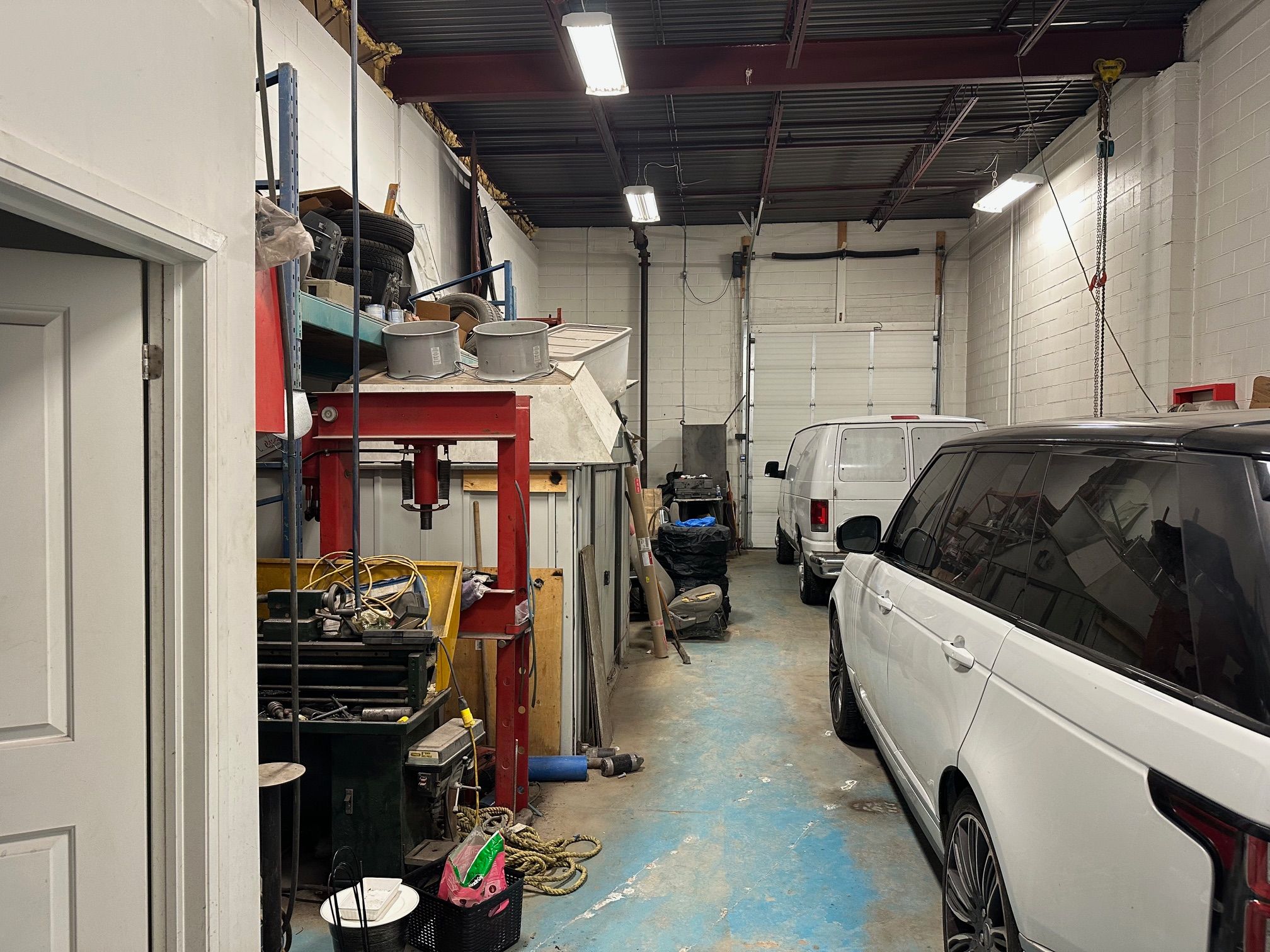 • Shop area in the back with a convenient garage door.