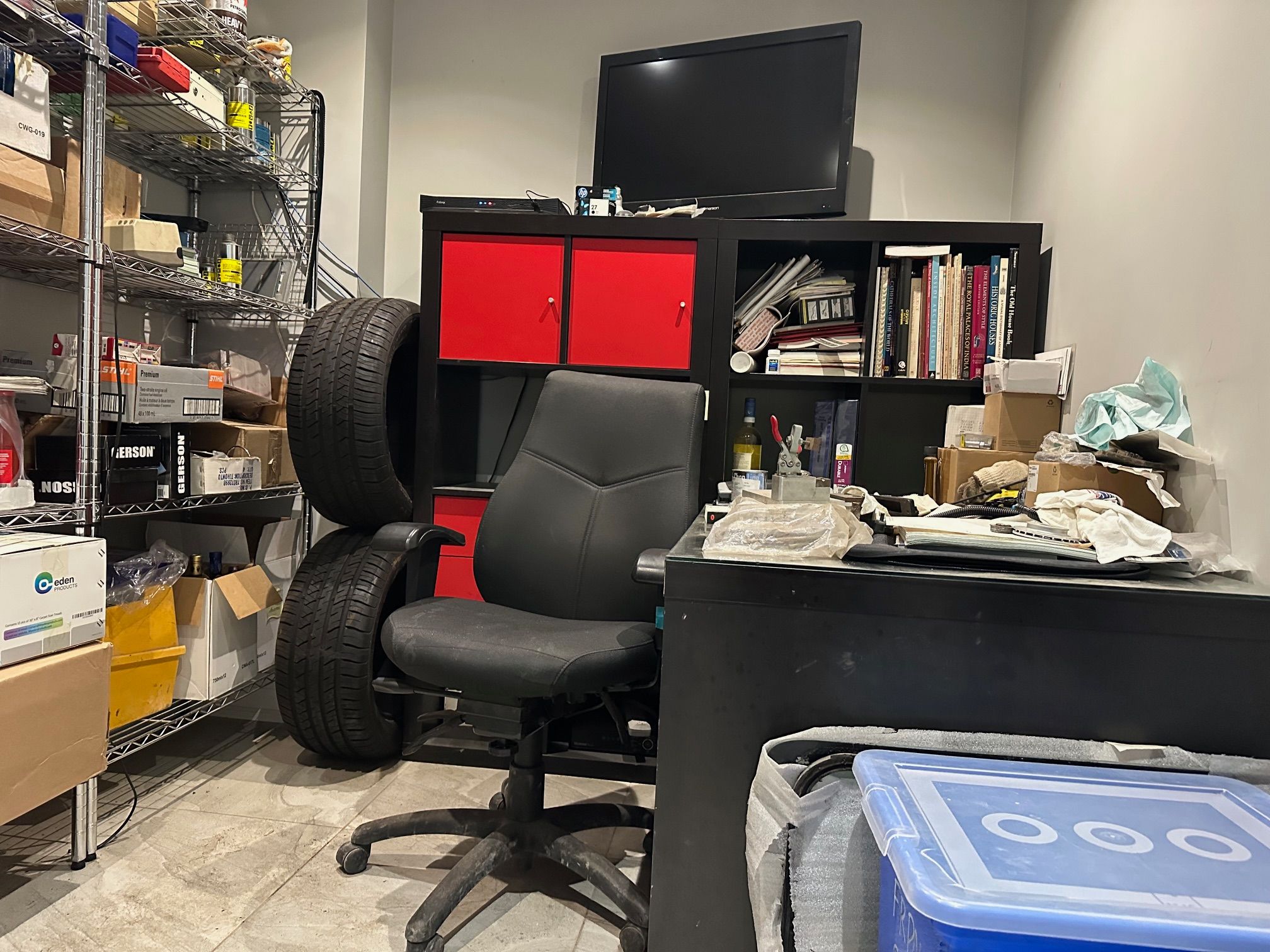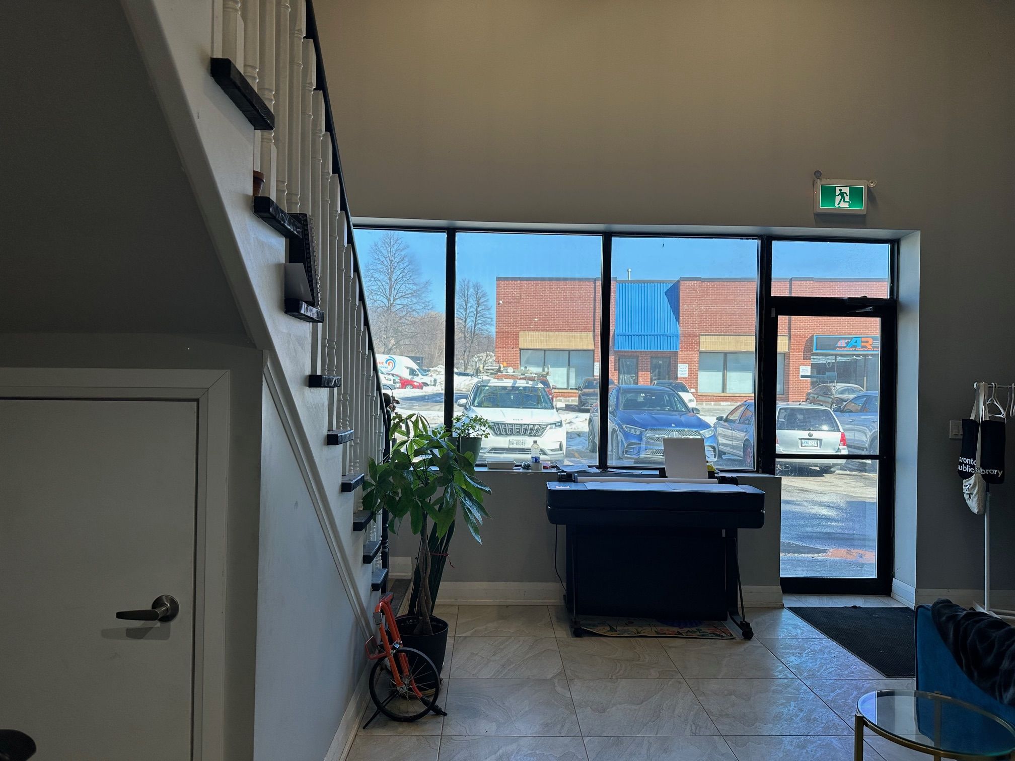 Industrial/commercial unit ,corner unit with plenty of visitor parking space, office at front / shop at back with garage door. Optional for partcial area to lease: front office 382sft + second floor two office 475sqft + middle kitchen &office 355sft+ black garage 1338 sqft.