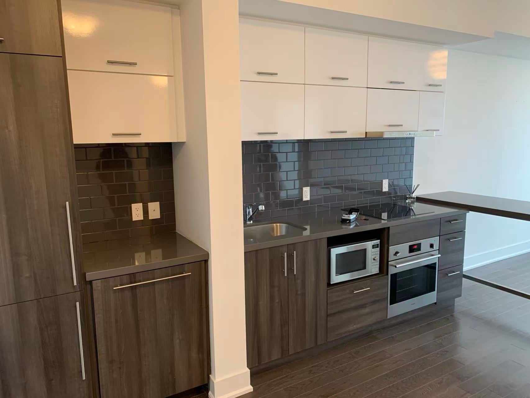Located in the heart of downtown markham. Approximately 560 sq. Ft. Of well-designed, open-concept living space offering a bright and spacious layout with floor-to-ceiling windows and unobstructed north views. Features upgraded hardwood flooring throughout and a modern kitchen with granite countertops, quartz surfaces, centre island, and sleek integrated appliances including fridge, cooktop, stove, dishwasher, and microwave. Enjoy a large private balcony, stacked washer and dryer, and contemporary finishes throughout. Conveniently located minutes to hwy 407 & hwy 7, unionville go station, restaurants, cineplex, hotels, and more. Includes 1 parking space.