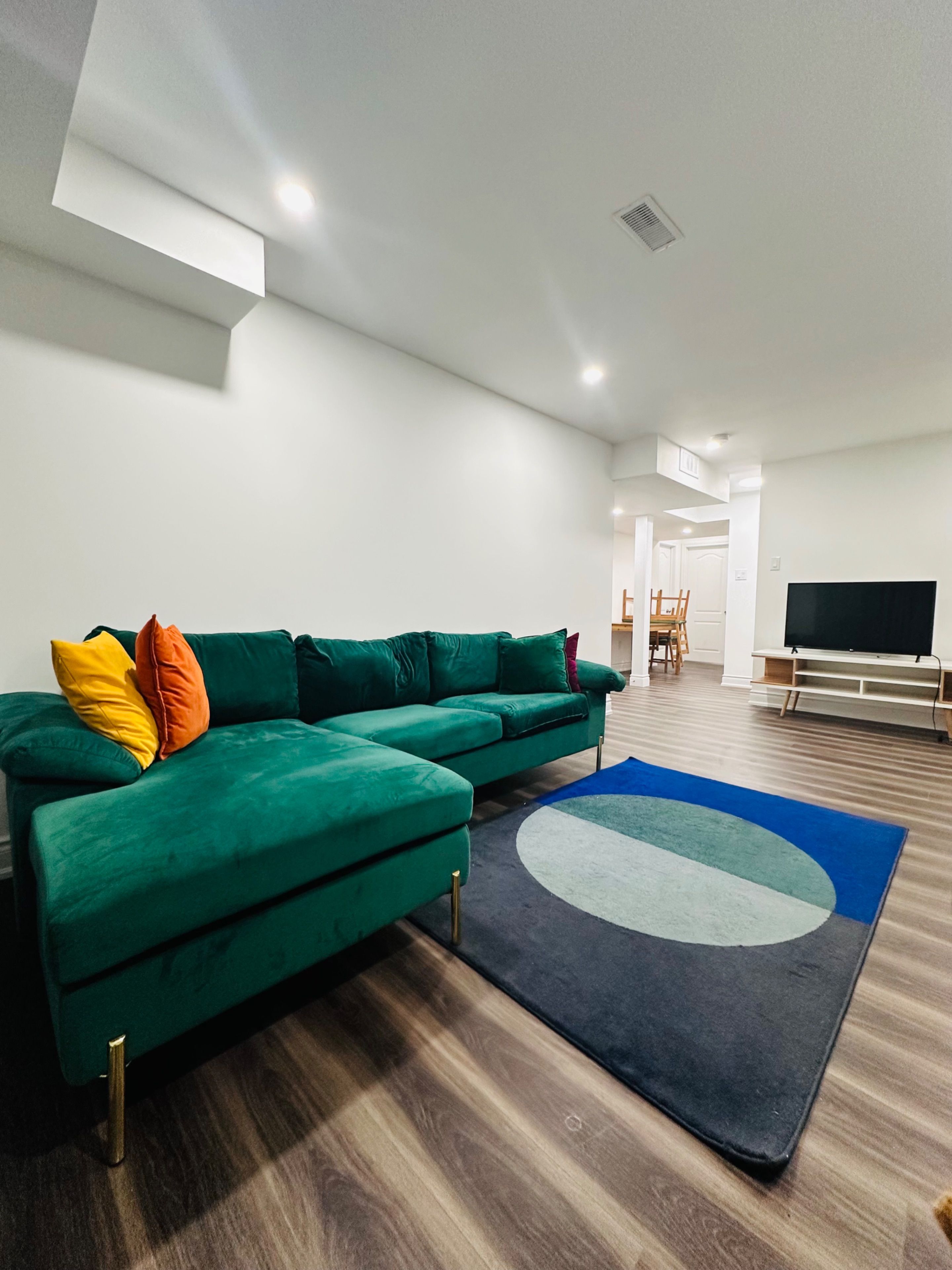 Private entrance - bright lower unit profesionally finished spacious!!! 2 bedrooms (note that 2nd bedroom/den does not have window). High end finishes. Private laundry in unit. Looking for aaa tenants - parking available on street. No pets and no smoking due to allergies