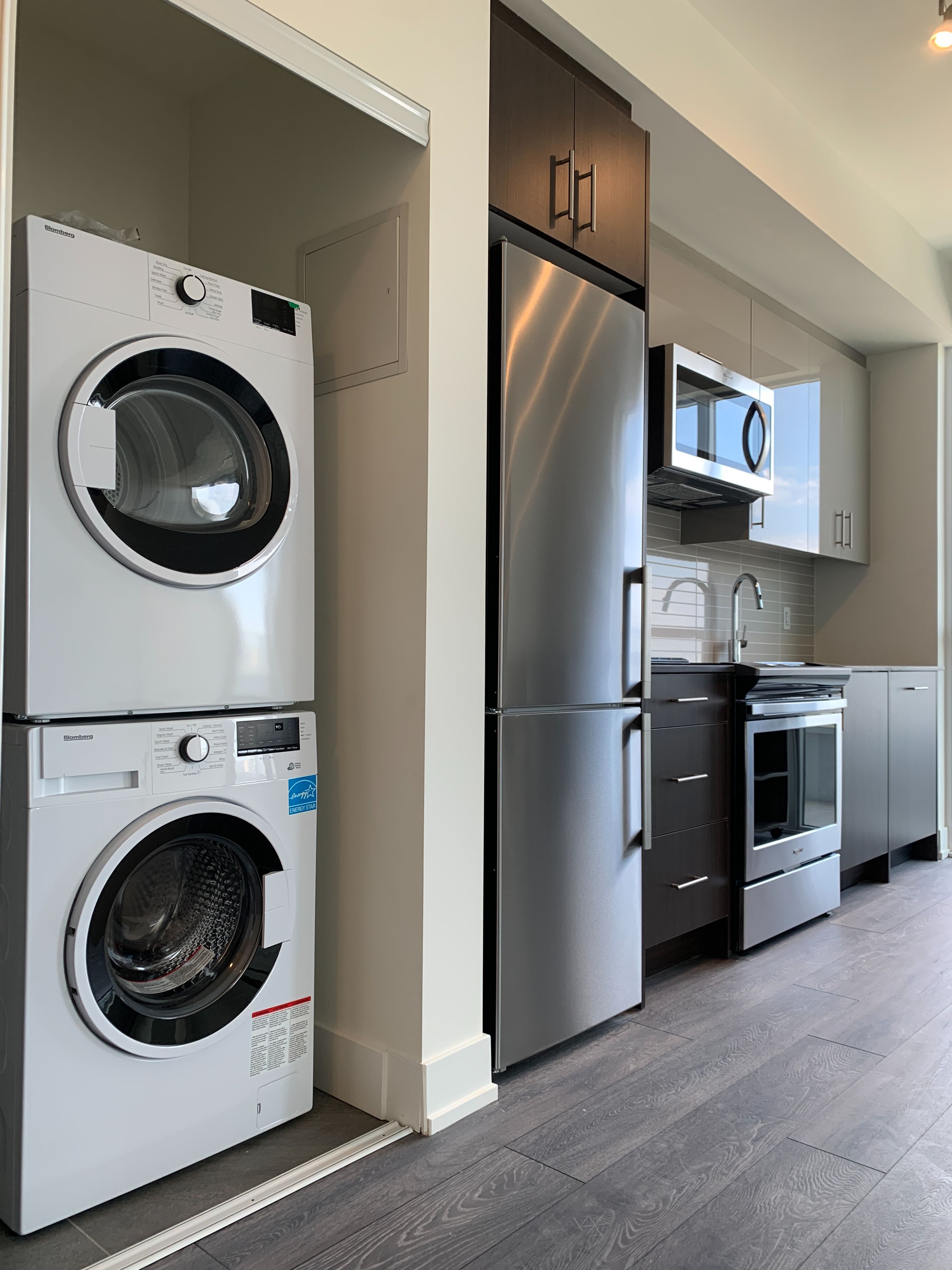 • Modern kitchen equipped with stainless steel appliances for convenience.