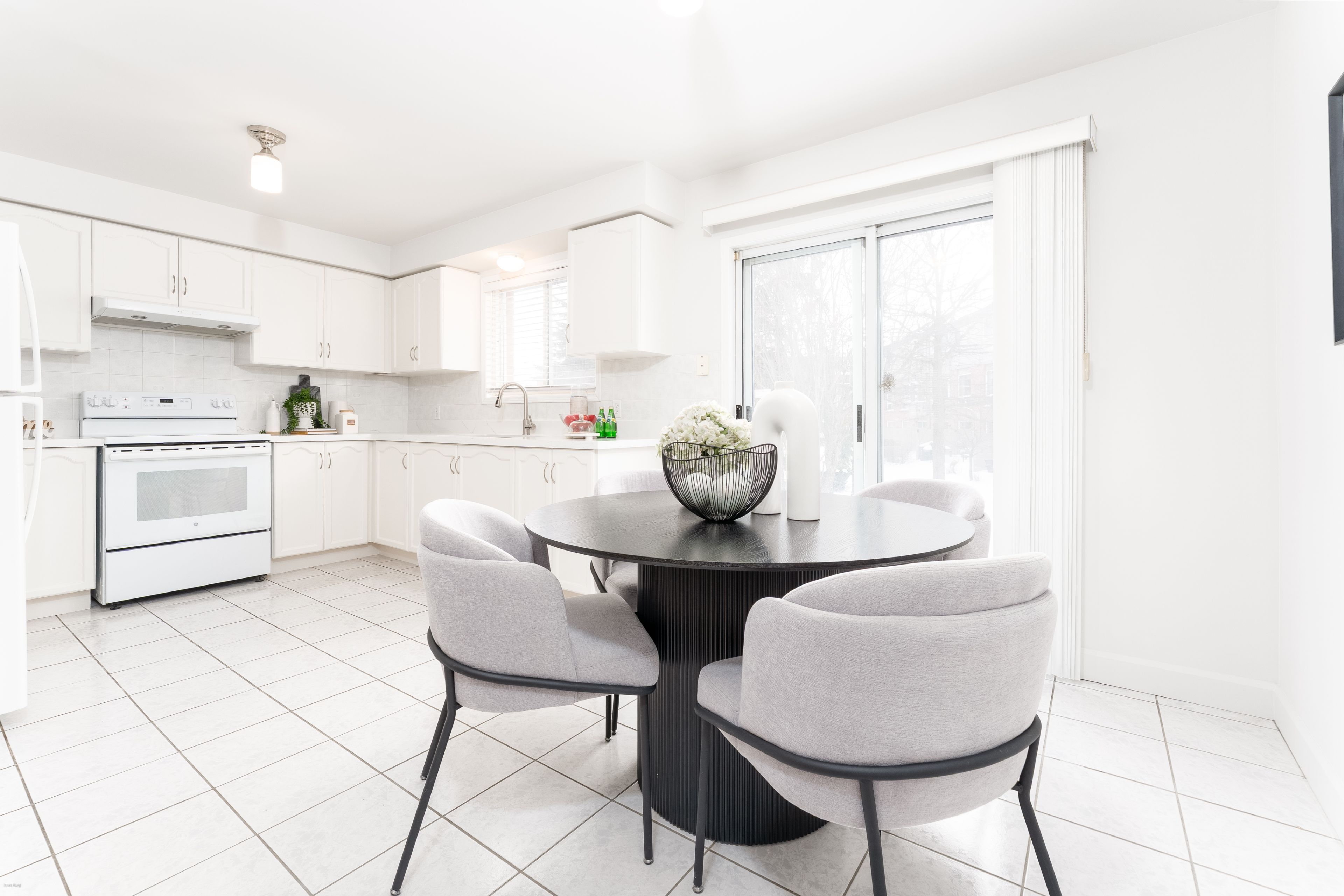 • Spacious kitchen with new quartz countertops and ample cabinetry.