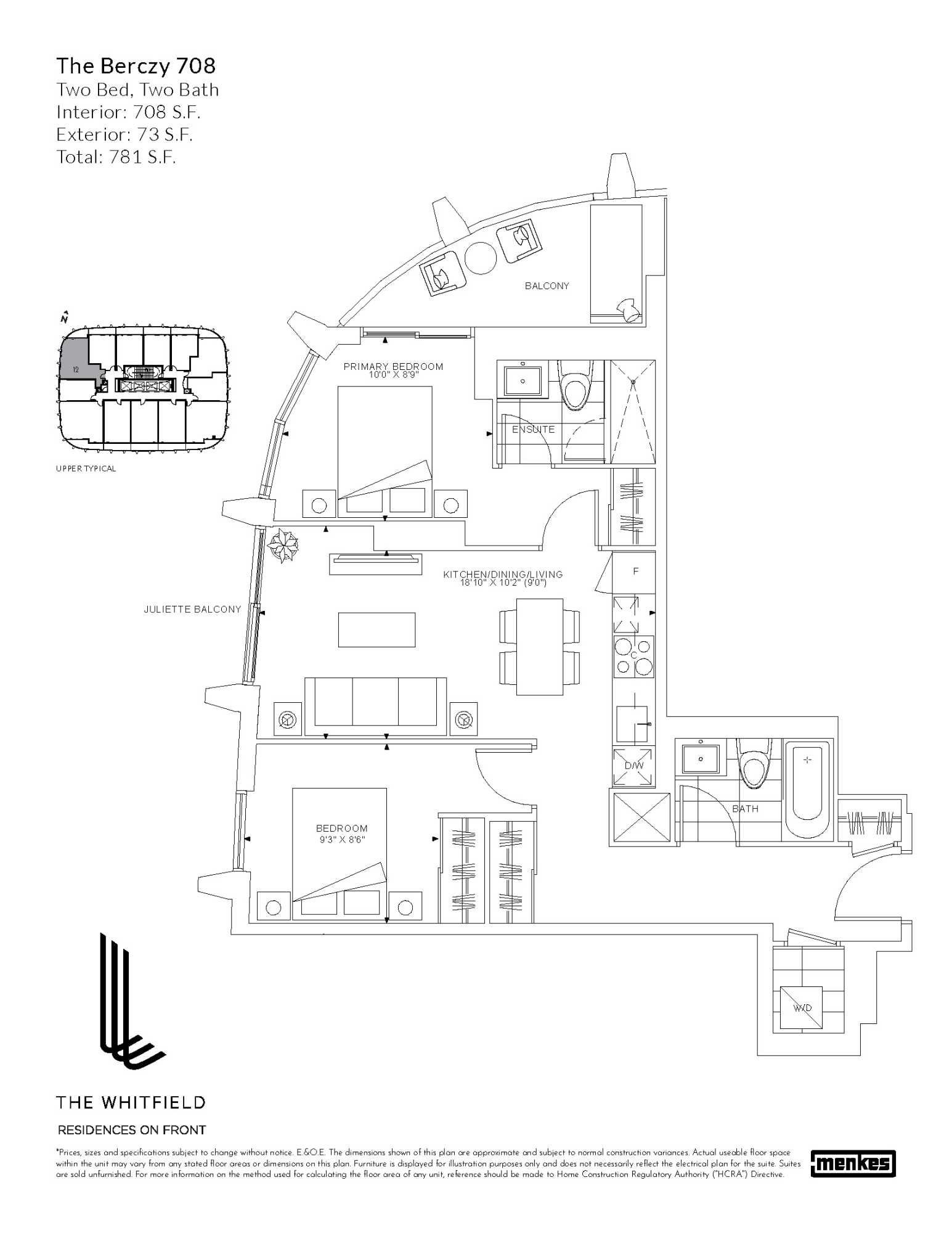 Whitfield condos by menkes, brand new residence located in the heart of downtown toronto. Open balcony with toronto city view. This 2 bedroom, 2 bathroom suite offers a modern layout,contemporary finishes, and an abundance of natural light. Excellent building amenities with concierge, fitness center, steps to st. Lawrence market, financial distict, parks,restaurants, union station and the distillery district