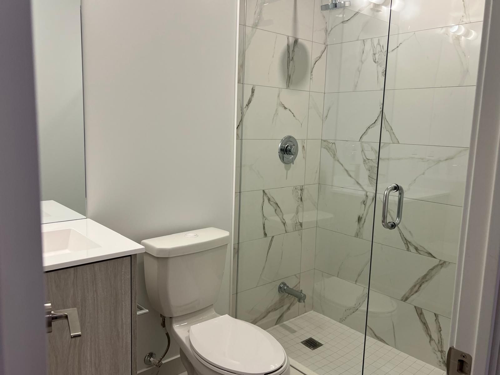Never lived in before, this sun-filled 1+1 bedroom suite with 2 full bathrooms is located inthe heart of downtown. Thoughtfully designed with a smart, functional layout, the unit featuresfloor-to-ceiling windows, an open-concept living and dining area, and a modern kitchen withplenty of storage. Enjoy a spacious private balcony that extends your living space outdoors. The fully enclosed primary bedroom includes its own ensuite, while the separate den with asliding door is perfect as a second bedroom or home office. Conveniently located close toshopping, dining, transit, and waterfront amenities. Non-smoking unit, no pets preferred.