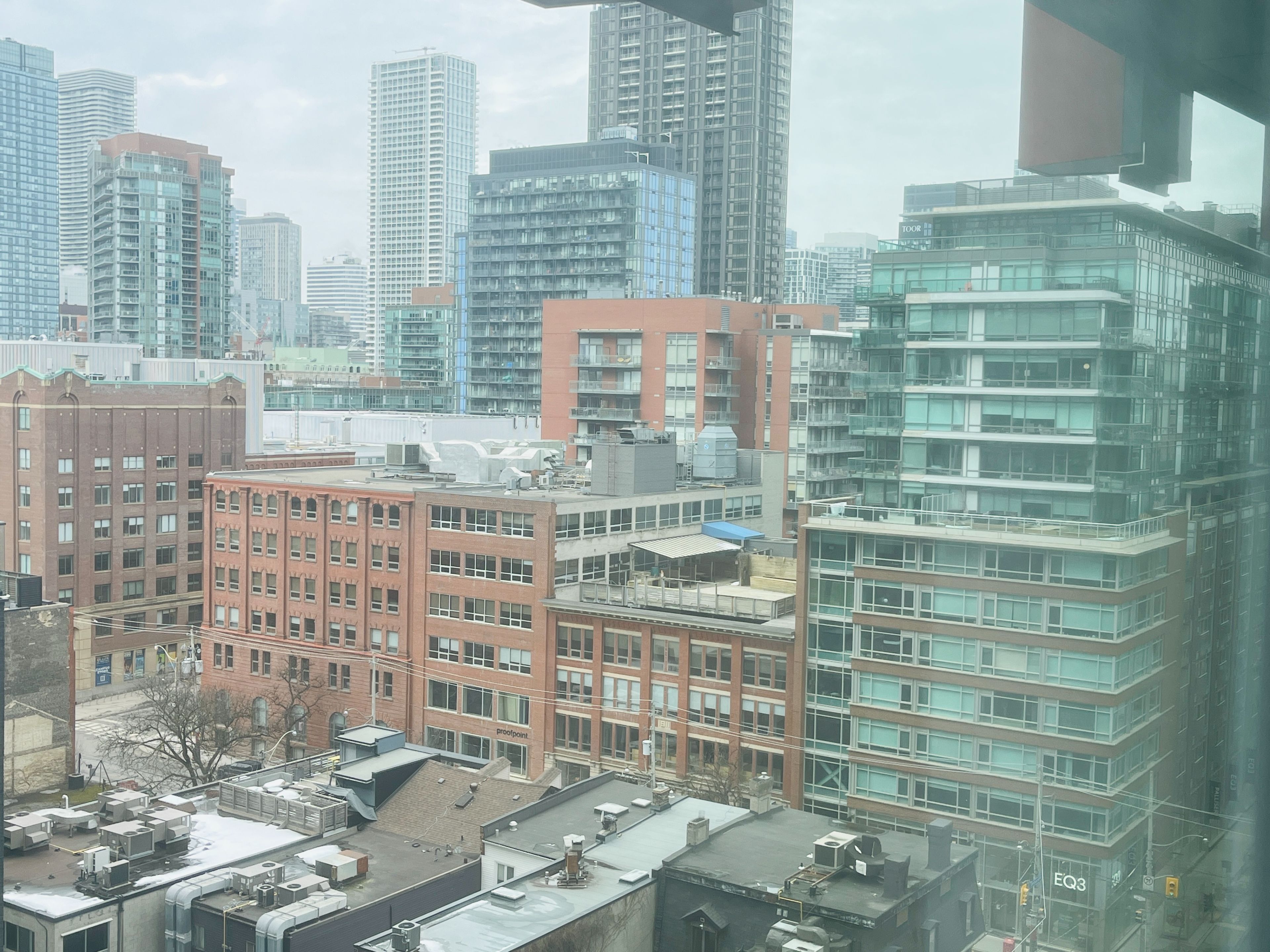 • New bachelor condo with floor-to-ceiling windows in downtown Toronto.
