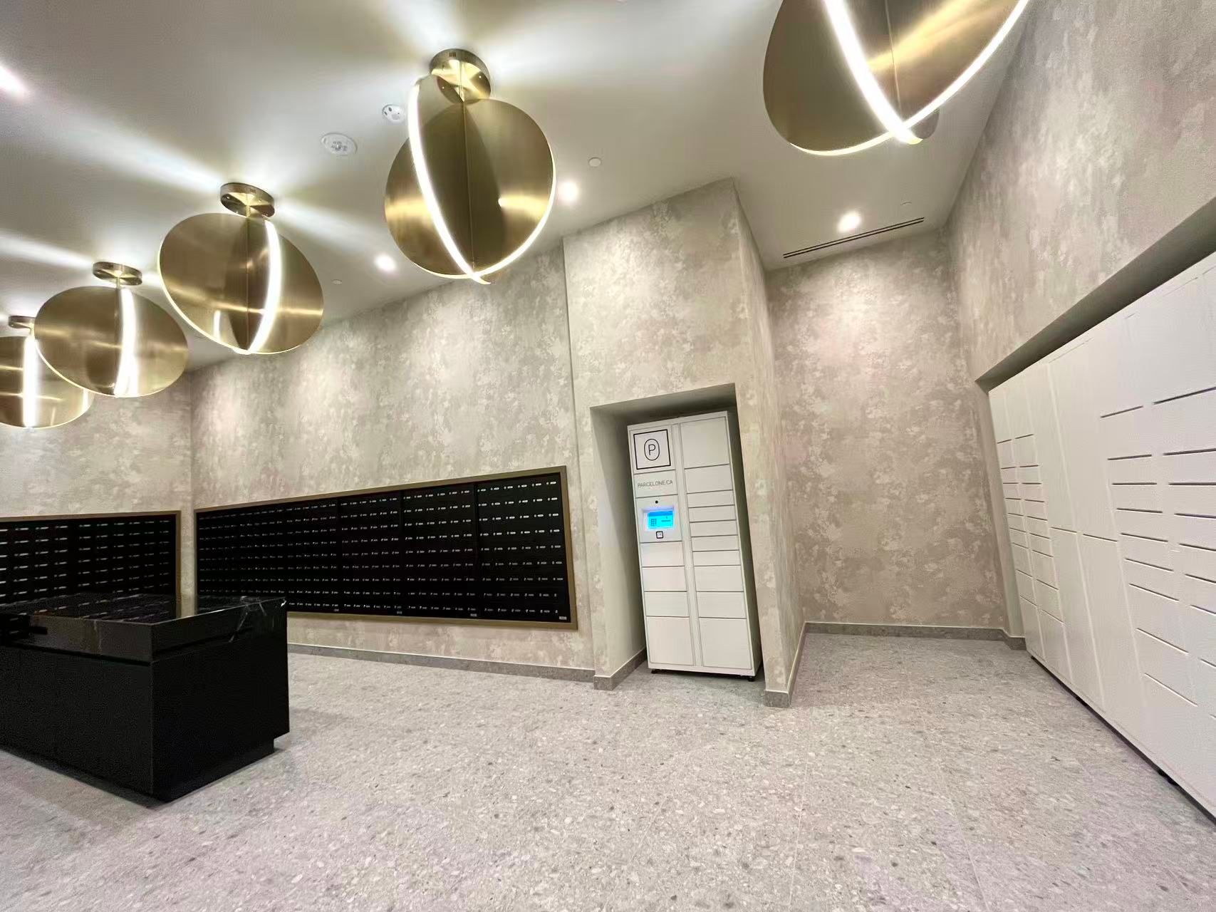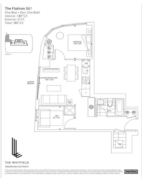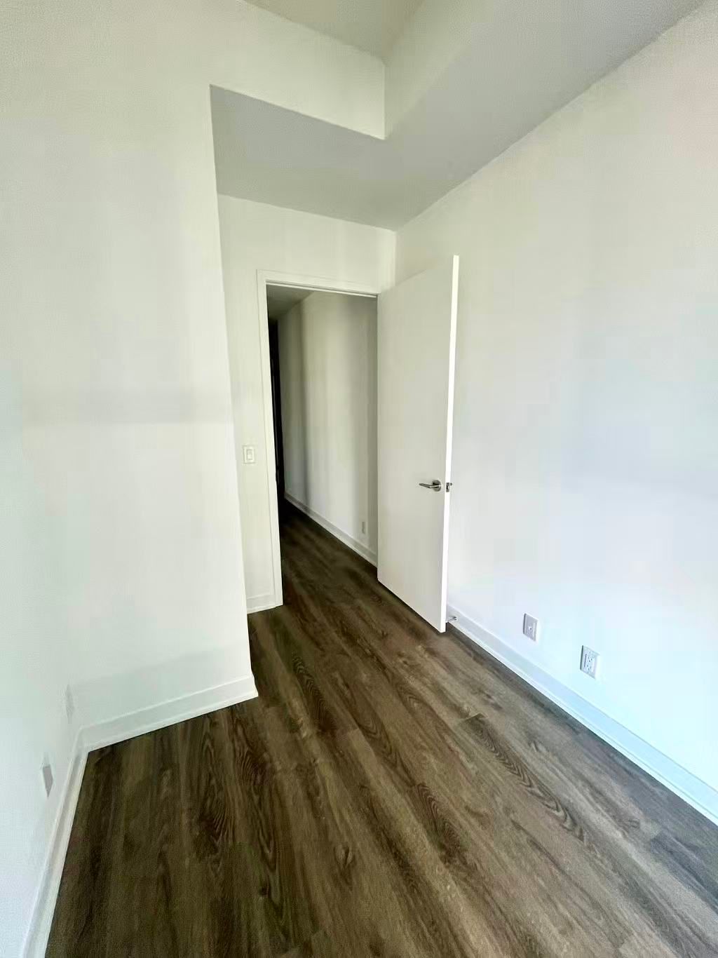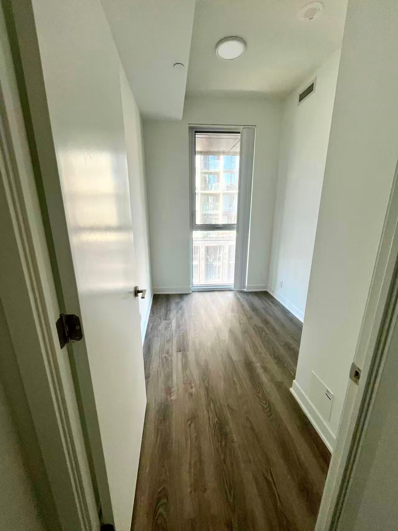 Welcome to this bright and spacious high-floor one-bedroom plus den suite featuring unobstructed city views and a large private balcony facing north west. The versatile den includes both a door and a window, making it ideal for use as a second bedroom or home office. Enjoy a fully enclosed primary bedroom for true privacy, an open-concept living and dining area, a modern kitchen with quality finishes, and the convenience of ensuite laundry. Floor-to-ceiling windows provide abundant natural light throughout. Located in a prime downtown location, no frills at downstairs, steps to george brown college, st. Lawrence market, public transit, dining, shopping, and scenic waterfront trails. Perfect for professionals or students.