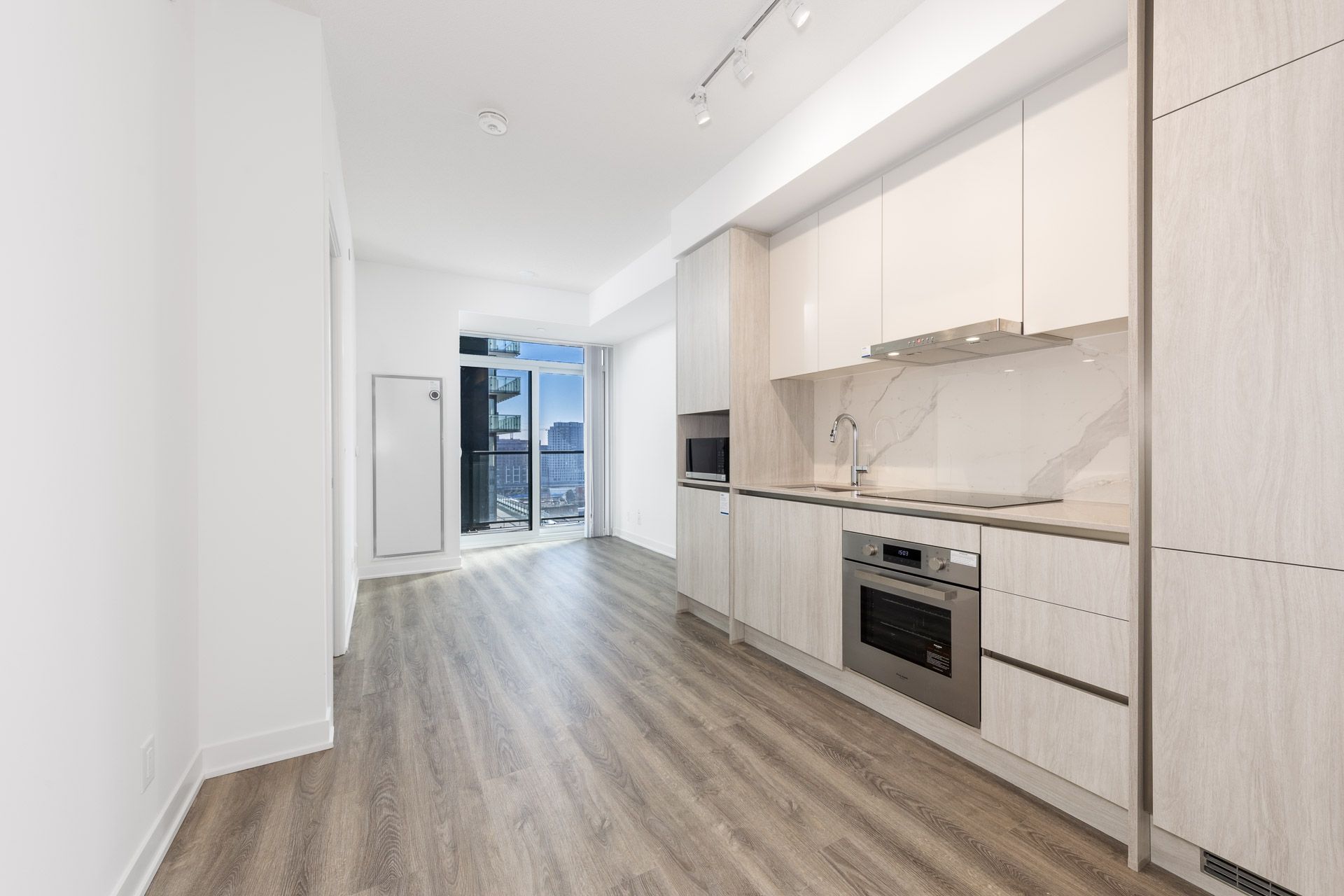 Brand new south-facing 1 bed +den w/ 2 full bath suite at the whitfield, built by renowned menkes, ideally located at front st e & sherbourne in the heart of downtown toronto. This well-designed suite offers an efficient open-concept layout with floor-to-ceiling windows bringing in plenty of natural light. The den is a separate enclosed room with a sliding door, ideal for use as a home office or second bedroom. The modern kitchen features integrated appliances, quartz countertops, and sleek cabinetry, seamlessly connected to the living and dining area. Building amenities to be completed include a 24-hour concierge, fitness centre, co-working lounge, party room, media lounge, and outdoor terrace. Prime downtown location just steps to st. Lawrence market, the distillery district's cafés, boutiques and galleries, the waterfront, financial district, george brown college, union station, groceries, restaurants, and everyday conveniences