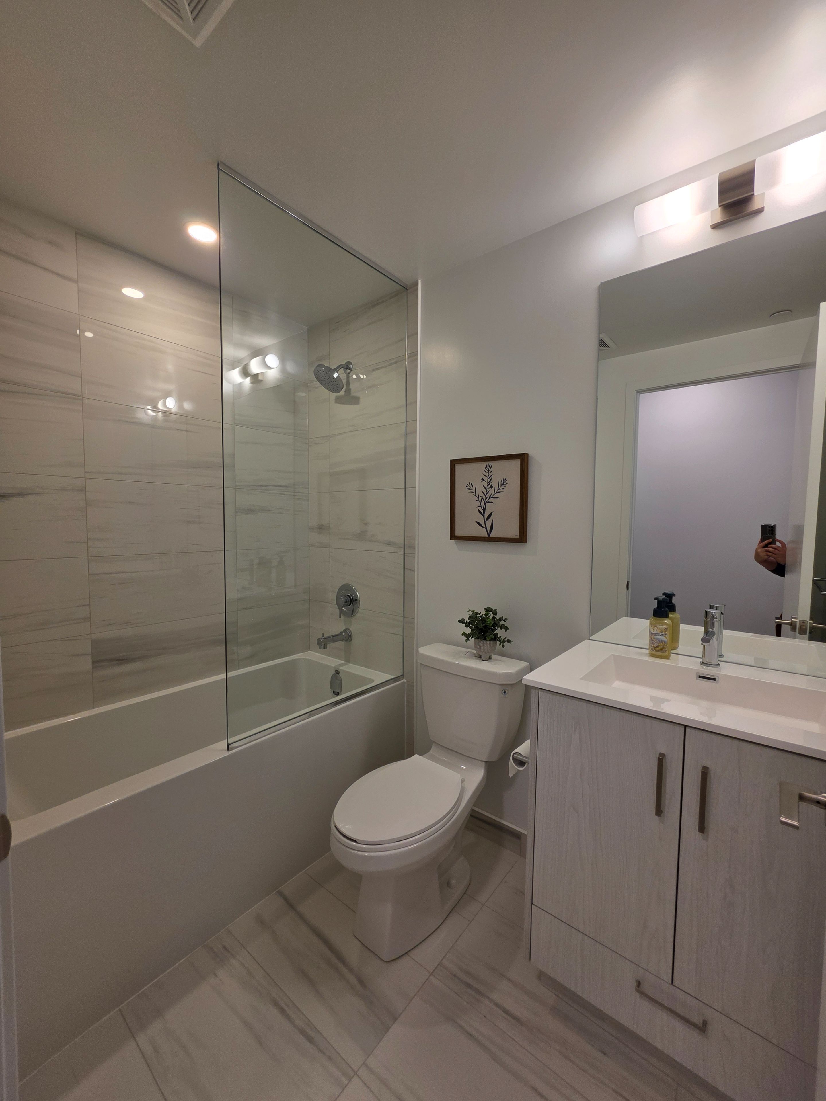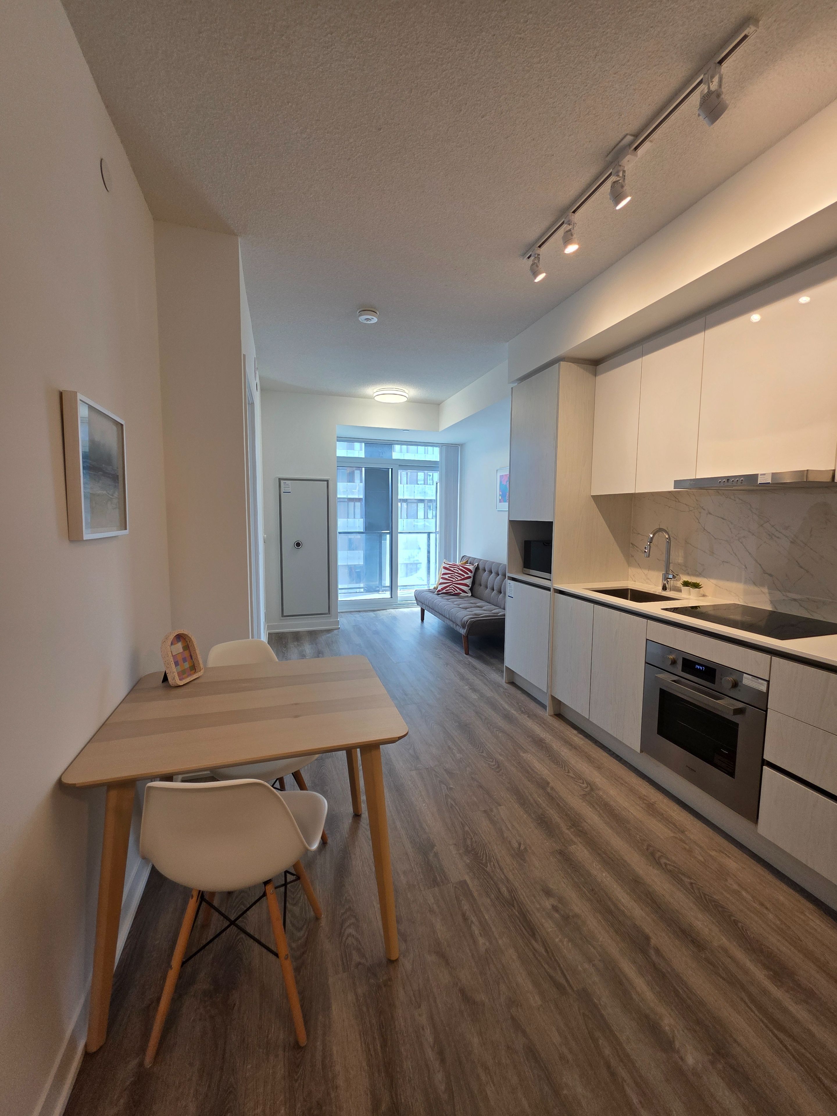 Furnished option! (one queen bed in the master, sofa bed in the livingroom, dining table and 2 chairs included). A proper mattress will be provided later. Brand new building built by menkes. 1 bedroom plus den & 2 full bathrooms. Where den is spacious to fit a single bed with glass doors separating the living space. Welcome to your modern retreat in one of toronto's most vibrant neighborhoods. This thoughtfully designed space combines style and efficiency, featuring an open-concept layout that maximizes natural light and makes everyday living feel effortless. Located in downtown toronto, you'll enjoy sleek contemporary finishes, great building amenities, and unbeatable access to the distillery district's cafes, boutiques, galleries, and waterfront paths. Steps away from the historic st. Lawrence market where fresh food is accessible. Transit, groceries, and entertainment are all just steps away - the perfect blend of convenience and character.