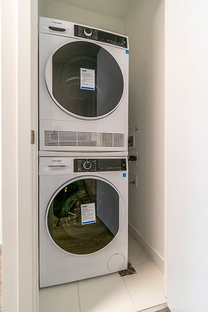 • Modern finishes include quartz countertops and stainless steel appliances.