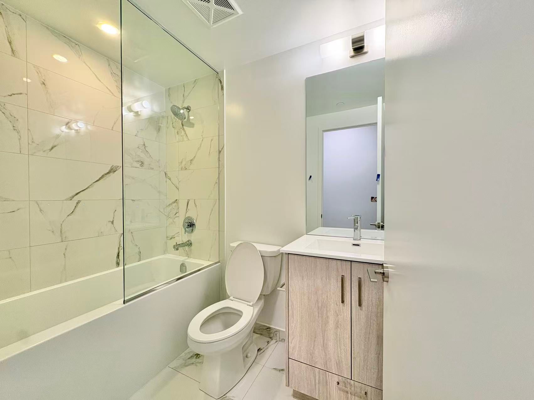 Unobstructed view! Welcome to whitfield condos! Brand new and just completed, this 581 sq ft 1-bedroom + den, 2-bathroom suite (581r model) offers exceptional functionality and modern design. The enclosed den with sliding door is a separate room and can easily serve as a second bedroom or home office. Featuring a bright open-concept layout, this unit maximizes space and natural light, complemented by sleek contemporary finishes throughout-perfect for comfortable urban living. Located in the heart of downtown toronto, just steps to the distillery district, you'll enjoy easy access to cafes, boutiques, galleries, and scenic waterfront trails. Transit, groceries, and entertainment are all within walking distance, offering the ideal blend of convenience and lifestyle.