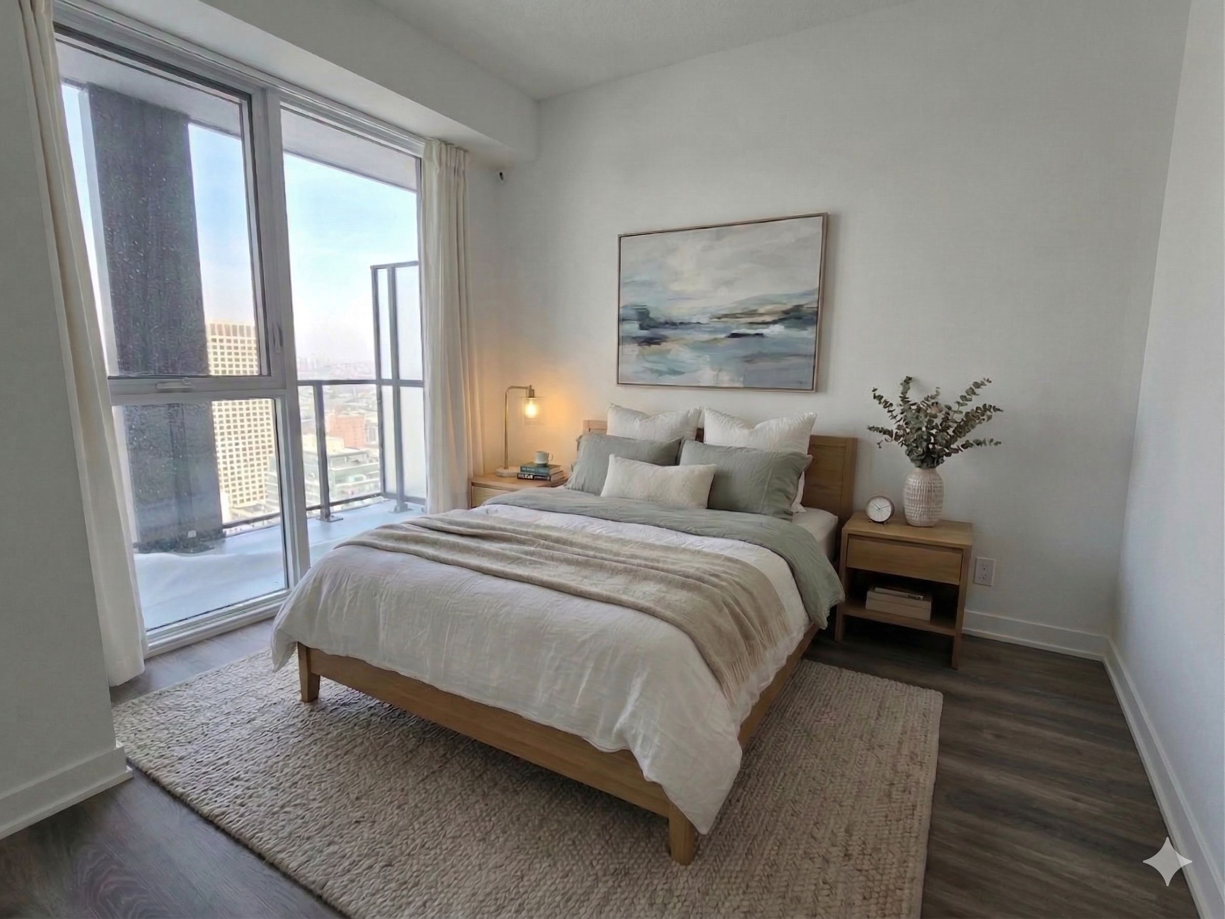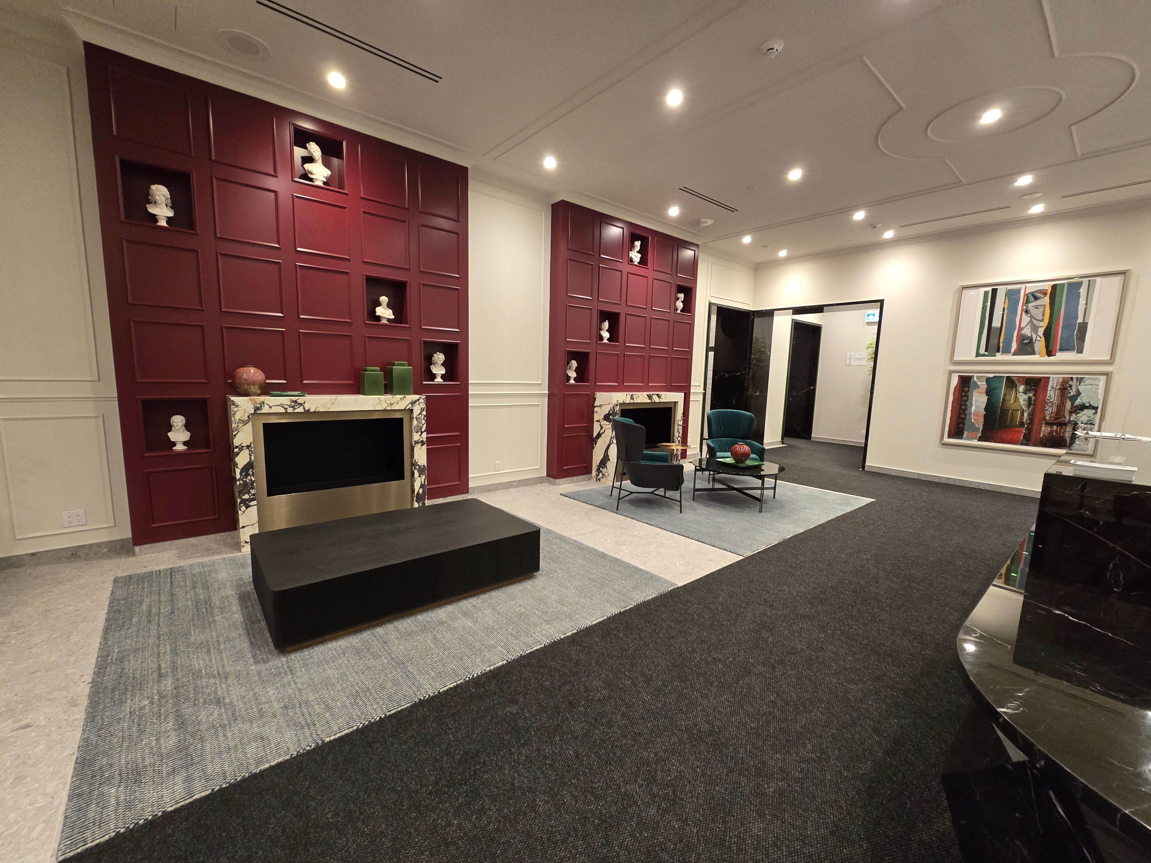 • High ceilings and floor-to-ceiling windows create an airy atmosphere.