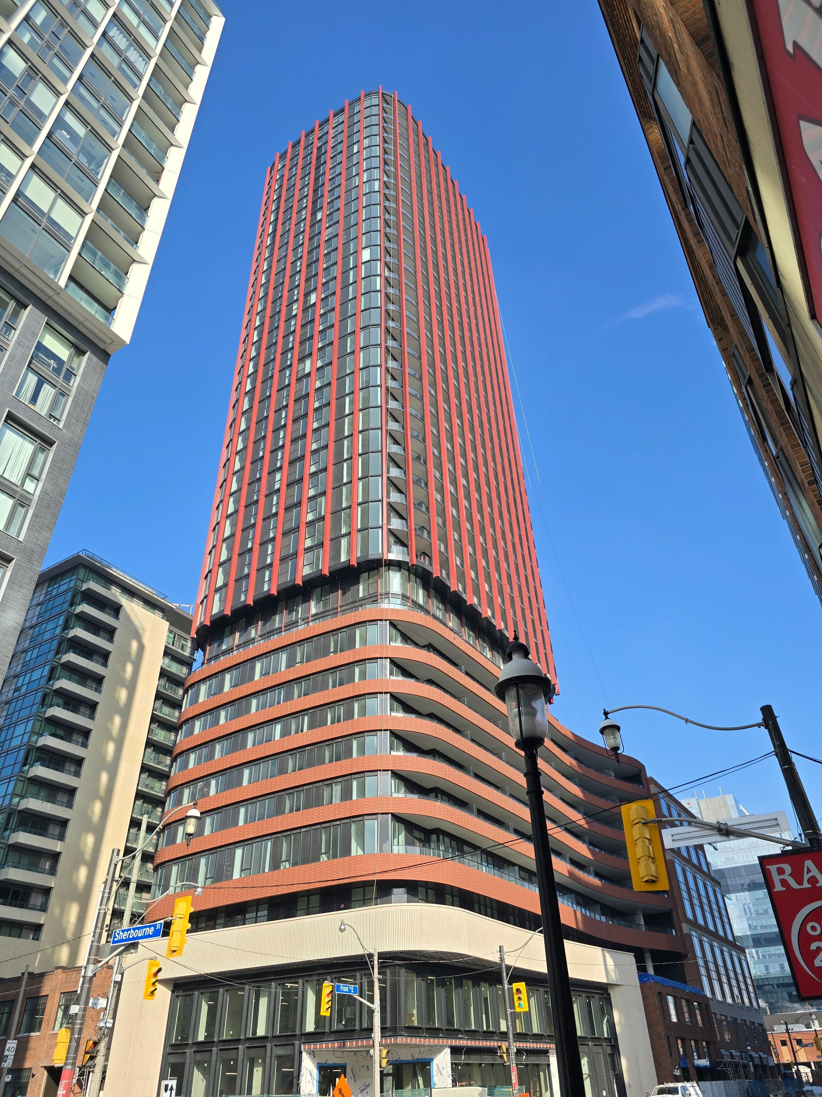 *** unobstructed views with an oversize balcony & high ceilings at the whitfield by menkes *** this special suite on a high floor offers an airy, expansive feel that sets it apart from standard units. *** thoughtfully designed with high-end finishes, floor-to-ceiling windows, and an open-concept layout that maximizes every square inch. The unobstructed views provide a stunning backdrop to a space featuring premium wide-plank flooring throughout, a sleek linear kitchen with custom two-tone cabinetry and quartz countertops, fully integrated, brand-name appliances for a seamless aesthetic. *** the location (walk score: 99 | transit score: 100): situated where toronto's industrious history meets modern luxury. You are steps from the iconic st. Lawrence market, the distillery district, and the financial district. Unrivaled transit access puts you minutes from union station, the path, and quick access to the gardiner/dvp. *** live in a brand-new landmark by menkes, offering 5-star amenities and the convenience of downtown living at an unbeatable value. *** some photos are virtually staged.