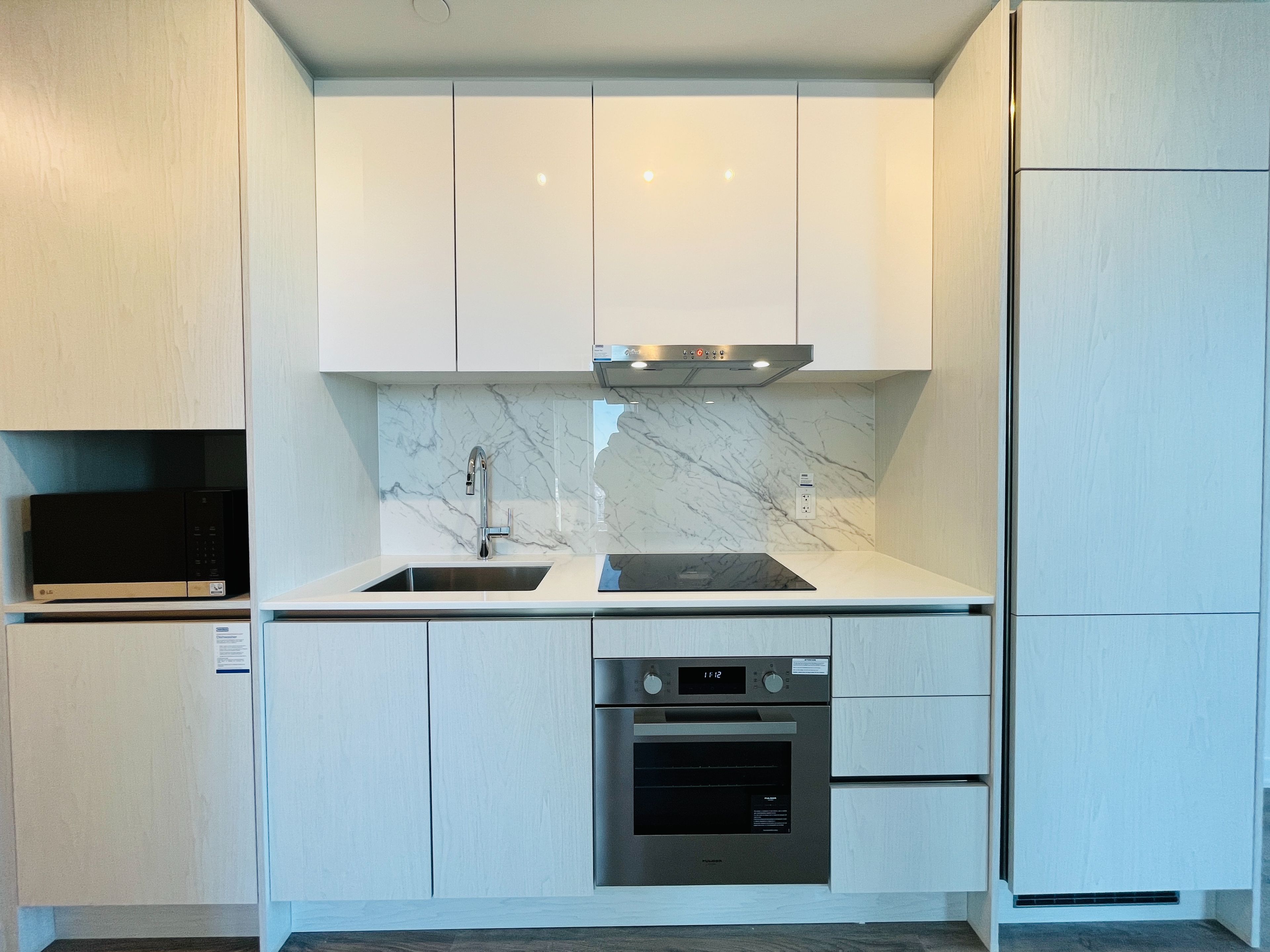 • Modern kitchen features luxury appliances and contemporary finishes.