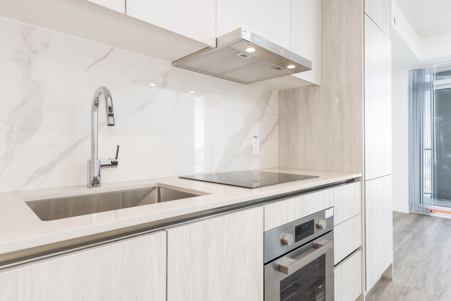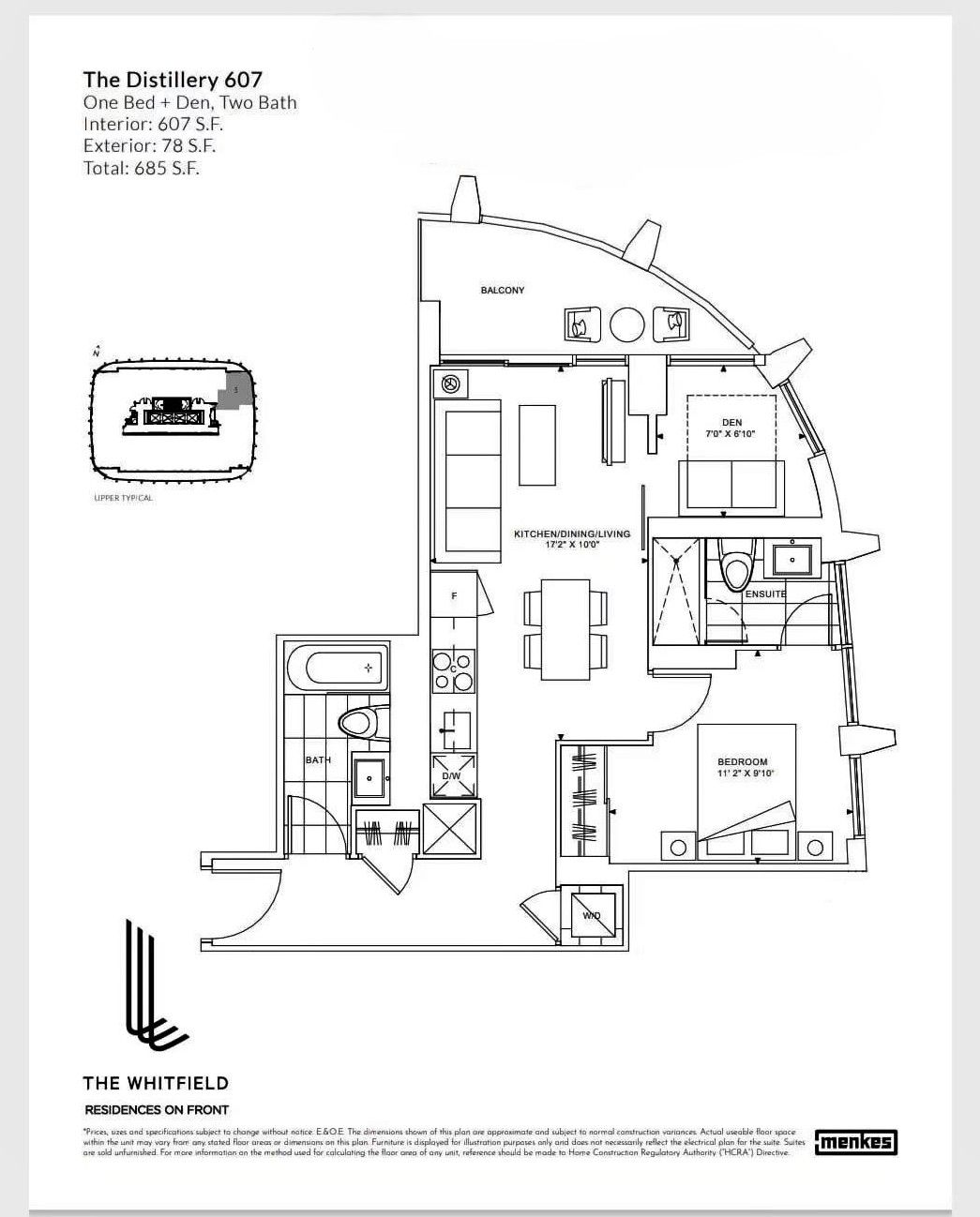 Brand-new 1 bed + den, 2 full bath suite in a stunning, high-end building by menkes. Over 600 sqft. Of functional interior living space, plus additional outdoor space on an open balcony. Floor-to-ceiling windows all around, offering an abundance of natural sunlight and sweeping city/lake views to the east. Primary bedroom features ensuite bathroom. Separate den with sliding door and windows, suitable for home office or hosting guests. Prime walkable location in old town toronto, convenient access to transit, grocery stores, cafes and restaurants, st. Lawrence market, distillery district, sugar beach, and more! Exceptional building amenities opening soon!