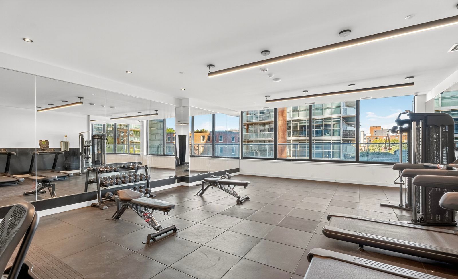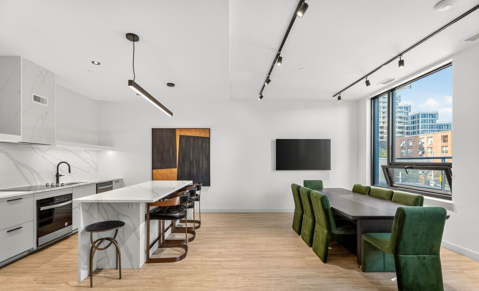 • Bright open-concept layout with large windows and in-unit laundry.