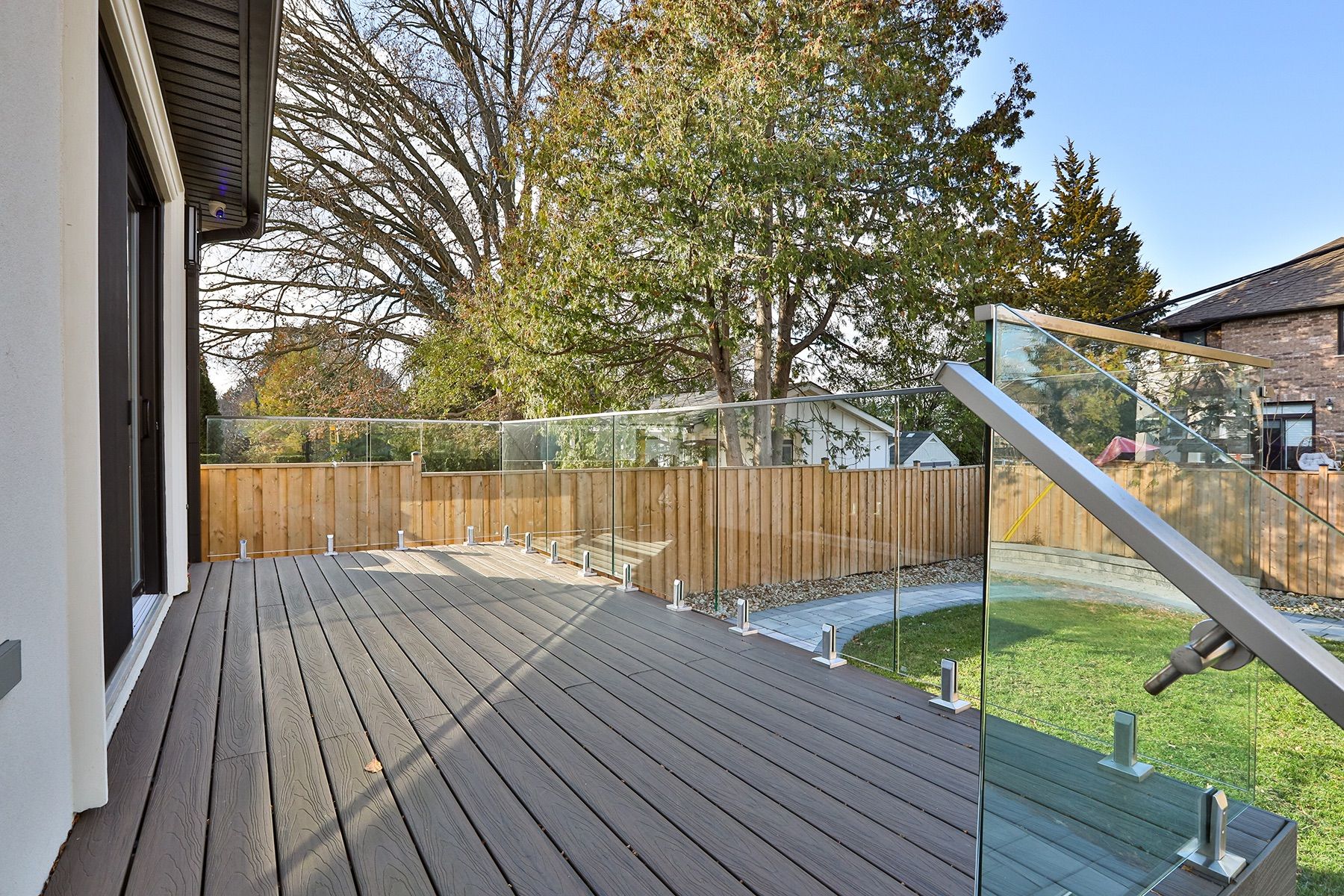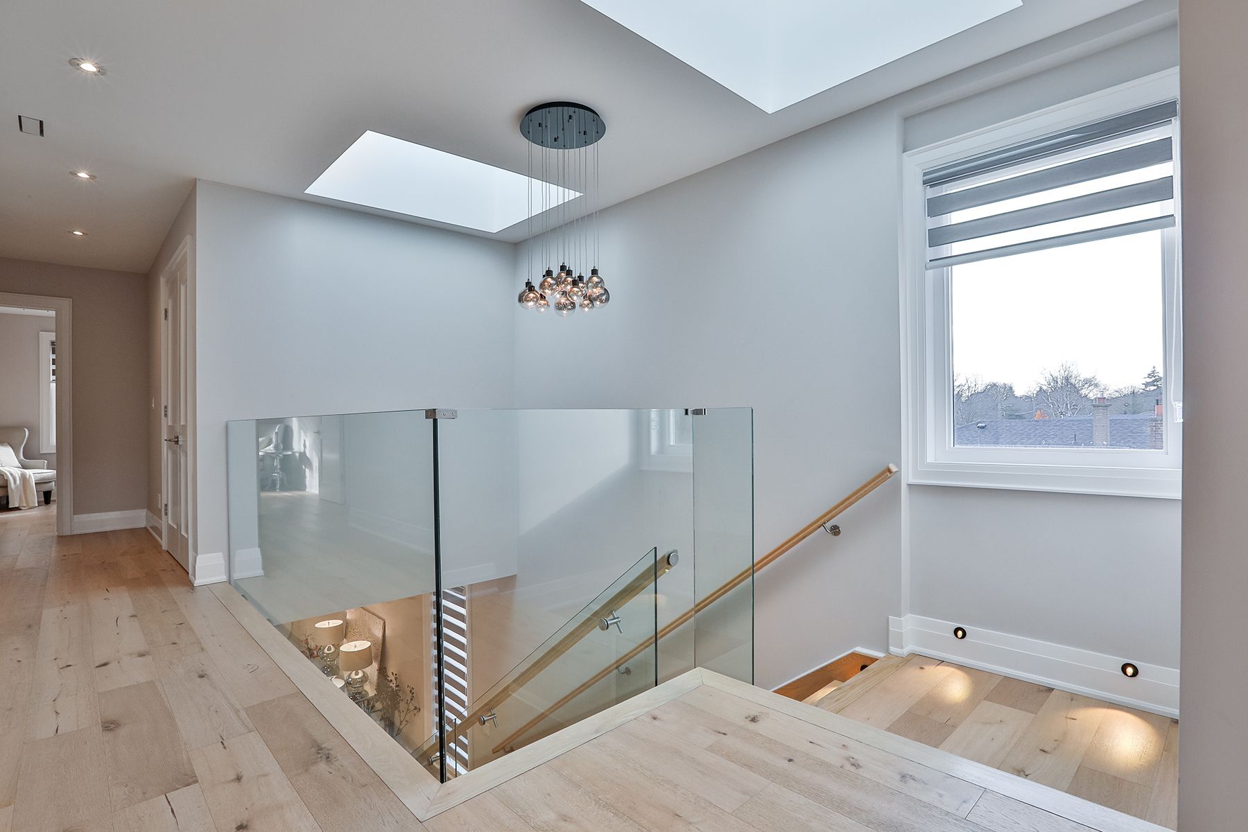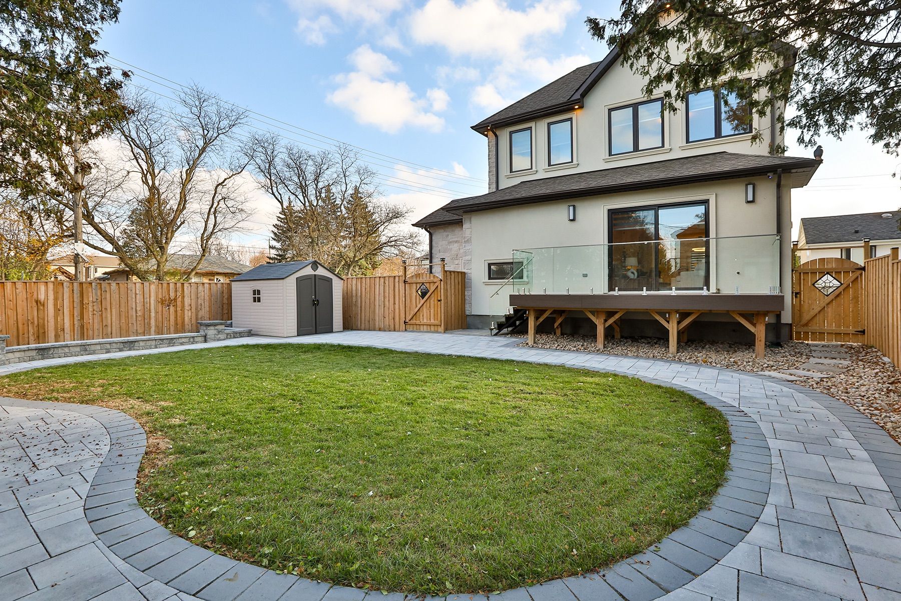 Contemporary sun filled custom built 4100 sq feet home located strategically on a prime corner. This gorgeous home features stone elevation, interlock driveway, security cameras, engineered hardwood flrs, jennair profile appliances, 10' ceiling on main, chef kitchen, b/i speakers, pot lights, glass railing, pot filler, mud room/pet wash, imported tiles & electric light fixtures, 2 fireplaces, heated fl in bsmt and master ensuite, multiple skylights with natural light, enhancing its open, airy feel, 2 furnaces, 2 ac's, lush backyard. Legal bsmt apartment with heated floor.