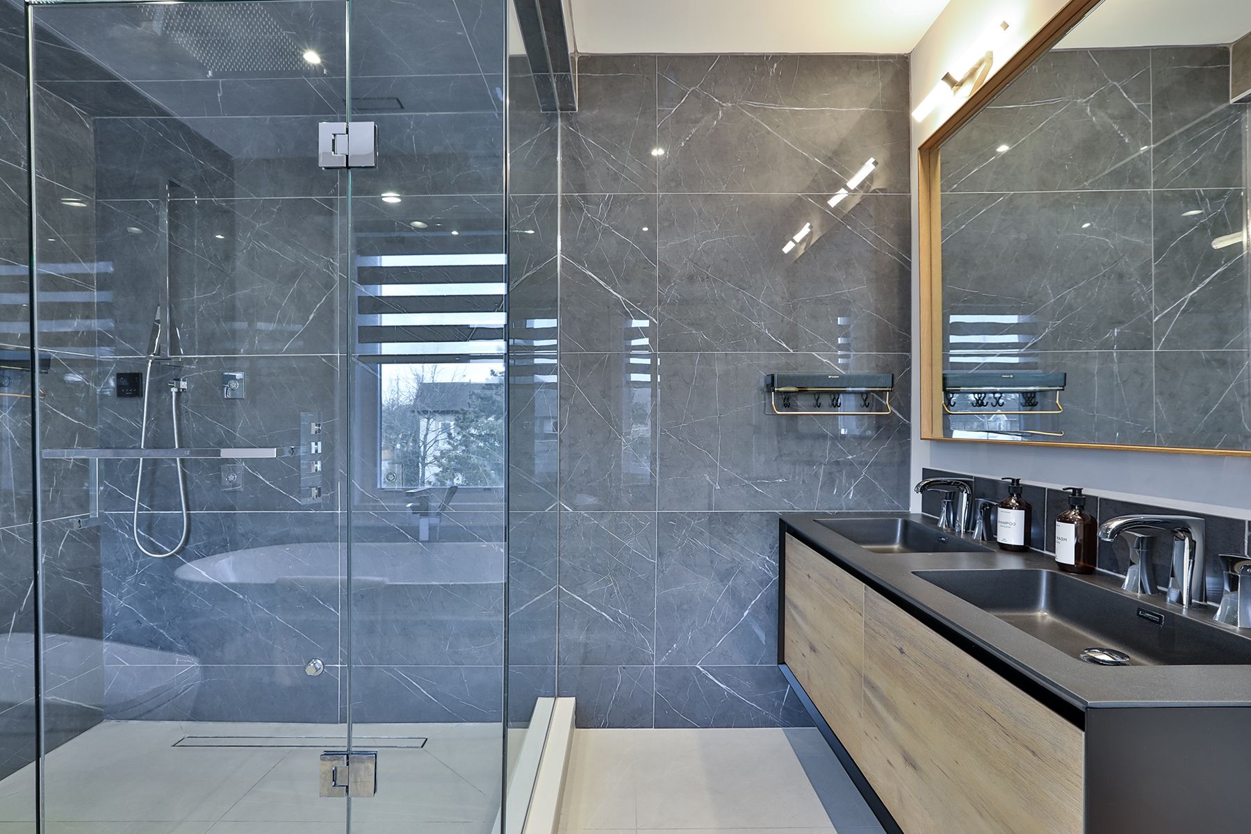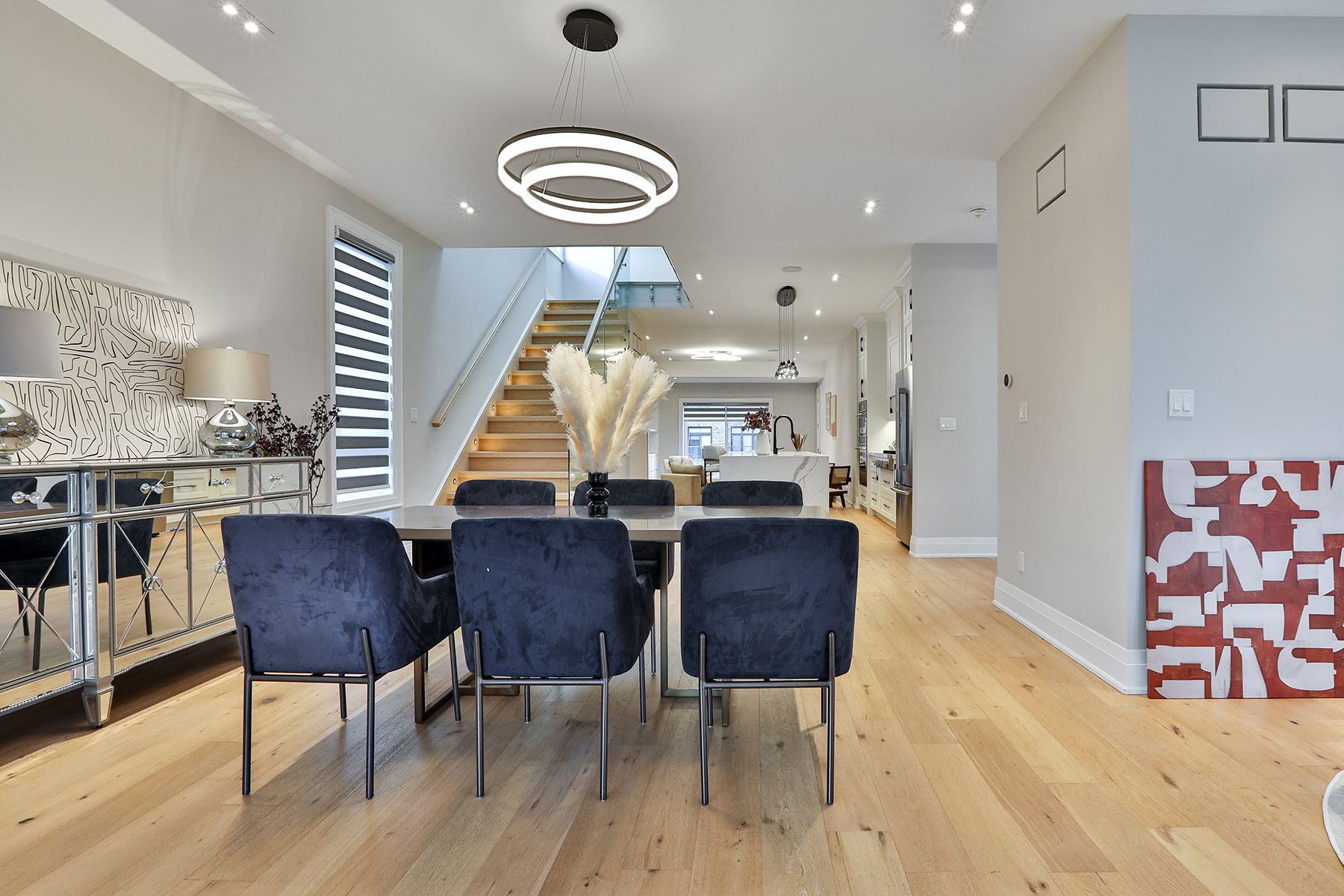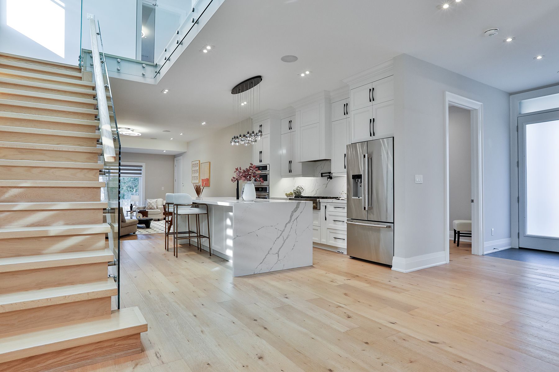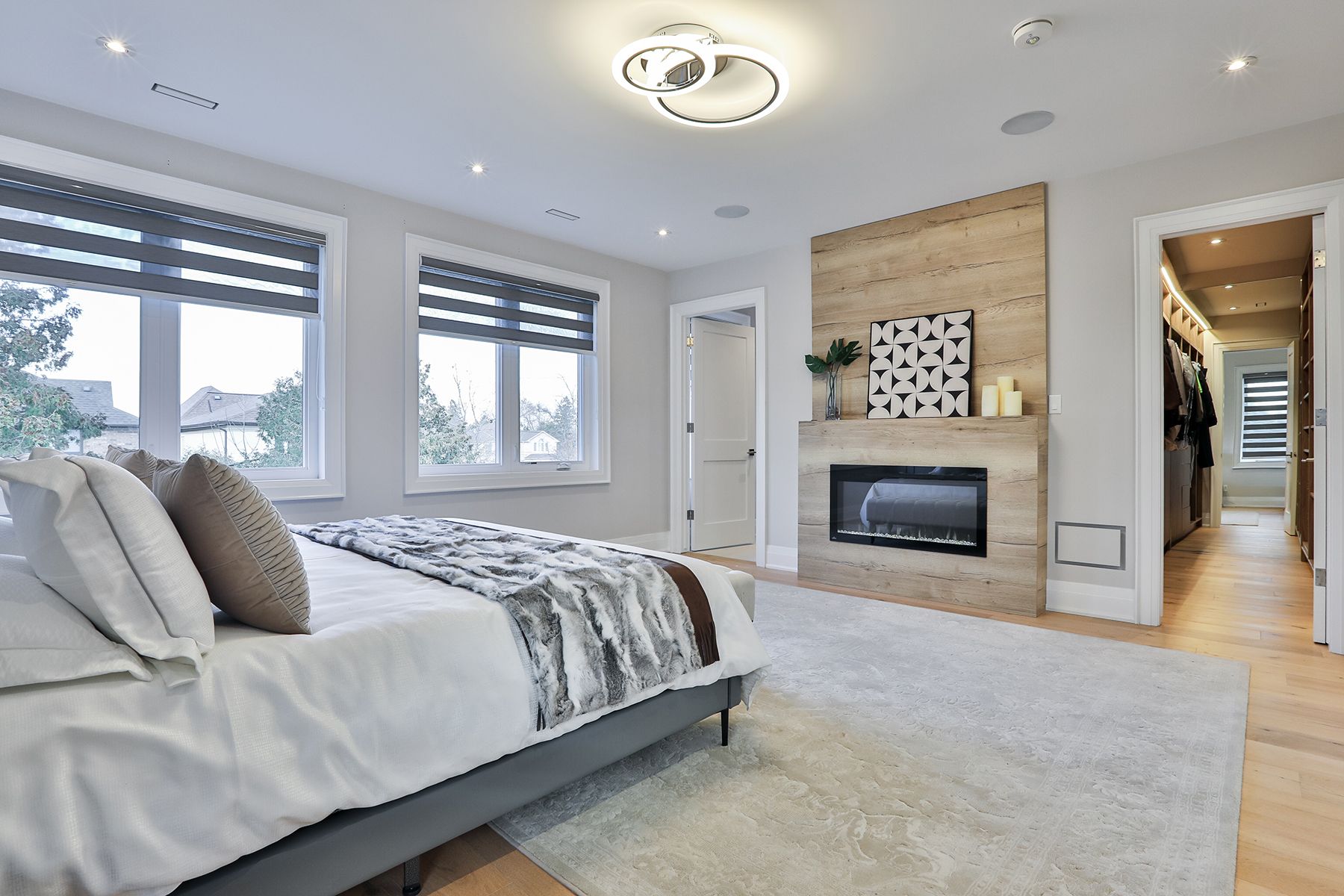 Contemporary sun filled custom built 4100 sq feet home located strategically on a prime corner. This gorgeous home features stone elevation, interlock driveway, security cameras, engineered hardwood flrs, jennair profile appliances, 10' ceiling on main, chef kitchen, b/i speakers, pot lights, glass railing, pot filler, mud room/pet wash, imported tiles & electric light fixtures, 2 fireplaces, heated fl in bsmt and master ensuite, multiple skylights with natural light, enhancing its open, airy feel, 2 furnaces, 2 ac's, lush backyard. Legal bsmt apartment with heated floor.