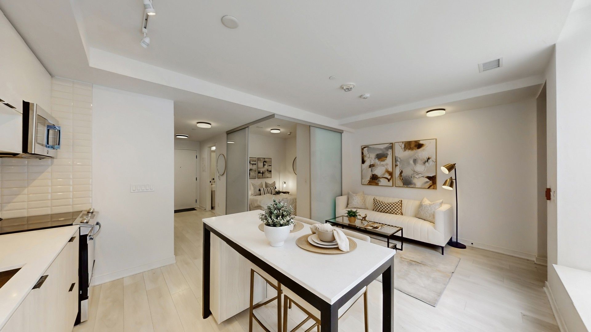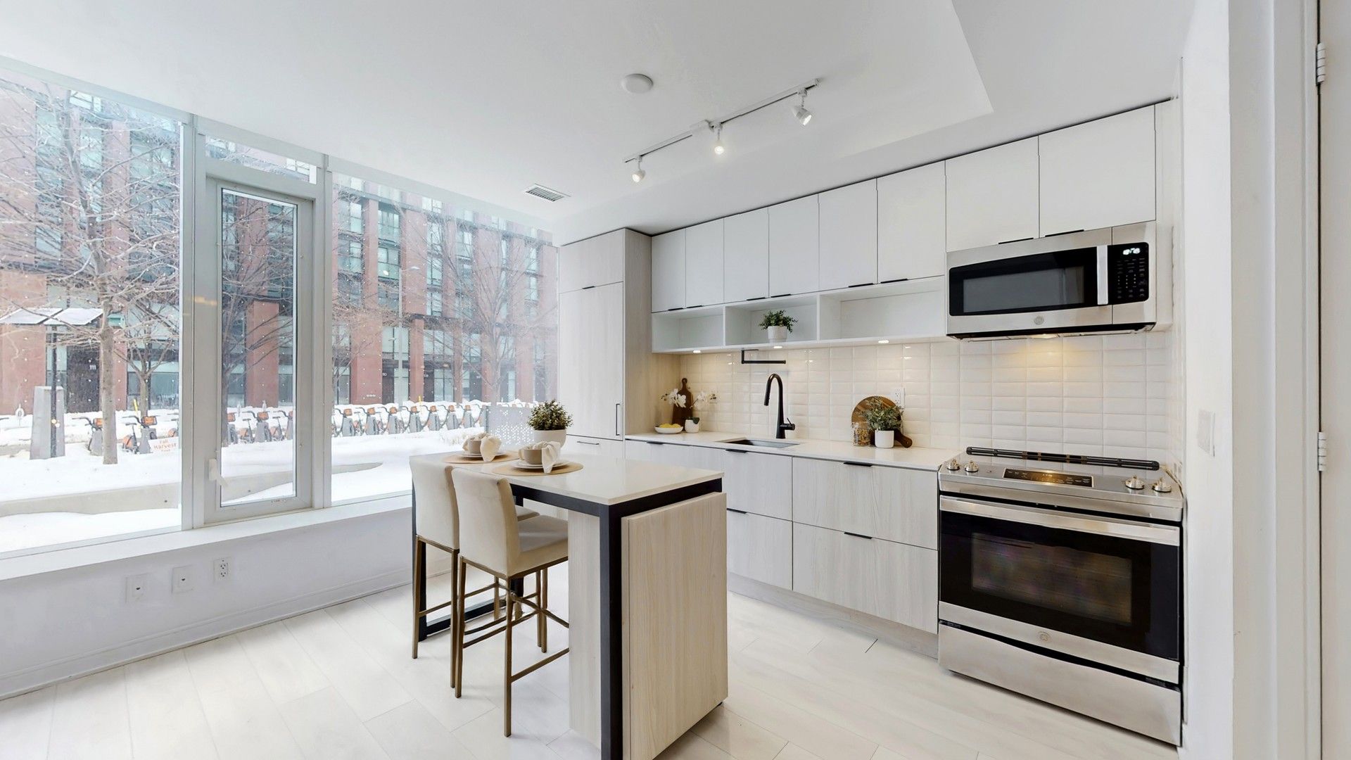 Welcome to canary commons, where contemporary design meets community living in toronto's vibrant canary district. This sun-filled south-facing 3-bedroom + den, 3-bathroom townhouse offers a spacious, modern layout perfect for urban families or professionals seeking extra room to grow. The main level features light oak flooring, an open-concept living and dining area, and a modern kitchen with full-sized built-in stainless steel appliances, quartz countertops, and a breakfast bar-ideal for both cooking and entertaining. Upstairs, three well-proportioned bedrooms provide privacy and comfort, including a serene primary suite with ample storage. The separate den offers additional versatility as a home office or study space. Enjoy street-level access with a private terrace, creating the perfect indoor-outdoor flow for morning coffee or evening relaxation. Residents benefit from exceptional building amenities, including a fitness centre, yoga studio, party room, rooftop terrace with bbqs, co-working lounge, and concierge service. Steps from the distillery district, corktown commons park, st. Lawrence market, shops, cafés, and ttc transit, this townhouse delivers the best of downtown convenience in a peaceful, community-oriented setting.