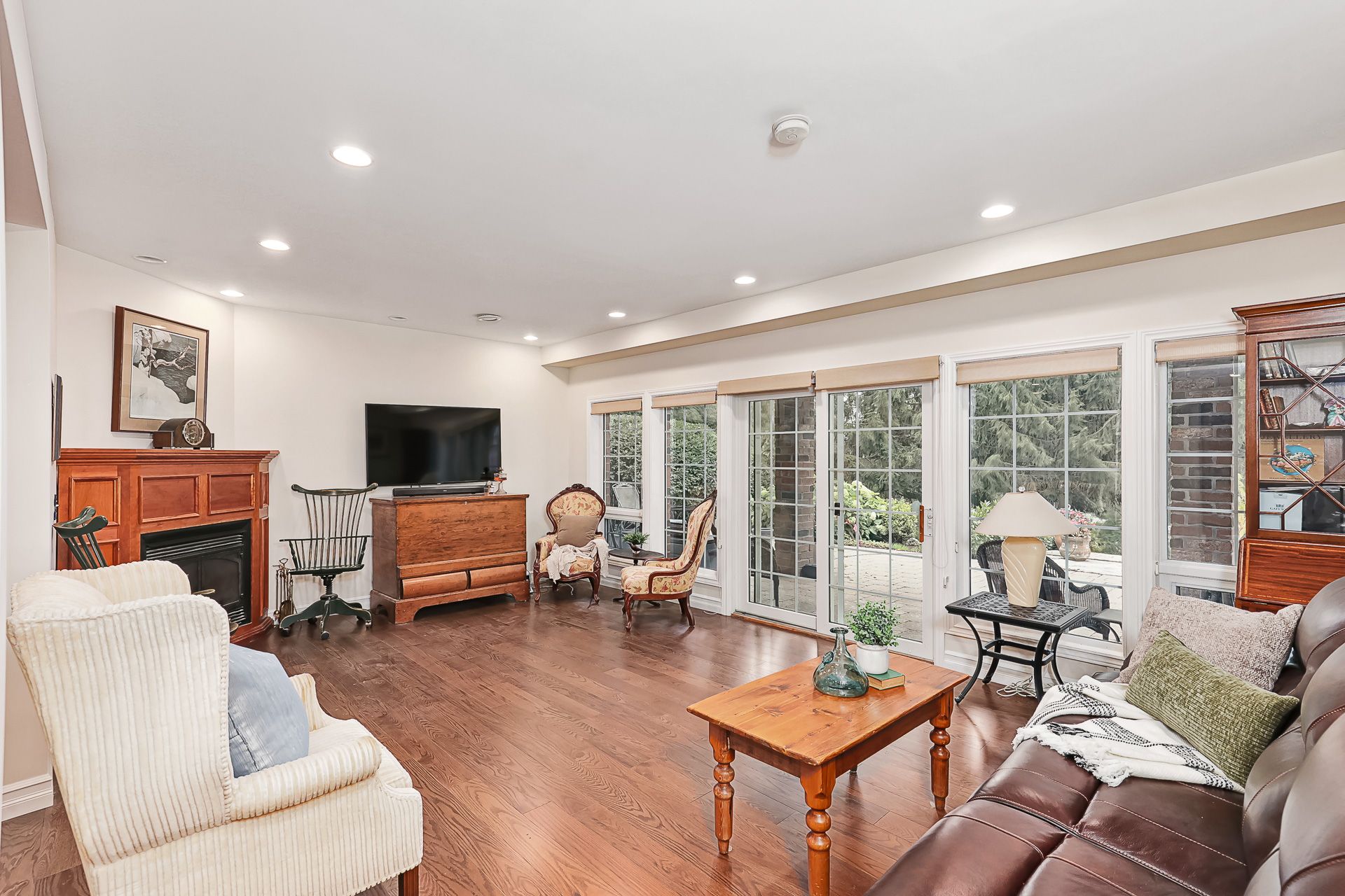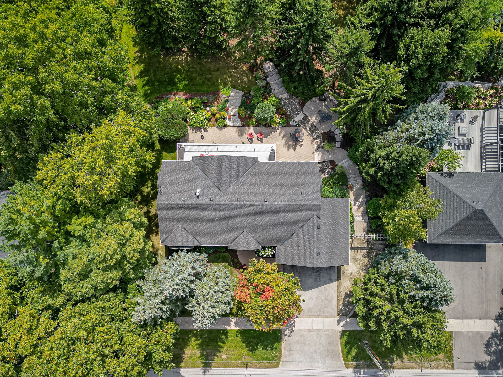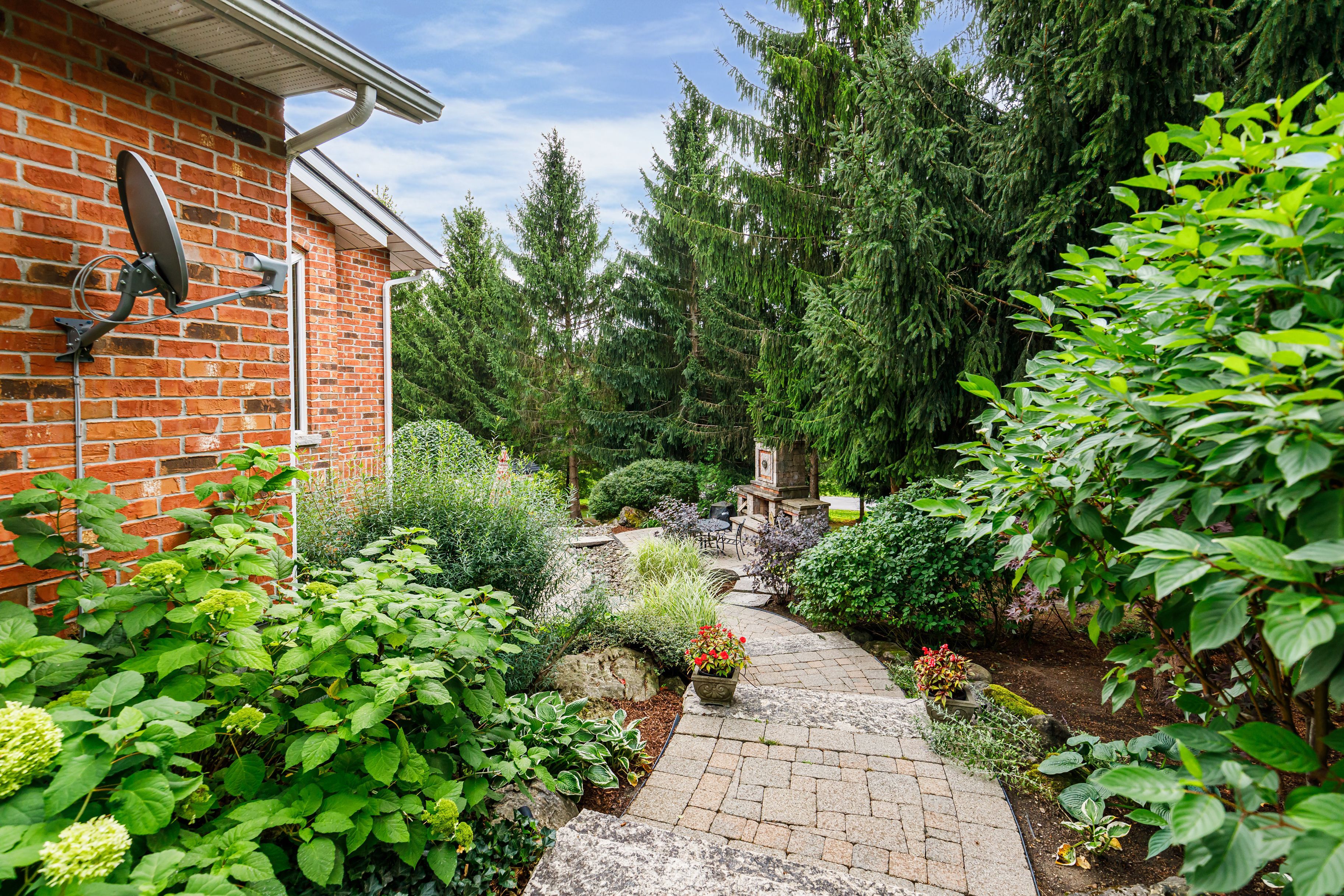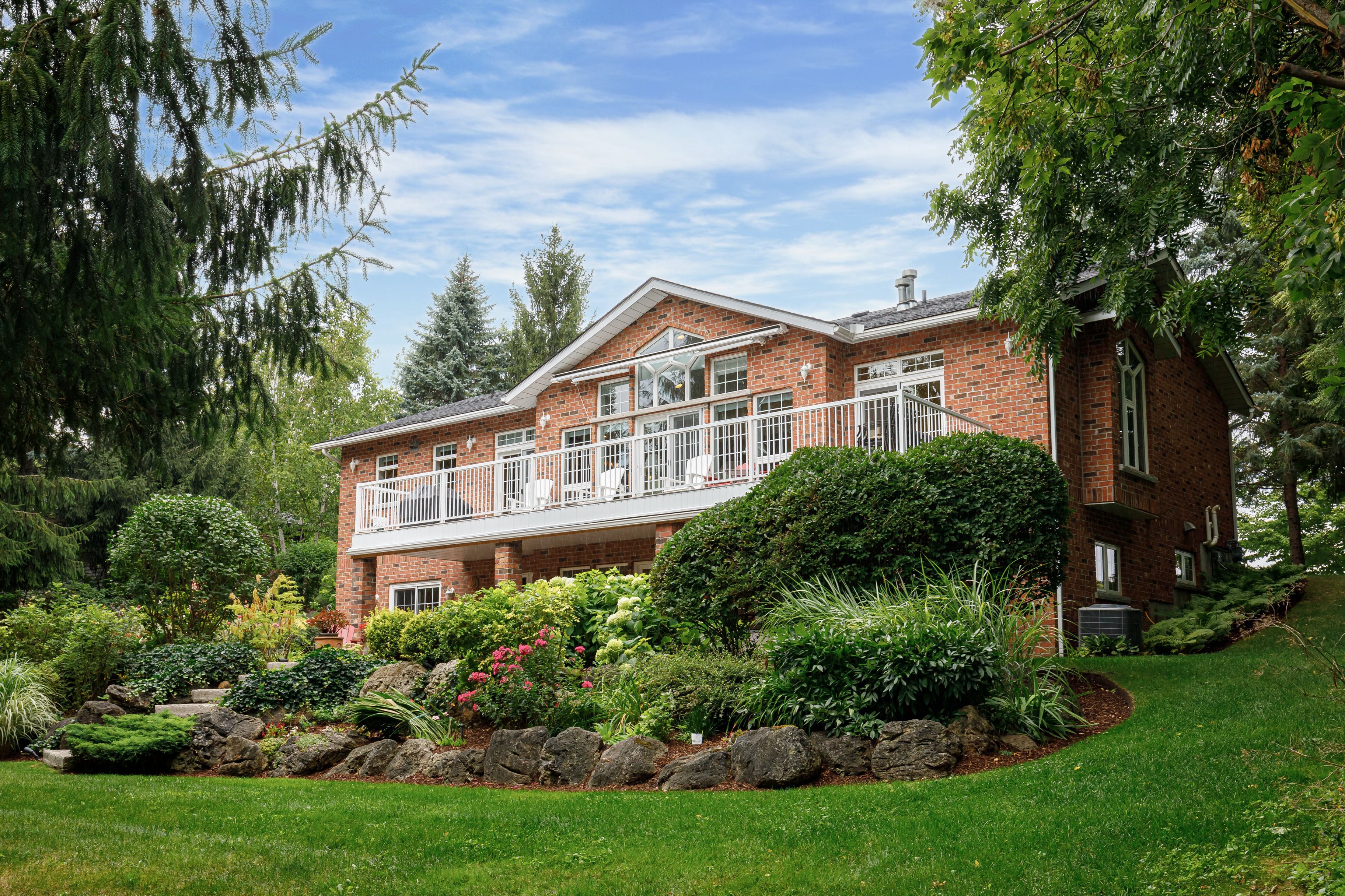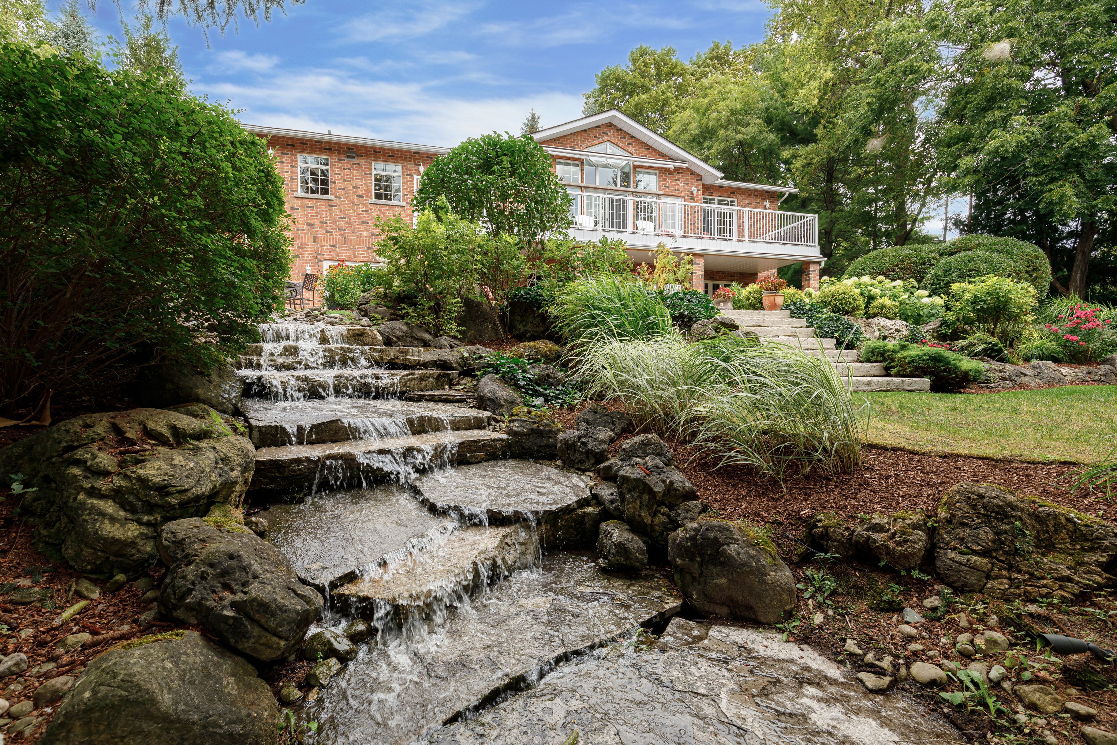 Welcome to 180 russell, an exceptional brick residence that blends privacy, elegance, and outstanding outdoor living. Set on a rolling, professionally landscaped lot, the property is framed by stone walkways, soldier stone detailing along the driveway, and a stamped concrete entry, creating striking curb appeal from the moment you arrive. Designed for year-round enjoyment, the backyard is a true retreat, featuring a tranquil waterfall, outdoor fireplace, expansive deck, covered patios, and a walk-out lower level-perfect for effortless entertaining and relaxed outdoor living. Inside, the main level offers a bright, open-concept layout where the kitchen, dining, and living areas flow seamlessly together. Large sliding doors extend the living space to a generous deck overlooking the private, serene yard. The primary suite is a private haven with his-and-hers closets and a spa-inspired ensuite with heated floors. A flexible office or den, a full bathroom, convenient laundry, and direct garage access complete the main floor. The fully finished lower level is ideal for hosting and extended family, featuring a spacious family room with gas fireplace, three additional bedrooms, a full bath, and a two-piece bath. Radiant in-floor heating ensures year-round comfort, while the thoughtfully designed second kitchen-equipped with a cooktop, sink, dishwasher, bar fridge, and beverage fridge-enhances both indoor and outdoor entertaining. With its own walk-outs, bedrooms, bathrooms, and kitchen, this level also offers excellent potential for a private in-law suite. Additional highlights include a covered front porch, a two-car garage with inside entry, beautifully curated landscaping, and a wi-fi-enabled smart irrigation system for easy lawn and garden maintenance. With its exceptional outdoor spaces, generous interior layout, and peaceful setting, 180 russell delivers the perfect balance of comfort, functionality, and refined living.