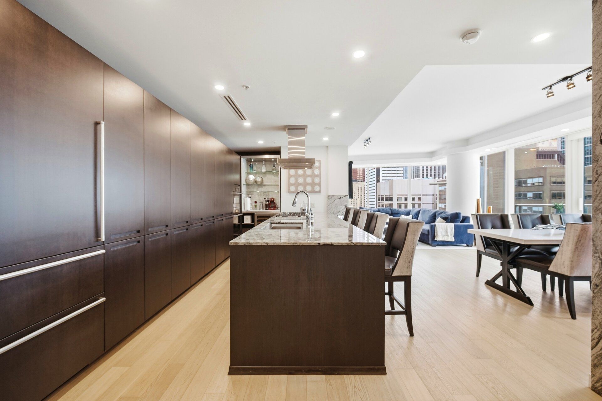 • Custom kitchen with premium appliances and a built-in bar for entertaining.