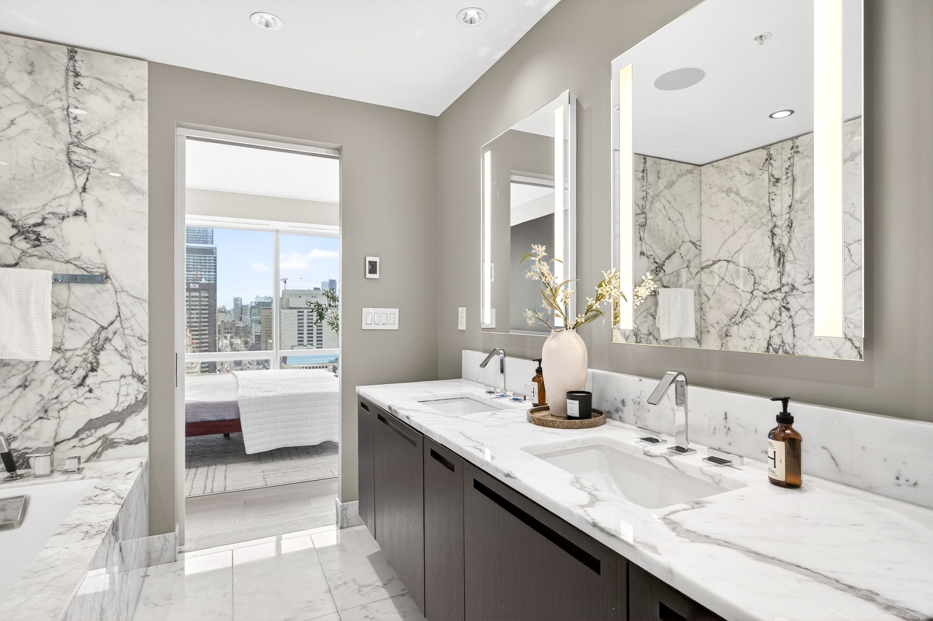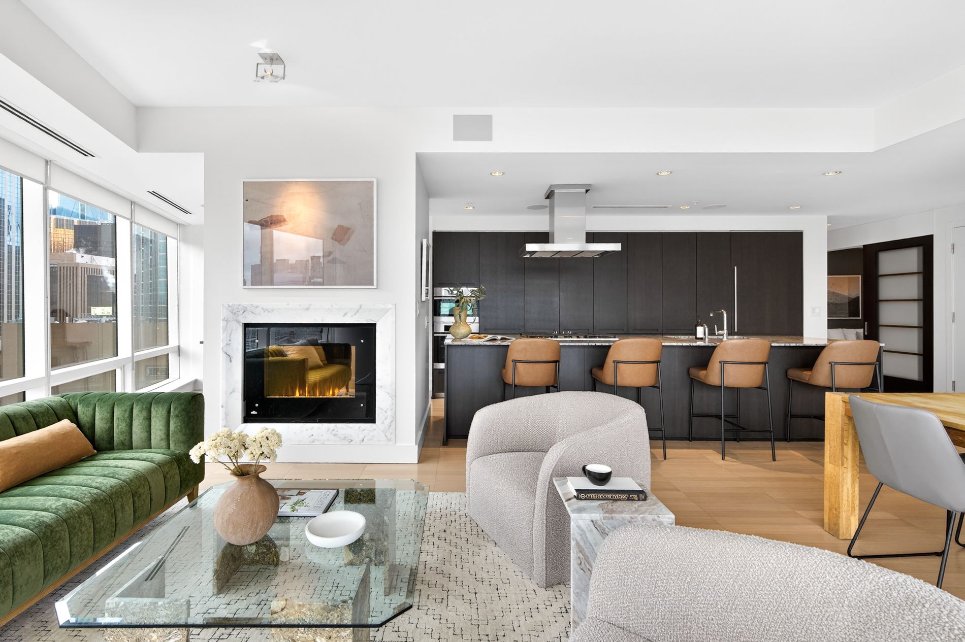 • Breathtaking north-facing views from floor-to-ceiling wraparound windows.