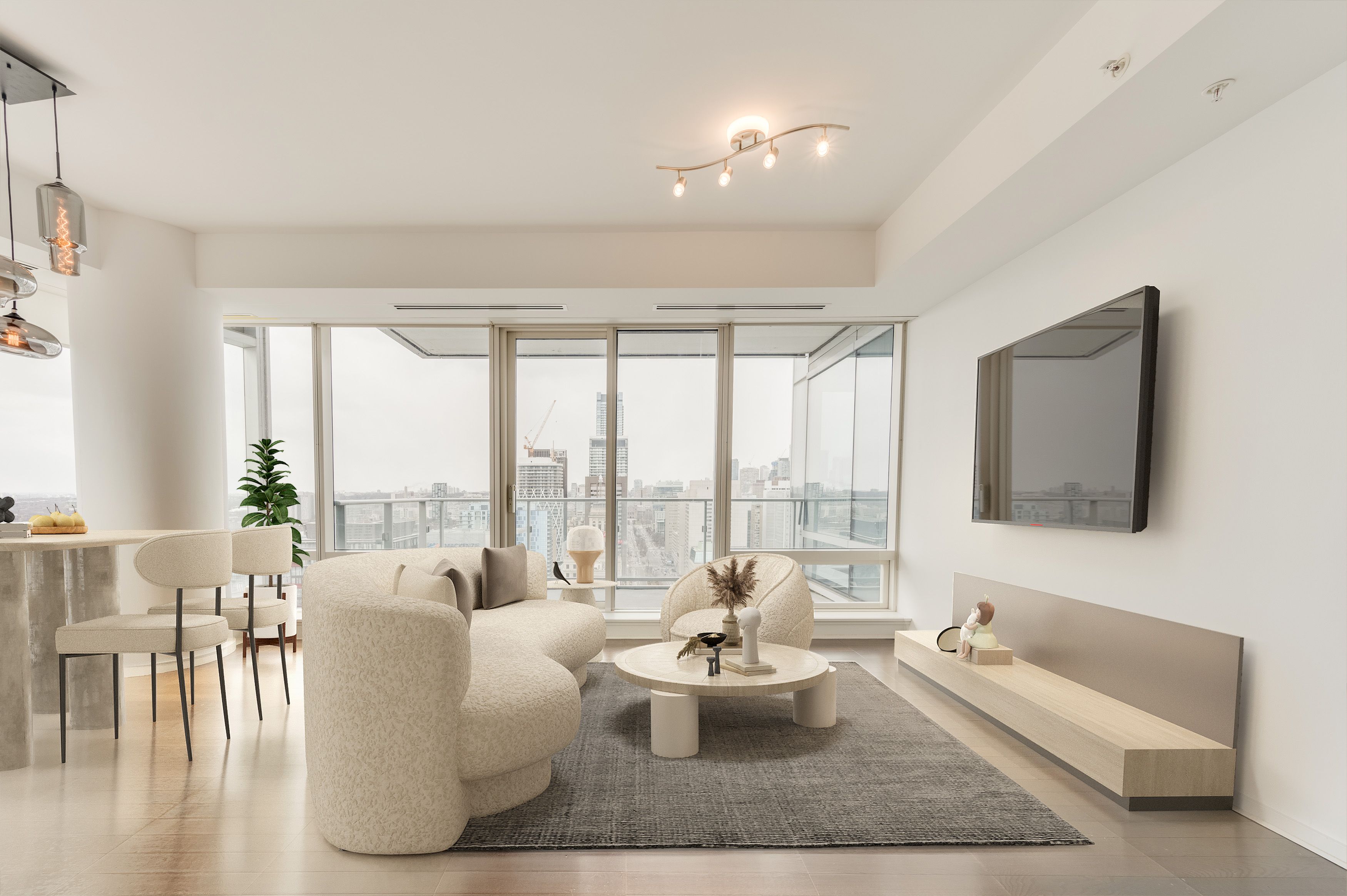 • Bright, open-concept living space with floor-to-ceiling windows.