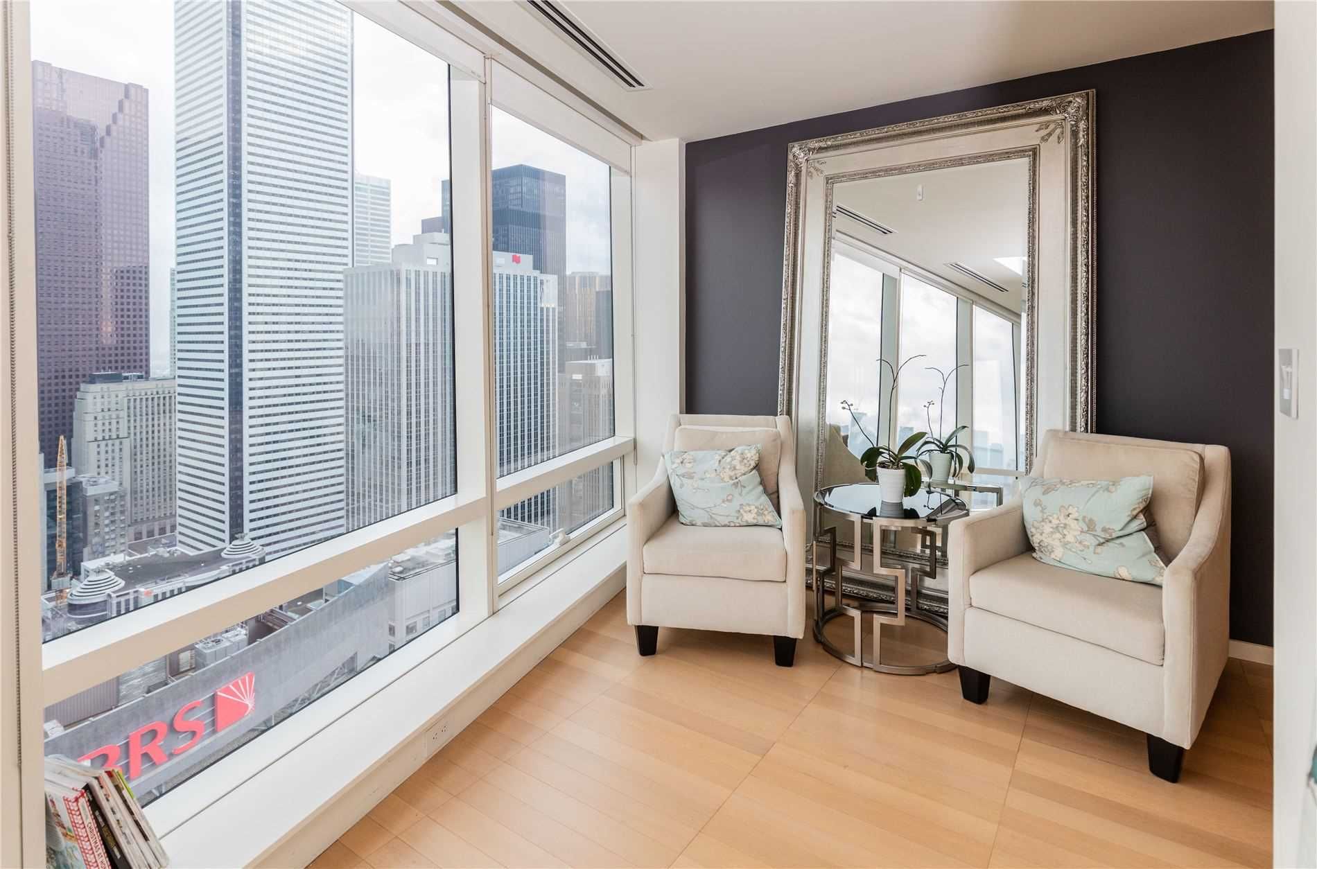 Fantastic clear views with luxury furniture ready for moving-in! See this spectacular 2bedroom+family room n/e corner unit in shangri-la toronto. This unit features hardwood floors, an amazing large kitchen island perfect to entertain. A large master suite with 5pc ensuite and oversized walk-in closet. Get cozy with the large built in fireplace or sit out on the balcony and enjoy the sunset & views. Great location close to everything!