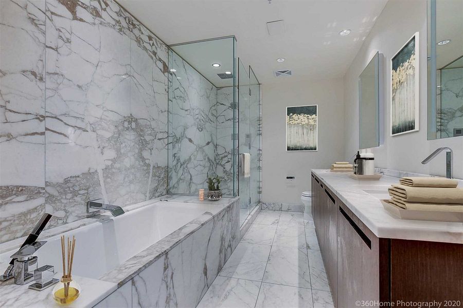 • High-end finishes with hardwood, marble, and granite countertops.