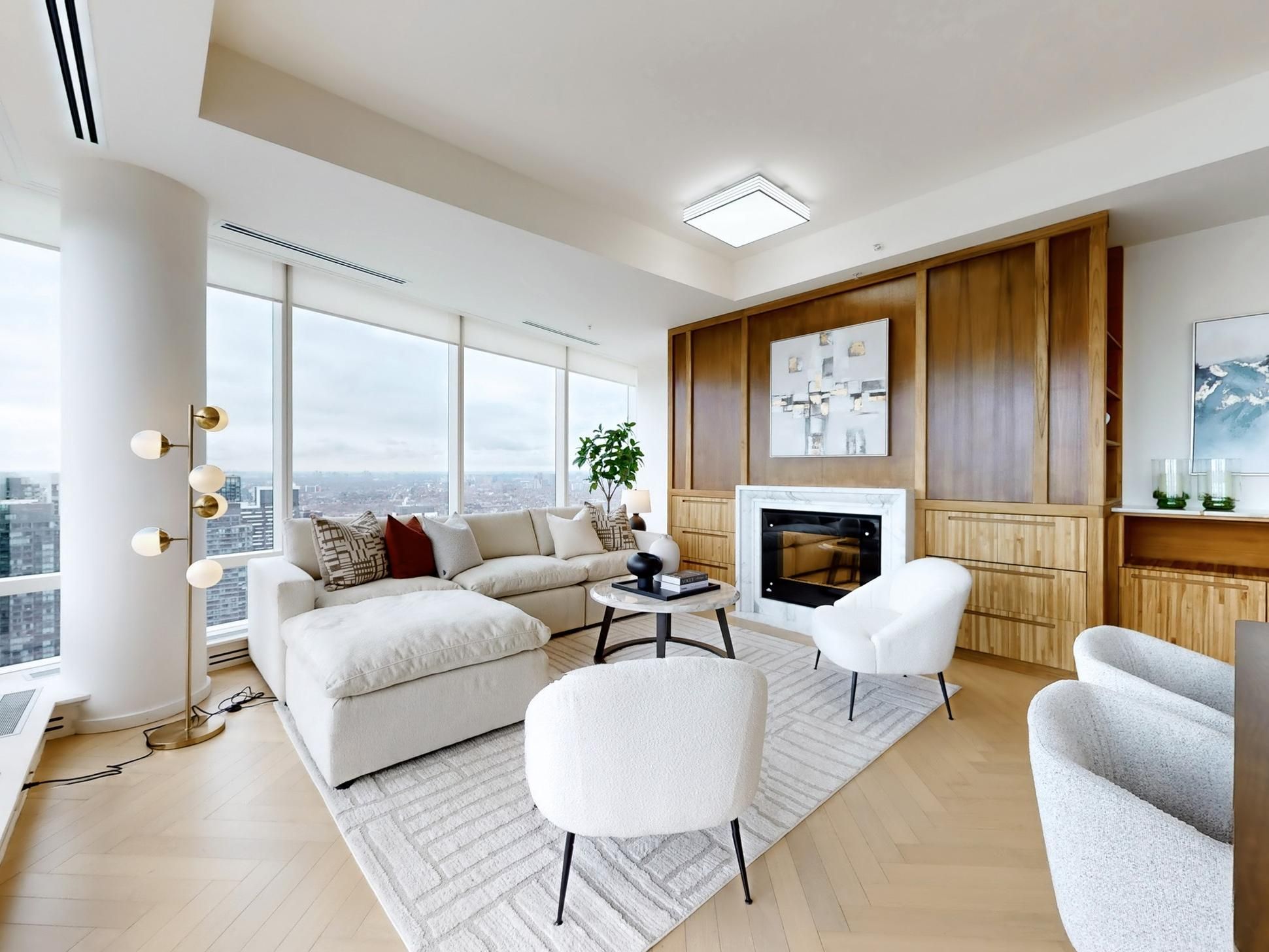 "private estate" above 5-star shangri-la hotel, rarely available, shangri la private estates with south west panoramic views of the entire city. 1,972 sq ft of ultra luxurious living in the heart of toronto. 10 ft ceilings with floor-to-ceiling windows. 2 separate bedroom wings, spacious master suite with large w/i closet, marble walled 5pc ensuite, heated floor bathrm! Wood floor throughout, italian boffi kitchen and washrooms, sub-zero fridge, miele coffee maker, motorized window shades throughout, fabulous entertaining space with city! 2 car private garage with room for storage!