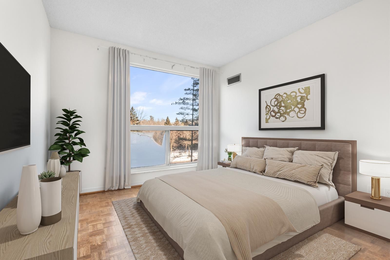 • Spacious 1690 sq. ft. corner suite overlooking greenbelt and walking trail.