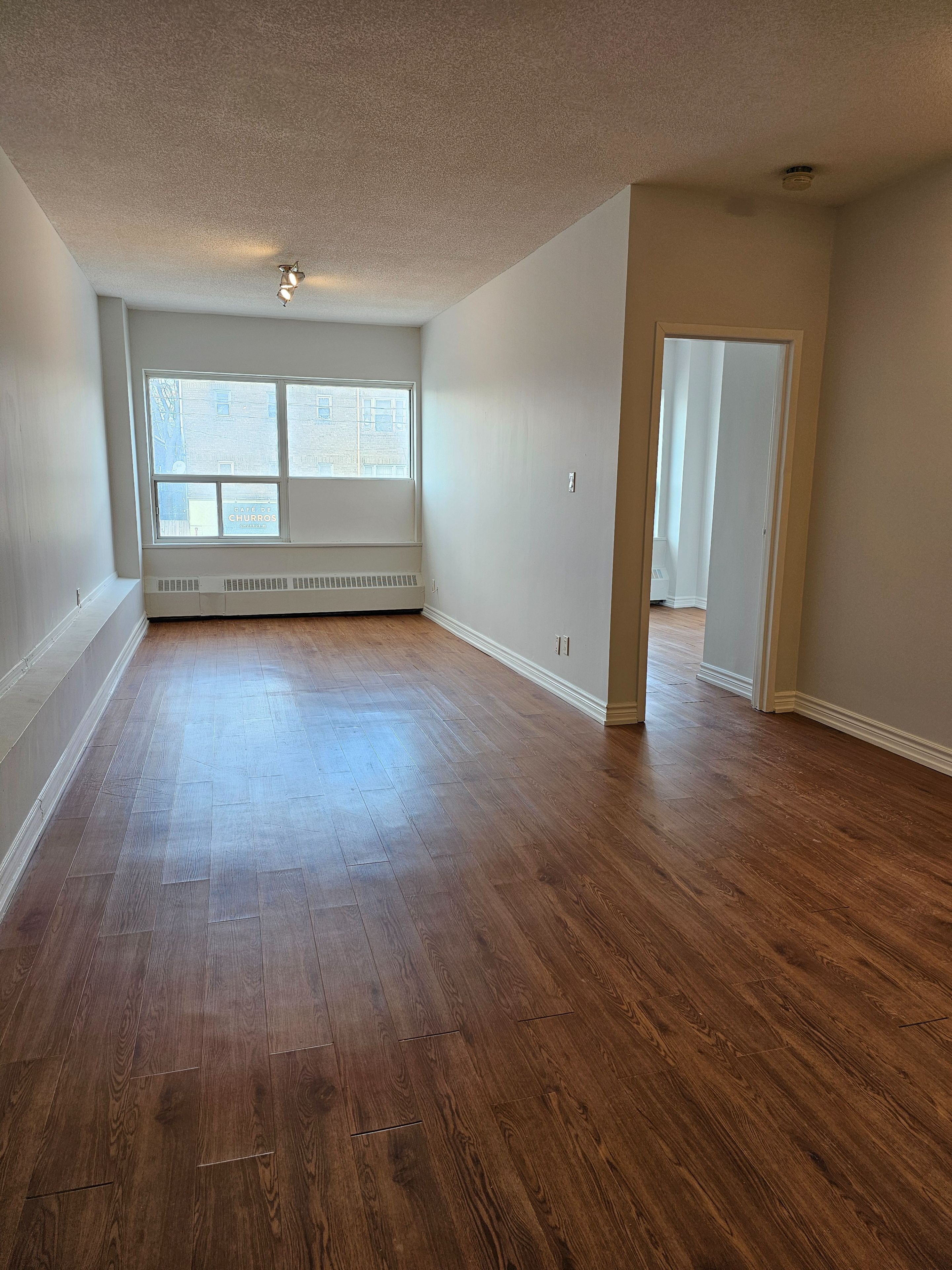 • Spacious 1 bedroom apartment with high ceilings and large windows for natural light.