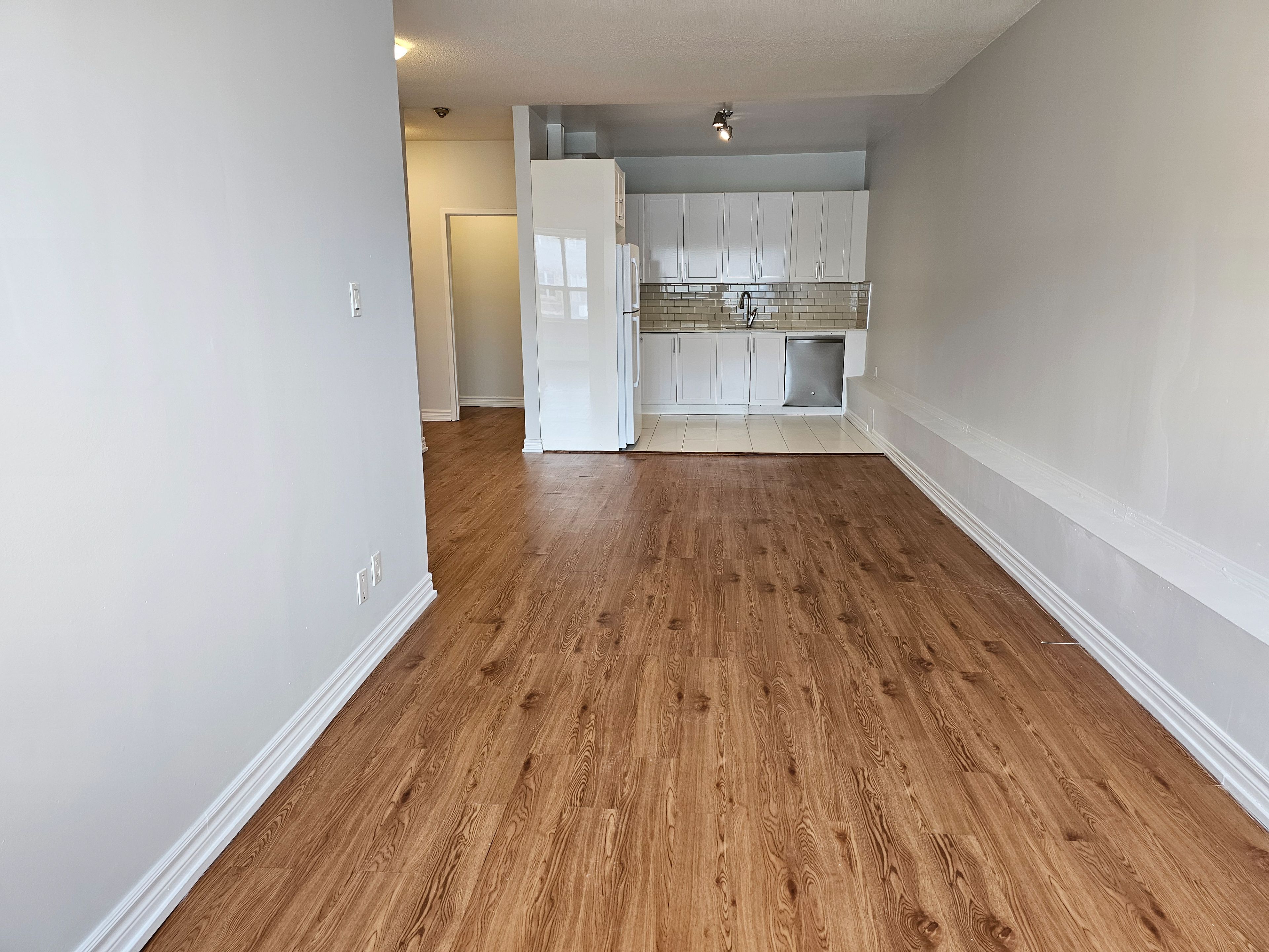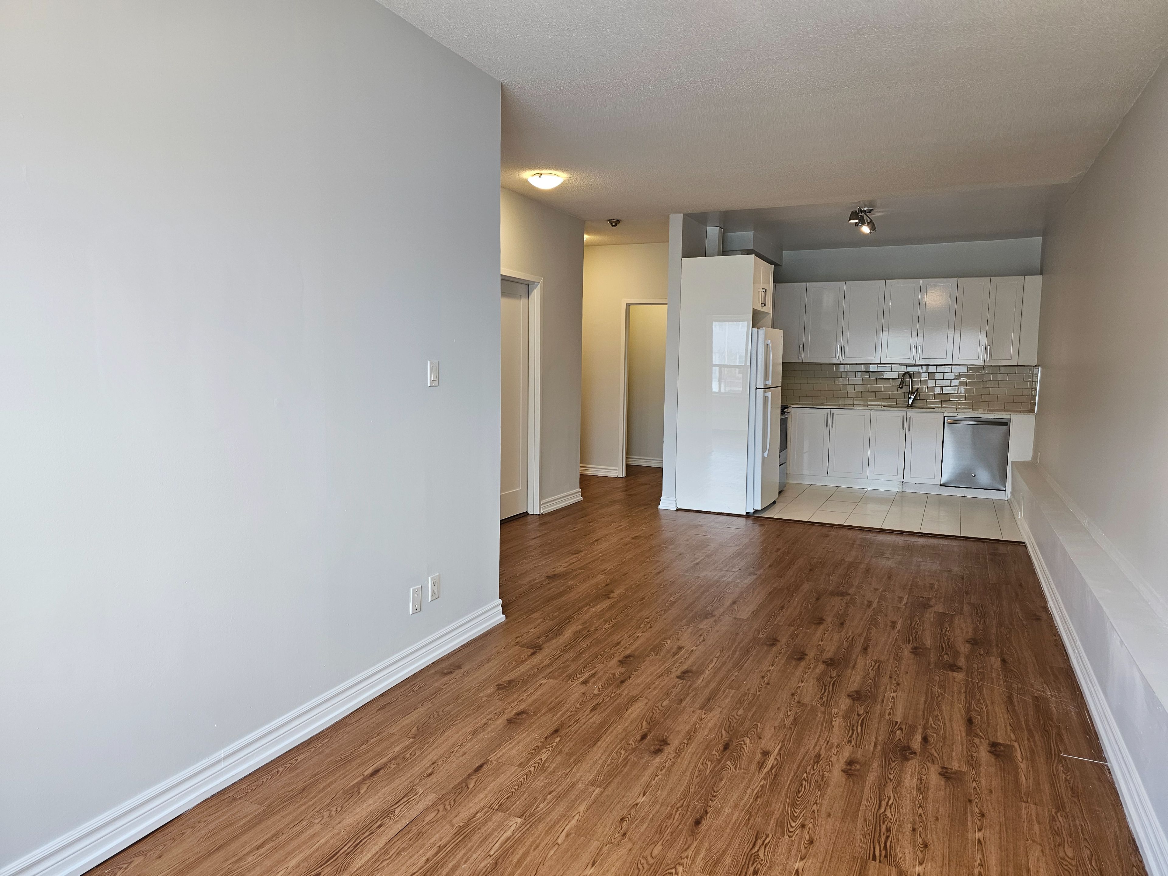 This spacious 1 bedroom apartment boasts high ceilings and large windows for natural lighting. This unit is 754 sq ft and has been painted throughout. The kitchen includes stainless steel appliances, granite counter, and newer kitchen cabinets. The bathroom has been upgraded with a new vanity and mirror. The foyer boasts 2 large closets with one being a walk in storage closet. Located in a great area, it is steps to ttc, shopping, grocery, restaurants, library, etc. Includes heat and water. Hydro extra. Coin operated laundry on same floor. Pet friendly.