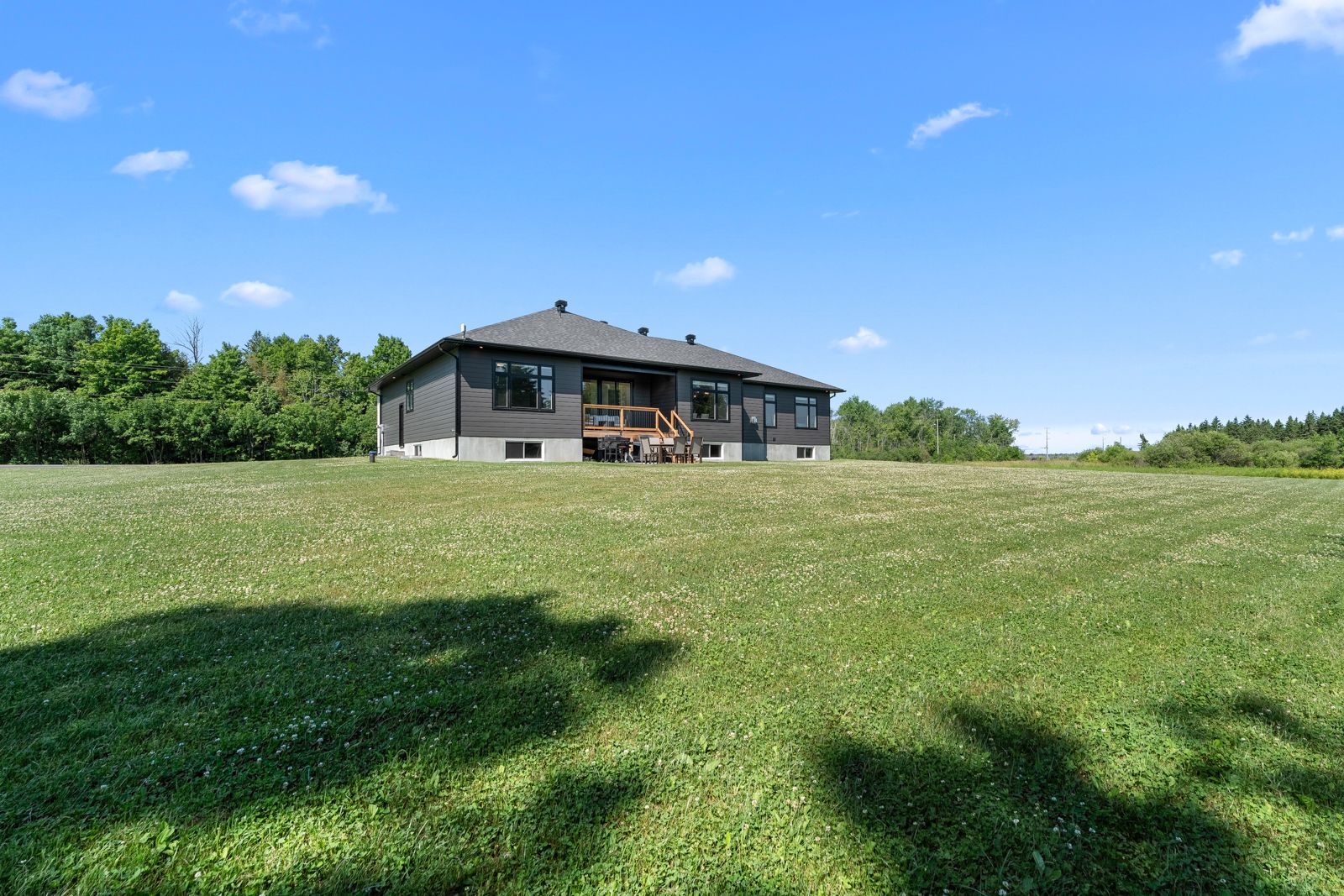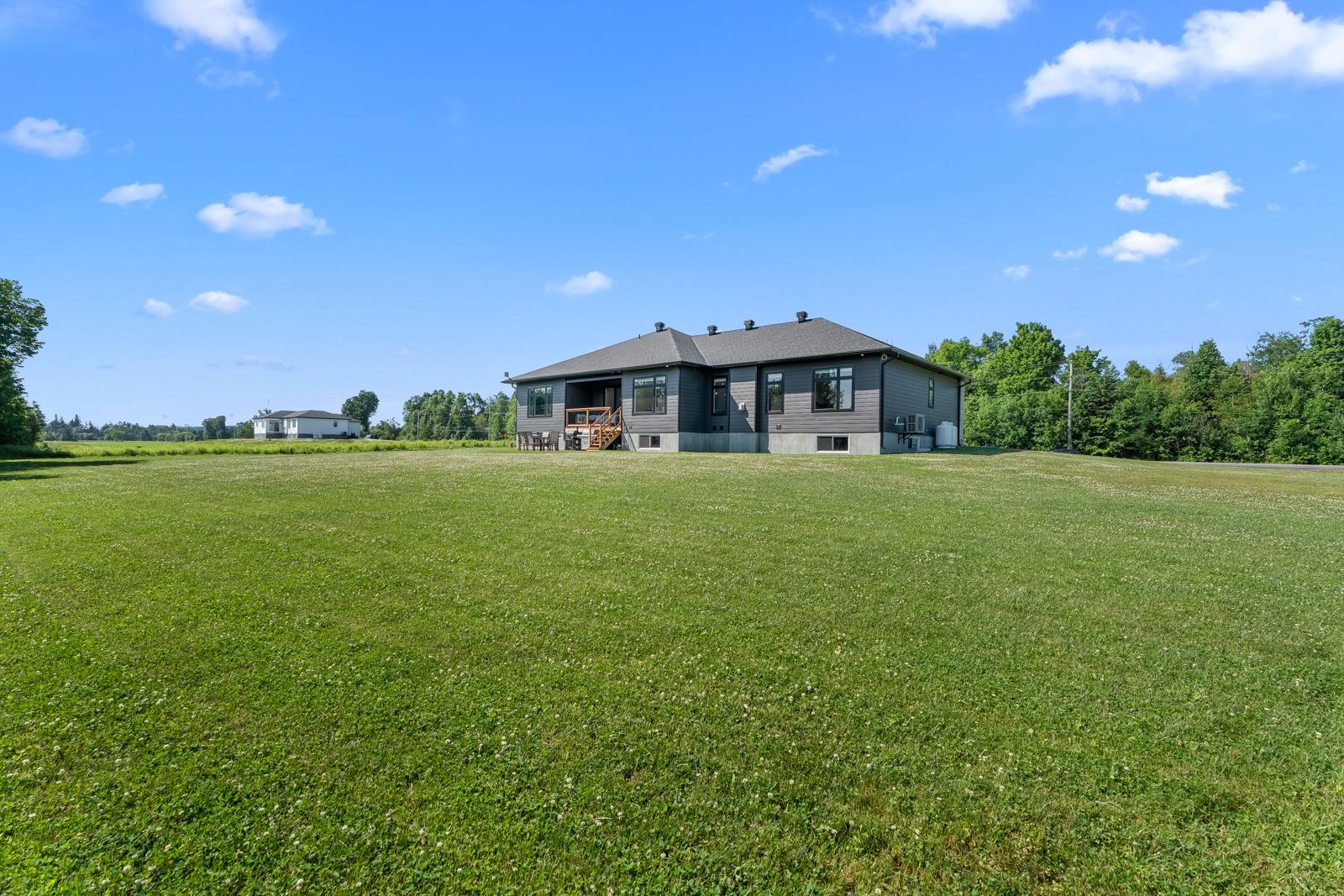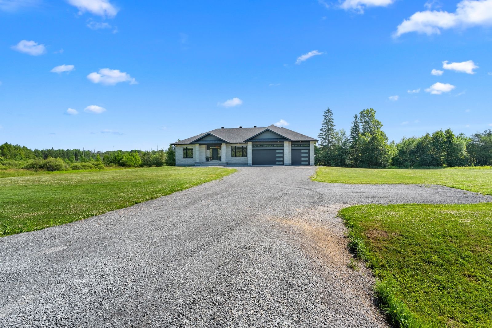 Welcome to this beautifully finished, move-in-ready home located in the charming community of ashton. This 2,500 sq. Ft. Bungalow features 3 bedrooms, 2. 5 bathrooms, and a dedicated office, perfect for remote work or study. The open-concept layout includes a modern kitchen that flows seamlessly into the bright and inviting living area, ideal for both relaxing and entertaining. The kitchen showcases laurysen custom cabinetry, quartz countertops, a large island, and high-end appliances. The spacious master bedroom features a coffered ceiling, an sizeable walk-in closet and a stunning ensuite complete with a large custom standalone shower and a relaxing free-standing tub, perfect for unwinding after a long day. With top-quality finishes throughout and thoughtful design, this home offers comfort, style, and functionality in a peaceful, family-friendly setting. Inside, the home showcases 3/4 inch engineered hardwood flooring throughout, while a beautifully crafted custom hardwood staircase adds to its refined character. Comfort is maintained year-round with an energy-efficient heat pump providing both heating and cooling. Situated on a 2-acre lot, the property includes a fully finished and insulated 3 car garage equipped with an ev plug-in, offering ample space for parking, storage, or a workshop. Outdoor living is just as inviting, with a covered deck and interlock patio, ideal for summer barbecues, morning coffee, or peaceful evenings under the stars. The remainder of the expansive lot is fully covered with lush grass, providing plenty of space for outdoor activities or future landscaping. The front of the home is beautifully finished with full stonework, offering timeless curb appeal, while the remaining exterior is clad in insulated composite siding which provides long-lasting durability and enhanced energy efficiency without the need for upkeep. The basement features rough-in plumbing, framing and electrical for future use.