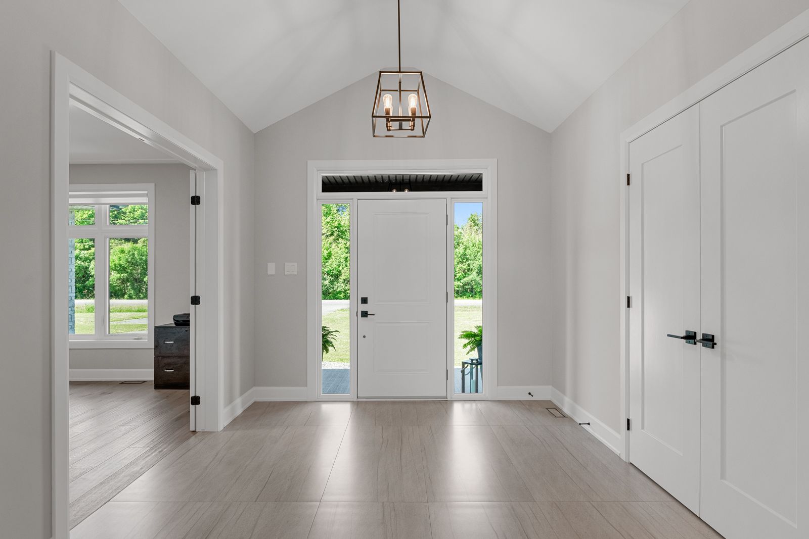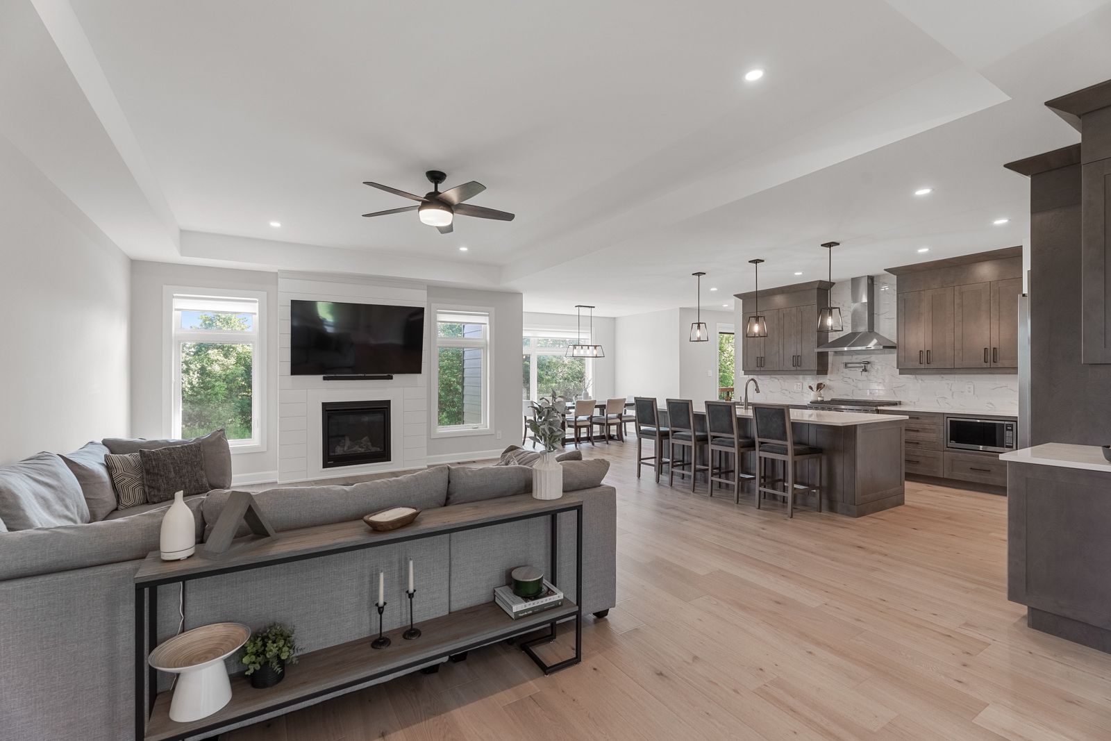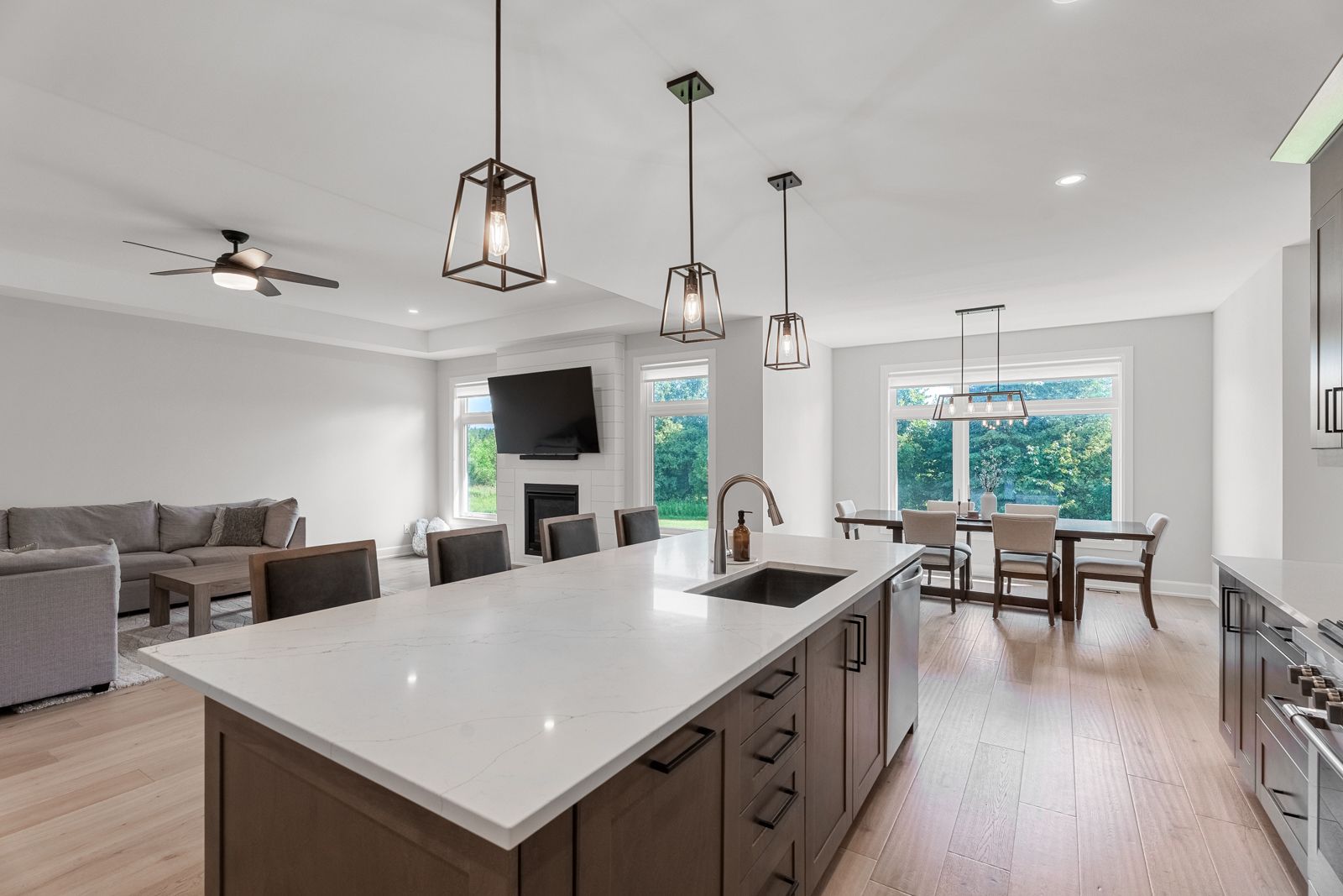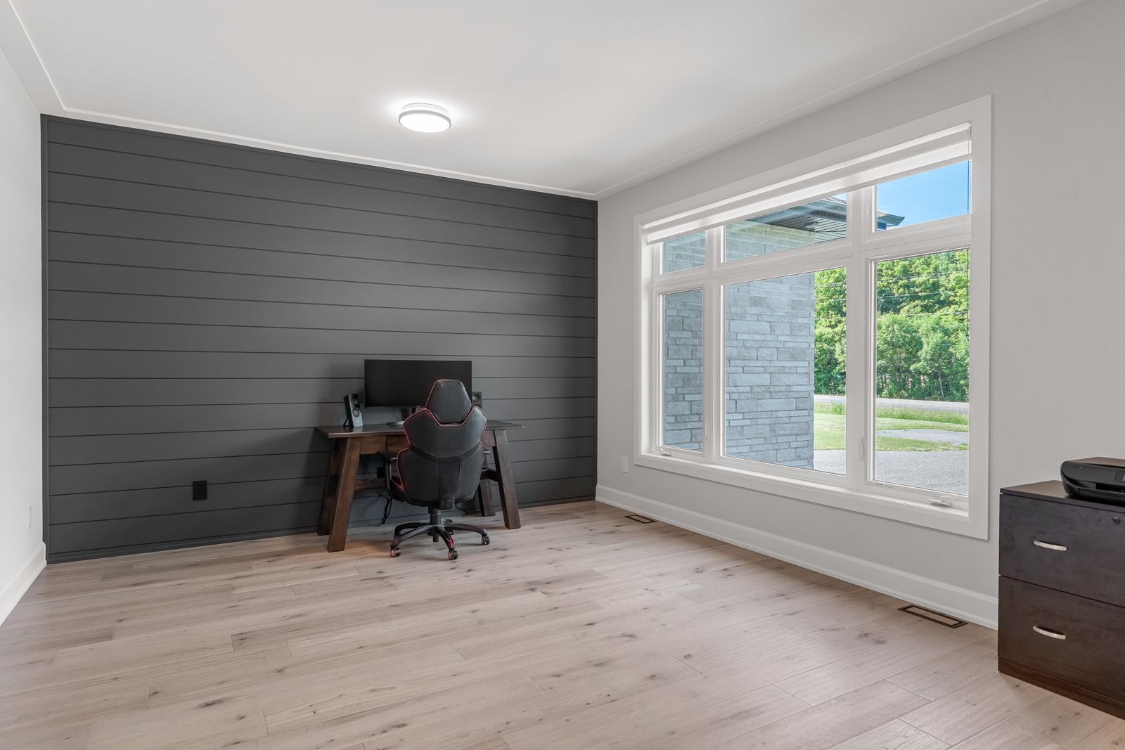Welcome to this beautifully finished, move-in-ready home located in the charming community of ashton. This 2,500 sq. Ft. Bungalow features 3 bedrooms, 2. 5 bathrooms, and a dedicated office, perfect for remote work or study. The open-concept layout includes a modern kitchen that flows seamlessly into the bright and inviting living area, ideal for both relaxing and entertaining. The kitchen showcases laurysen custom cabinetry, quartz countertops, a large island, and high-end appliances. The spacious master bedroom features a coffered ceiling, an sizeable walk-in closet and a stunning ensuite complete with a large custom standalone shower and a relaxing free-standing tub, perfect for unwinding after a long day. With top-quality finishes throughout and thoughtful design, this home offers comfort, style, and functionality in a peaceful, family-friendly setting. Inside, the home showcases 3/4 inch engineered hardwood flooring throughout, while a beautifully crafted custom hardwood staircase adds to its refined character. Comfort is maintained year-round with an energy-efficient heat pump providing both heating and cooling. Situated on a 2-acre lot, the property includes a fully finished and insulated 3 car garage equipped with an ev plug-in, offering ample space for parking, storage, or a workshop. Outdoor living is just as inviting, with a covered deck and interlock patio, ideal for summer barbecues, morning coffee, or peaceful evenings under the stars. The remainder of the expansive lot is fully covered with lush grass, providing plenty of space for outdoor activities or future landscaping. The front of the home is beautifully finished with full stonework, offering timeless curb appeal, while the remaining exterior is clad in insulated composite siding which provides long-lasting durability and enhanced energy efficiency without the need for upkeep. The basement features rough-in plumbing, framing and electrical for future use.