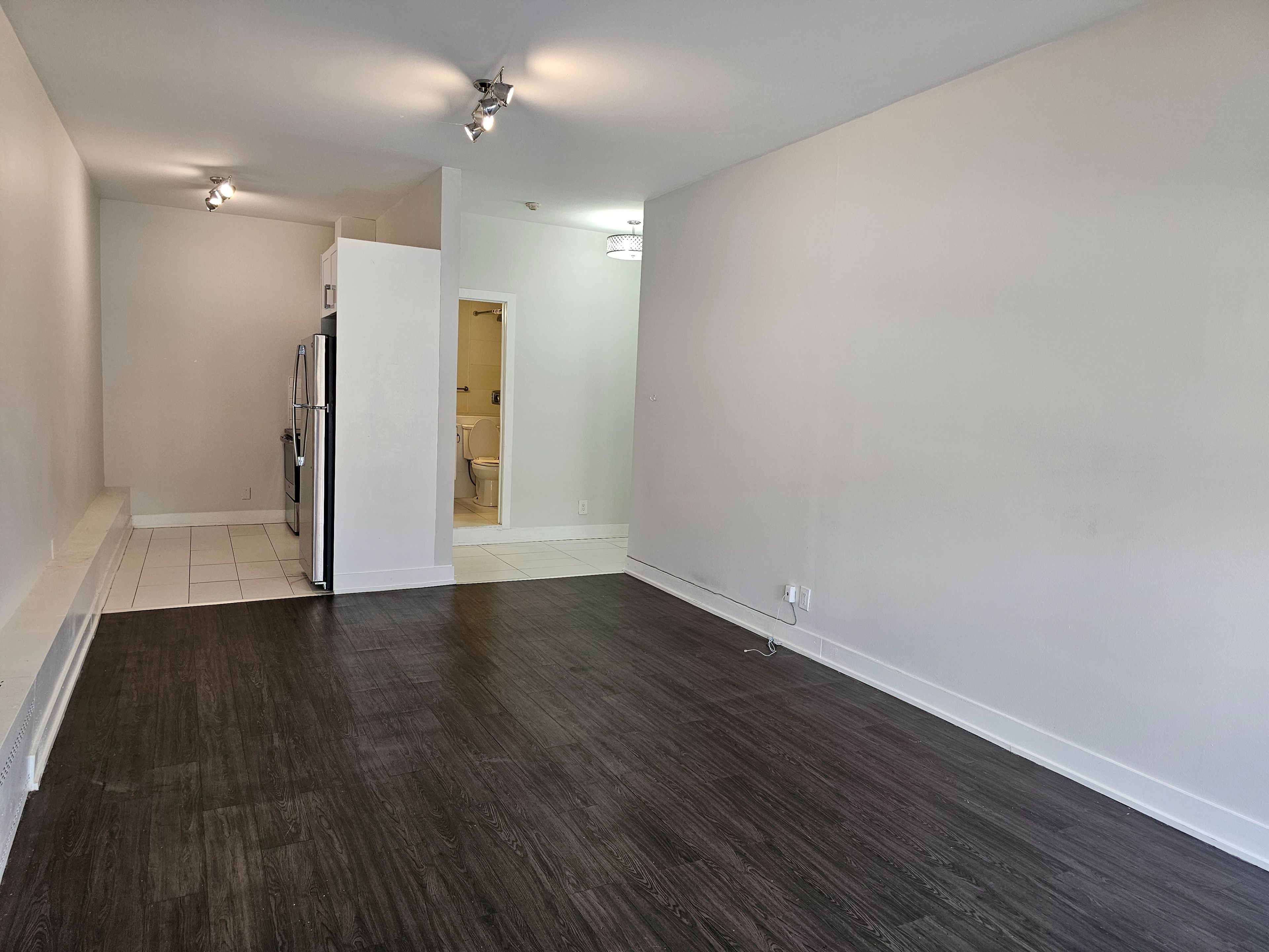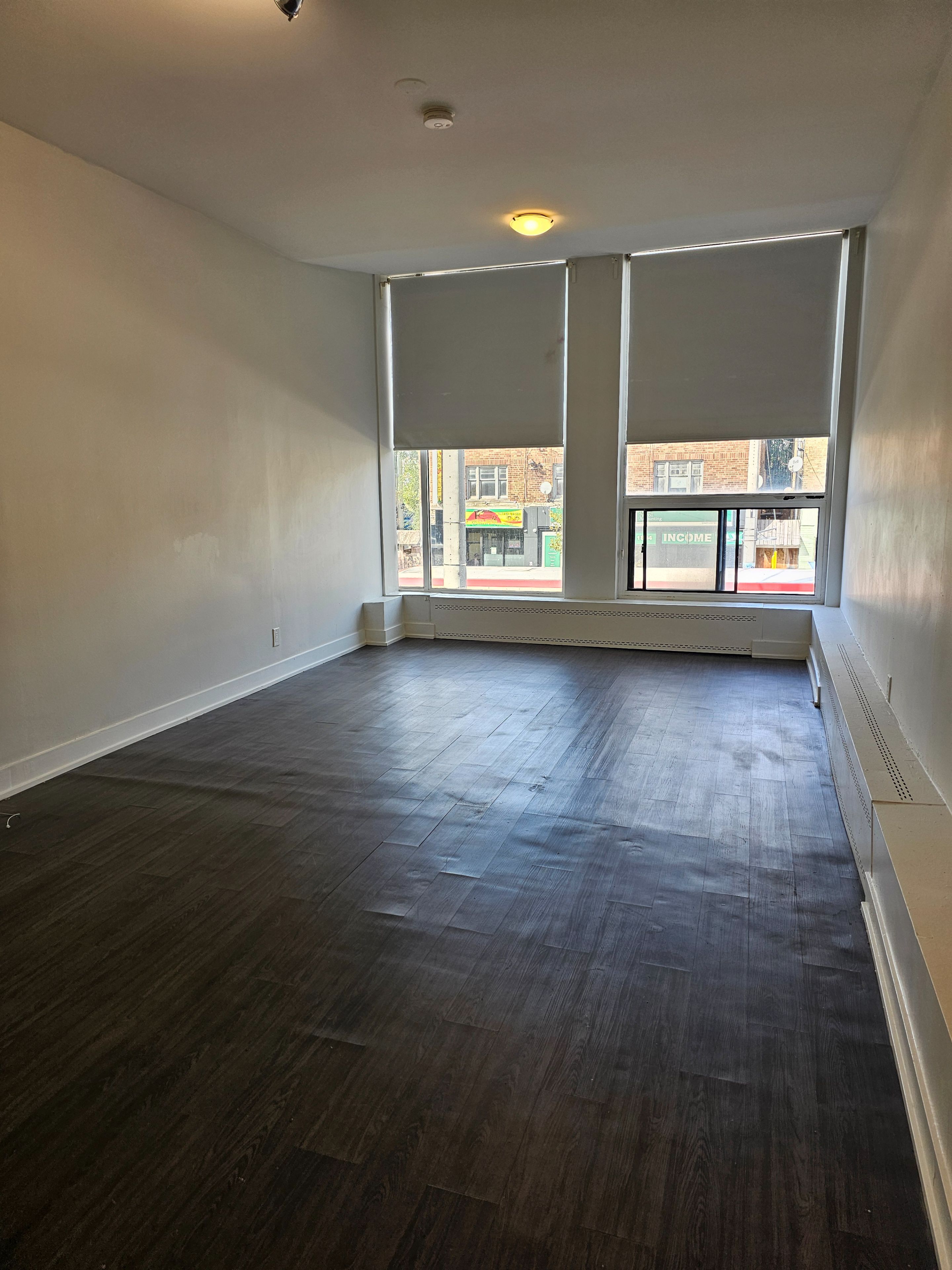 Welcome to this 500 sq foot open concept bachelor apartment with 2 huge floor to ceiling windows for natural lighting. This unit comes with its own full size kitchen, stainless steel appliances, newer kitchen cupboards, granite countertop, backsplash, & ceramic flooring. It's been newly painted plus has very high ceilings. Steps to ttc, shopping, grocery, restaurants, library, etc. Tim hortons in building. Pet friendly. Coin operated laundry on 2nd floor of main building. Utilities included. 1 parking space available for $150/month.